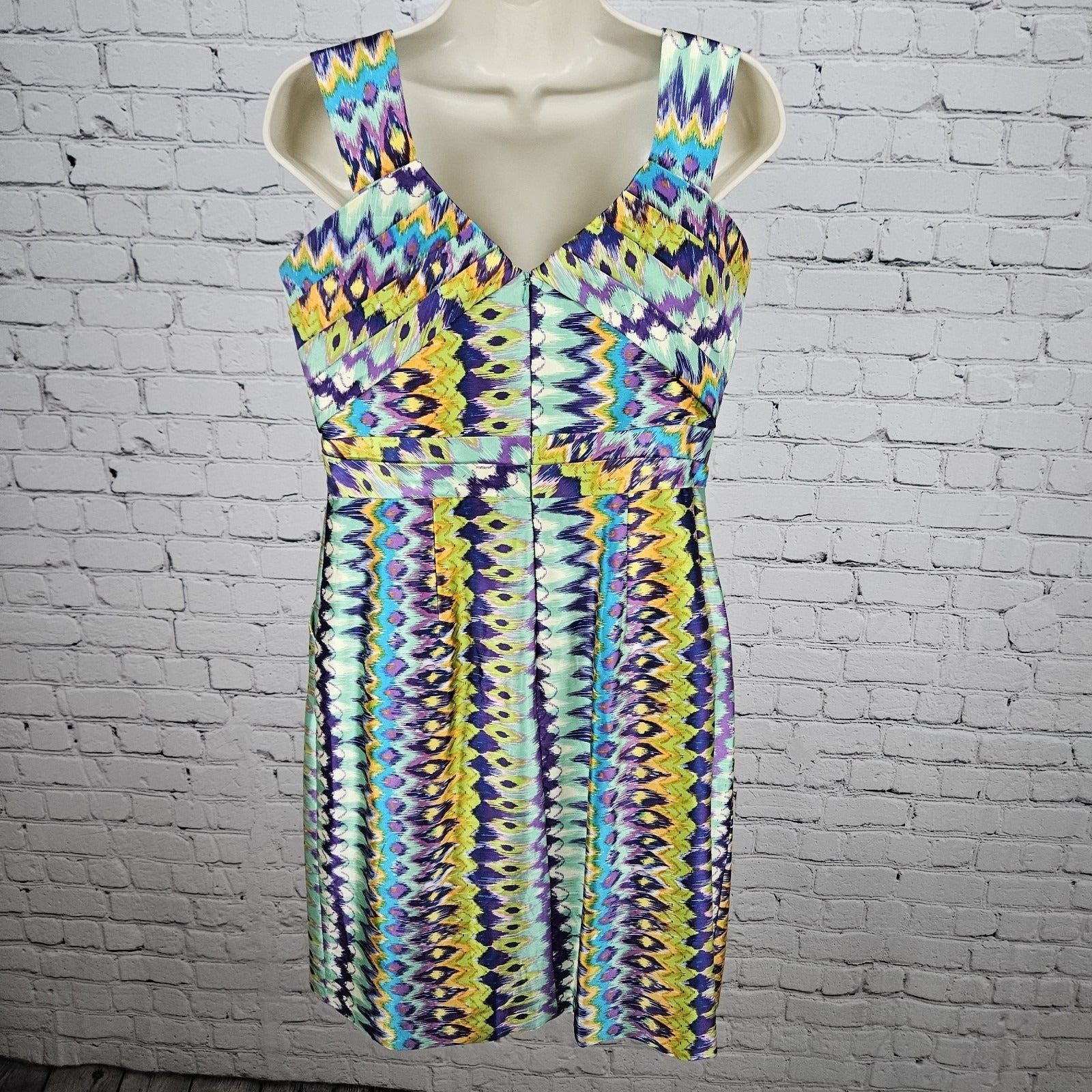 Kay Unger New York Multicolor Silk Blend Print Pleated Lined Midi Dress 12
