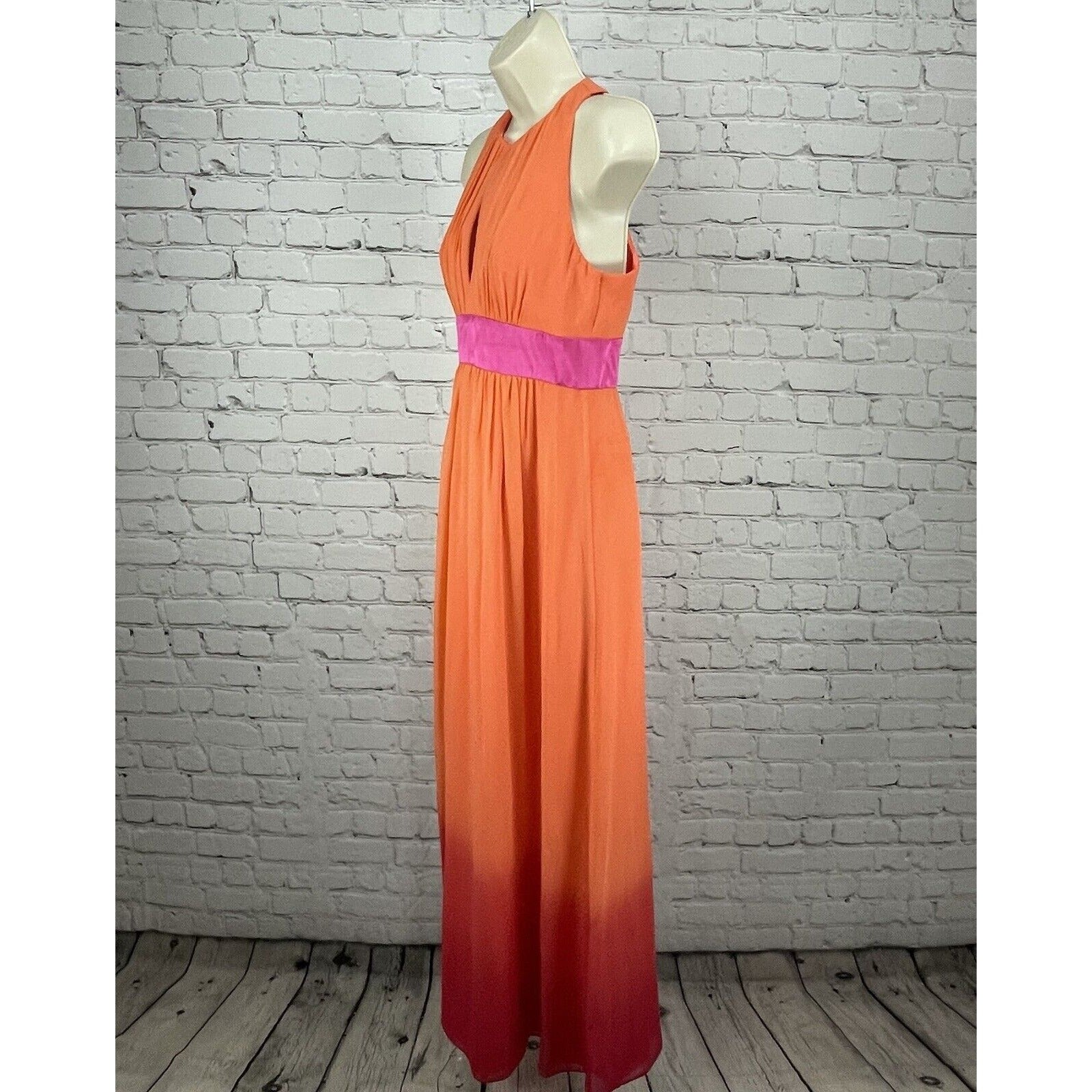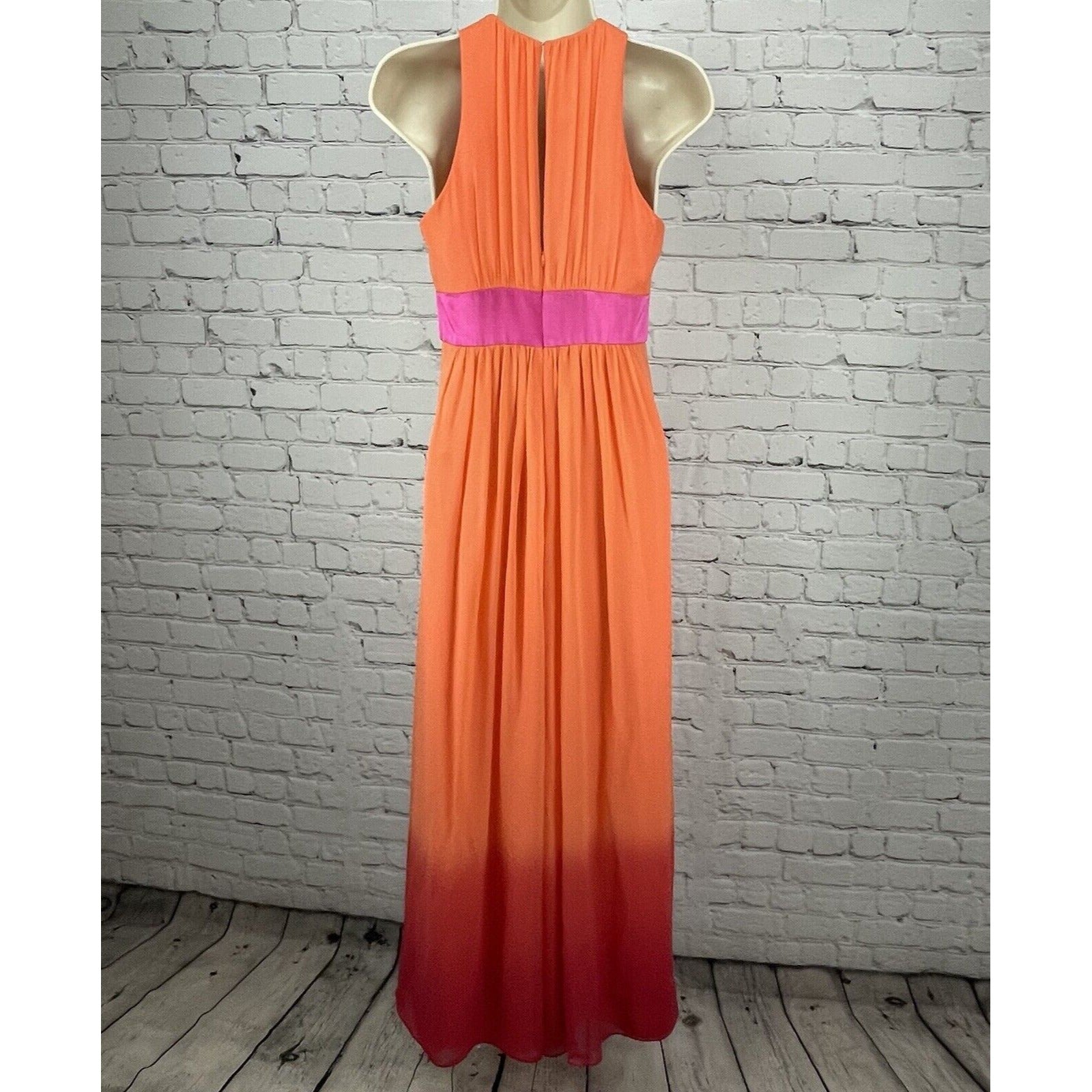 Kay Unger Orange Pink Silk Ombré Maxi Dress Gown Prom Zipped Lined Empire Size 2