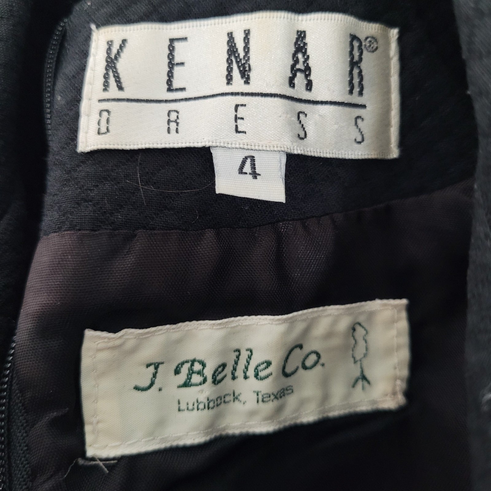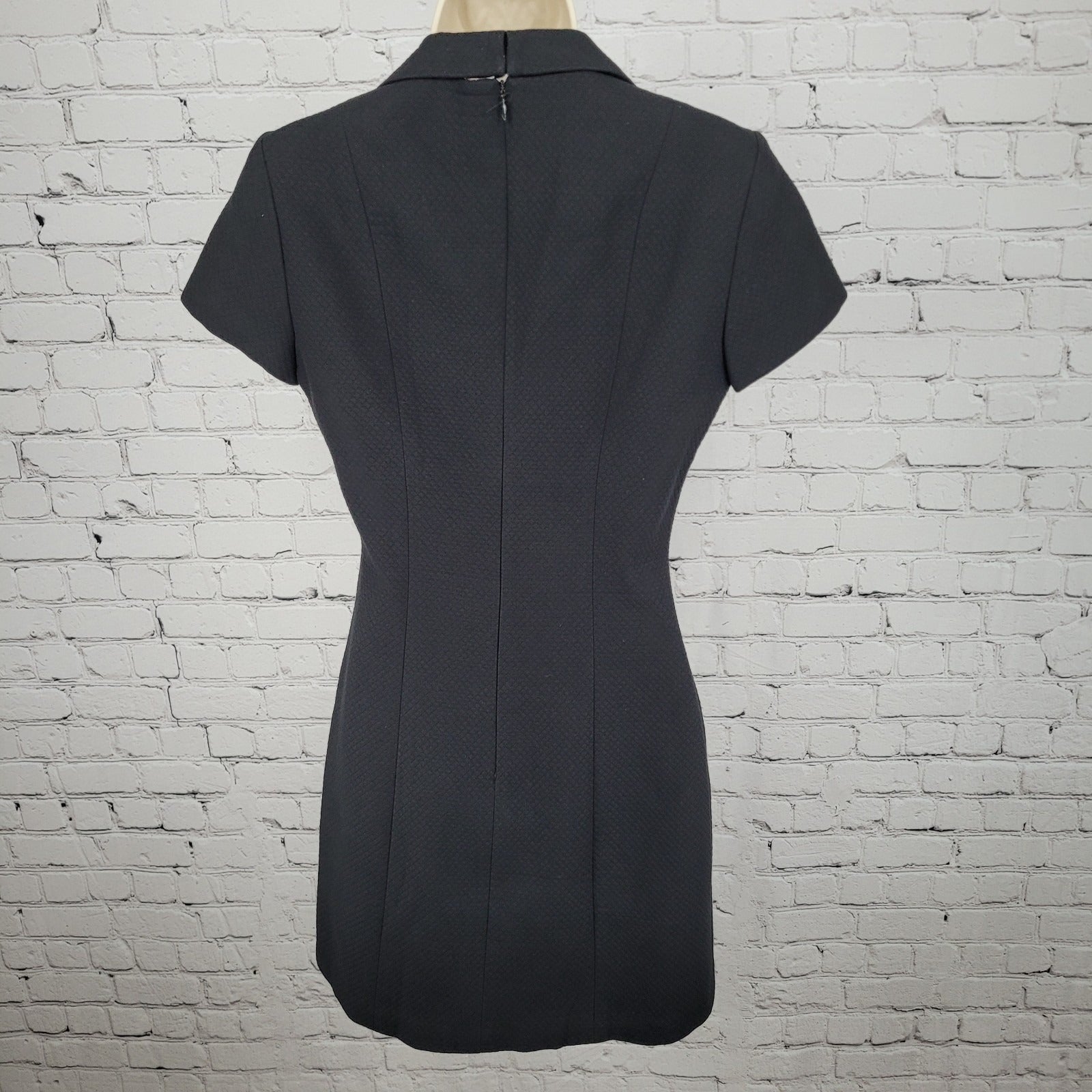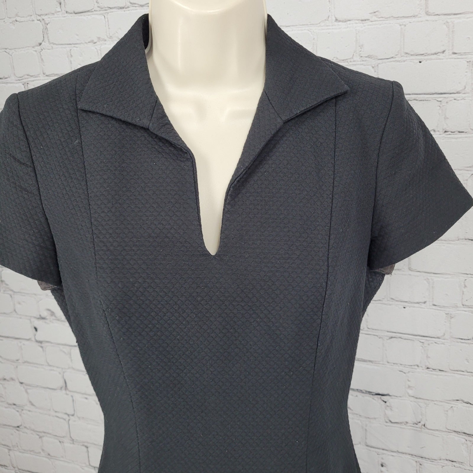 Kenar Black Quilted Cotton Collared V Neck Lined Sheath Dress USA Made Size 4