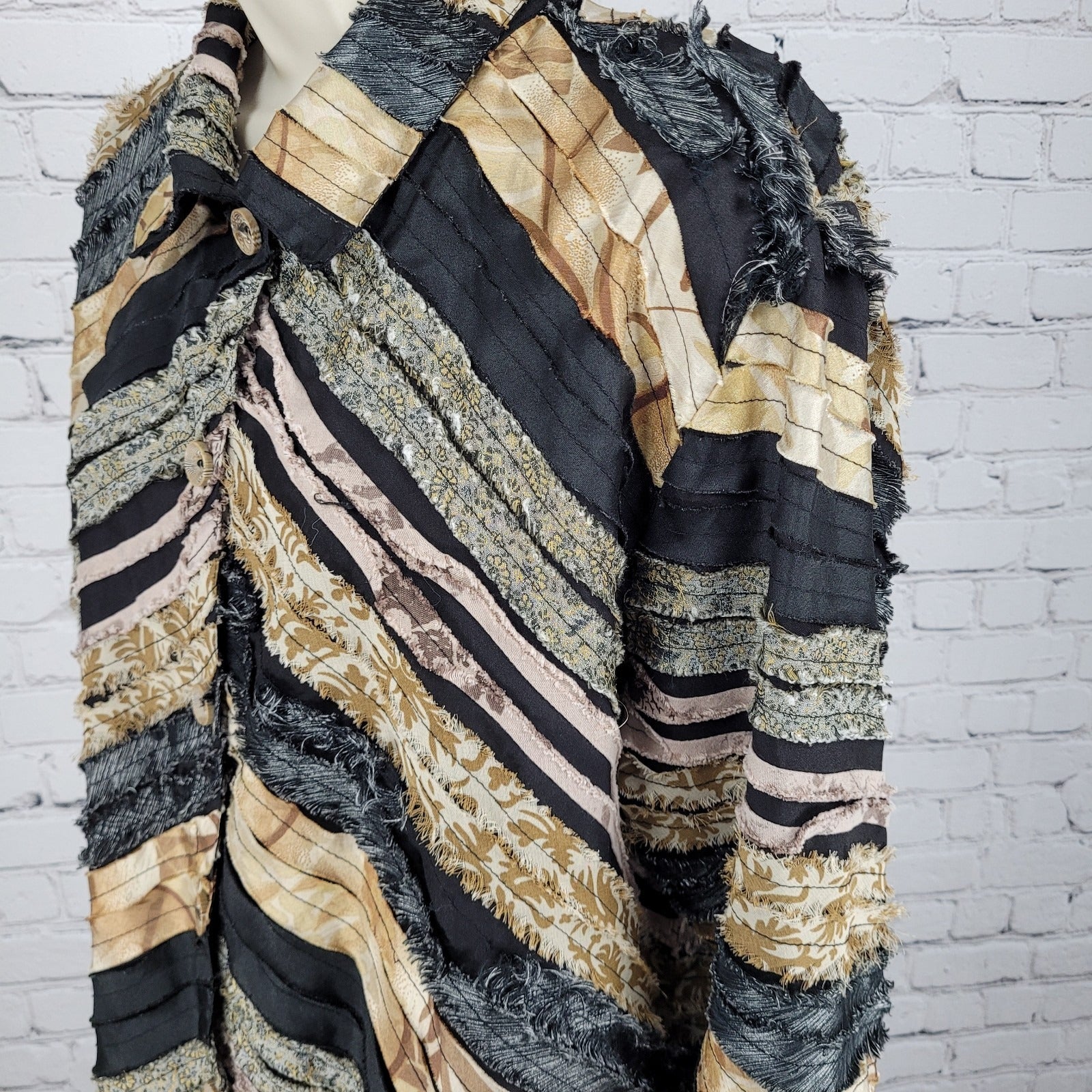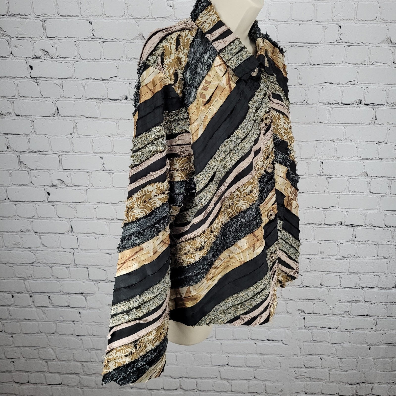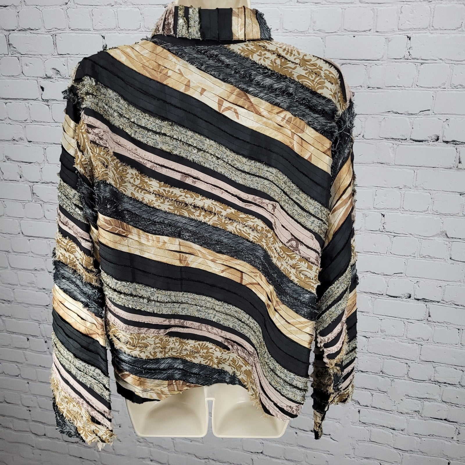 Keren Hart Multicolor Fringe Striped Button Up Long Sleeve Top Shirt Size XL