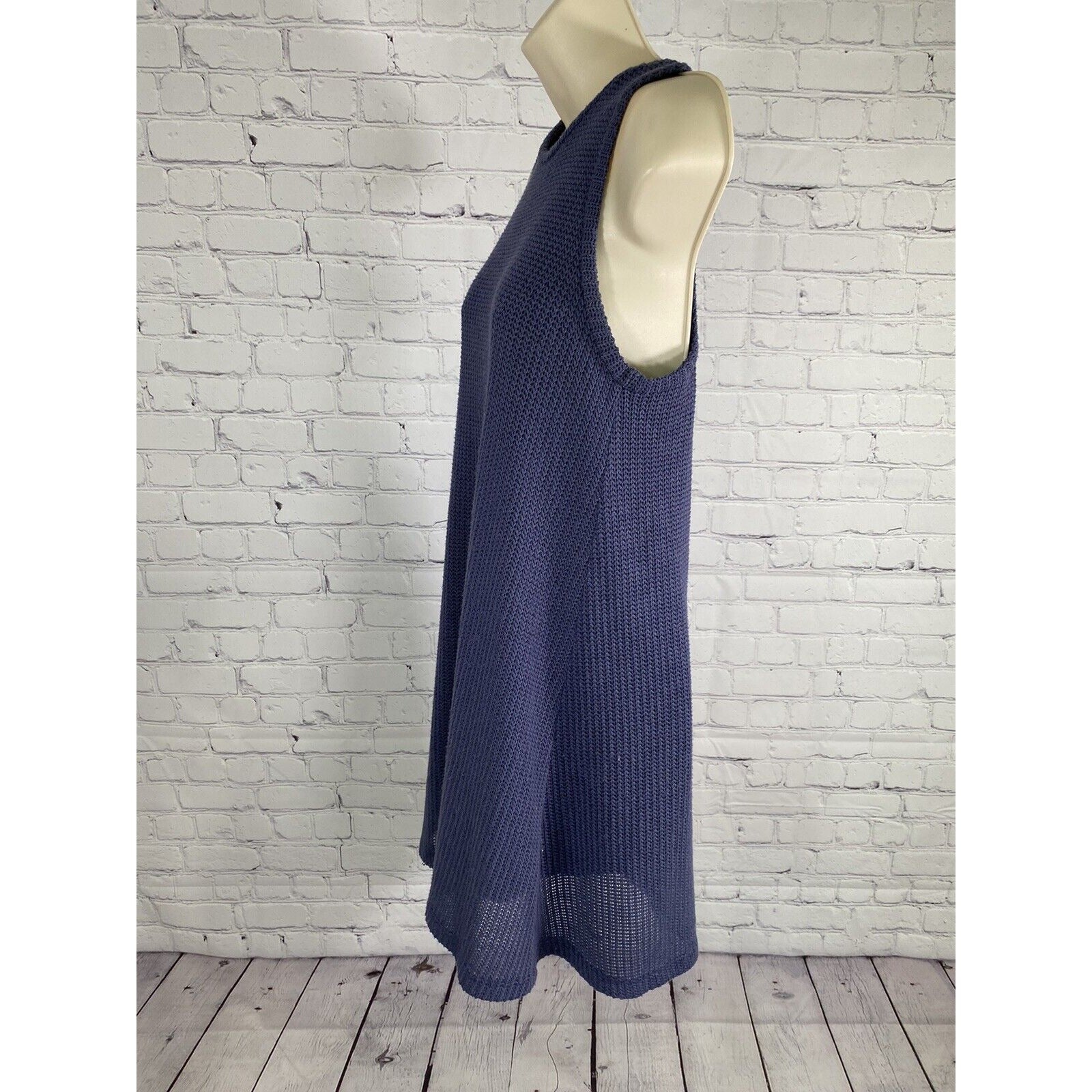 KLD Signature Blue Sleeveless Pullover Knit Lined Shift Short Dress USA Womens S
