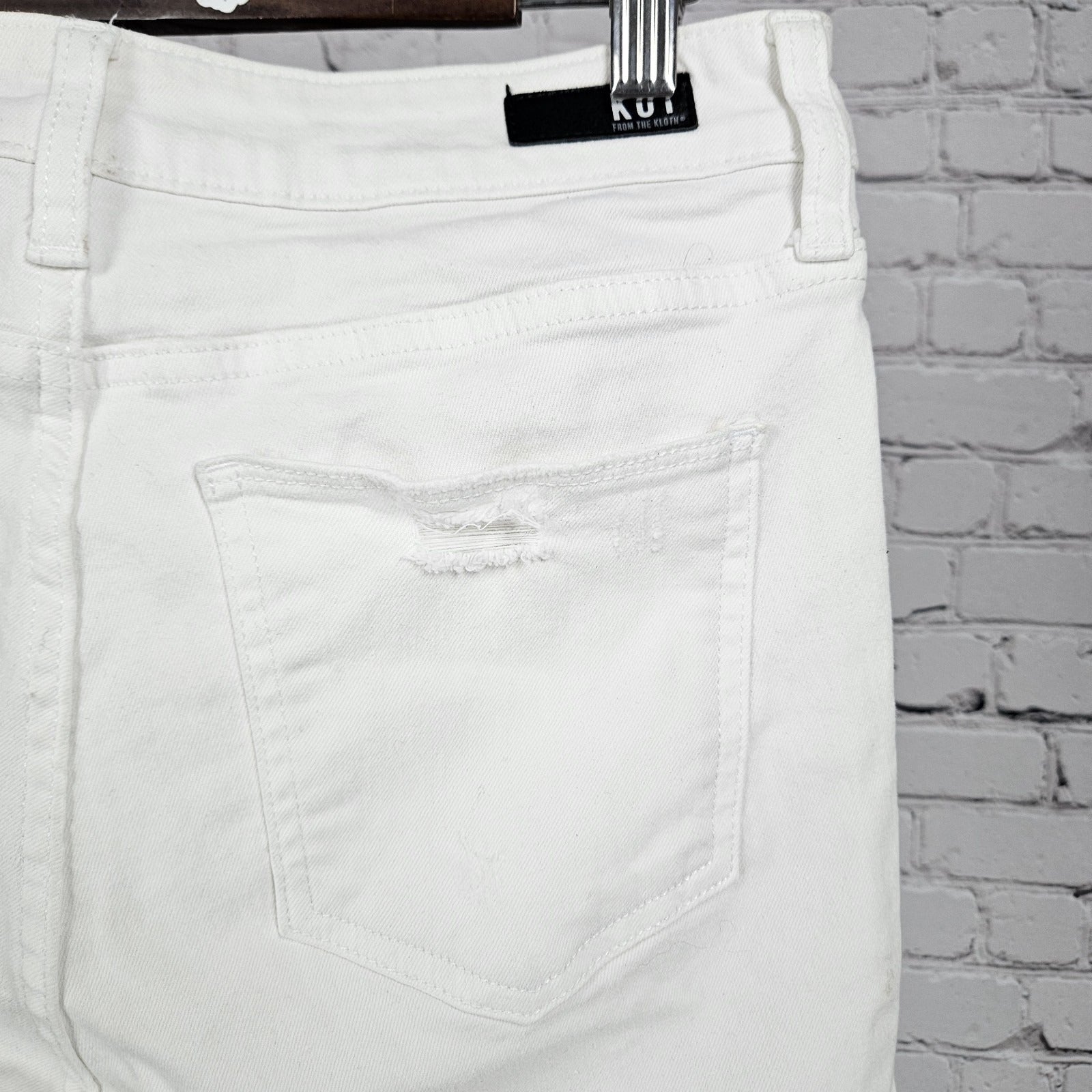 The KUT From The Kloth White Reese High Rise Ankle Straight Leg Jeans in size 8 offer a stylish and timeless option for women looking for a versatile pair of jeans. Made from denim fabric, these jeans feature a classic straight leg style with a high rise waist and ankle length, perfect for a flattering and on-trend look. The crisp white color adds a chic touch to any outfit, making these jeans a must-have staple.
