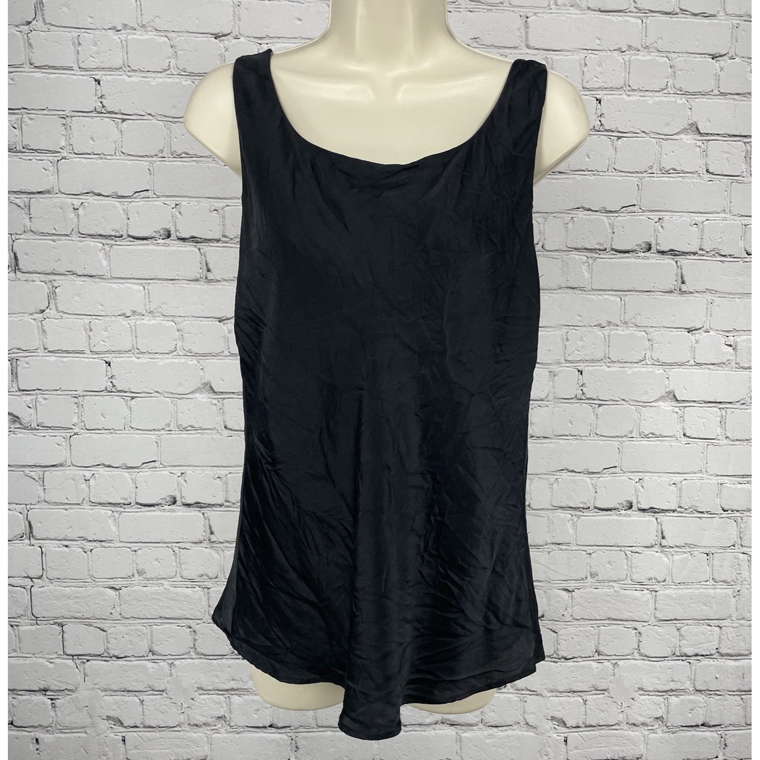 Lafayette 148 Black Silky Classic Basic Relaxed Flowy Lined Tank Top Size 6