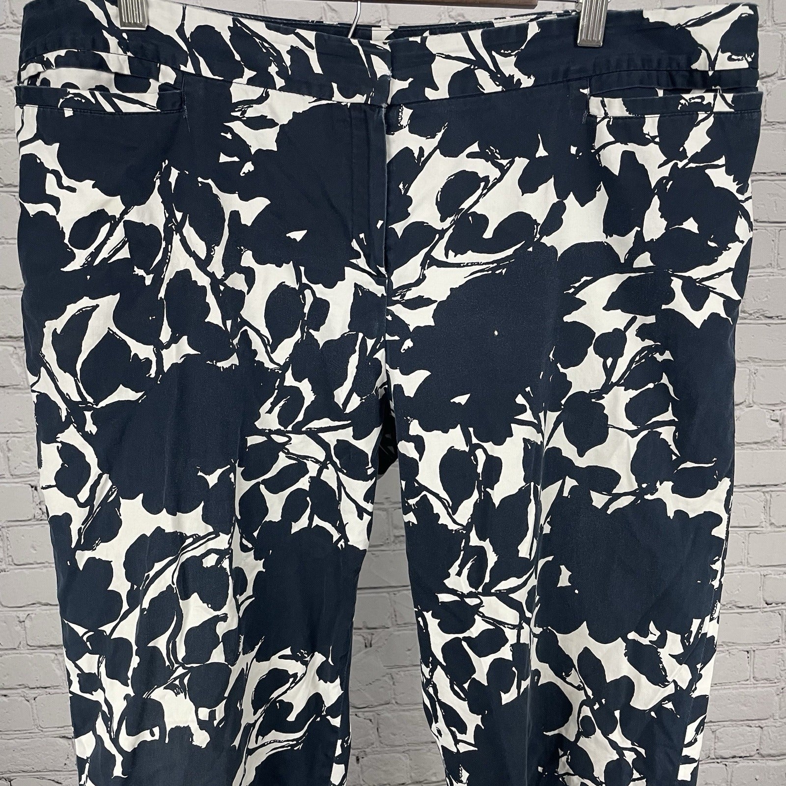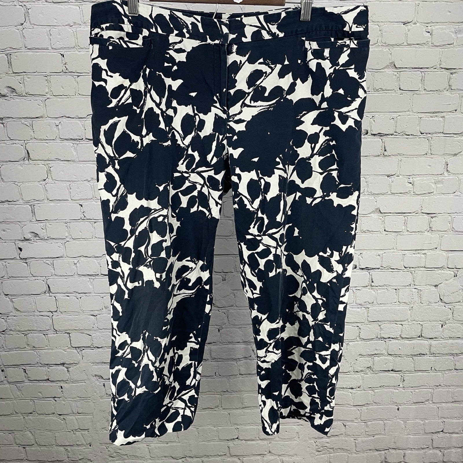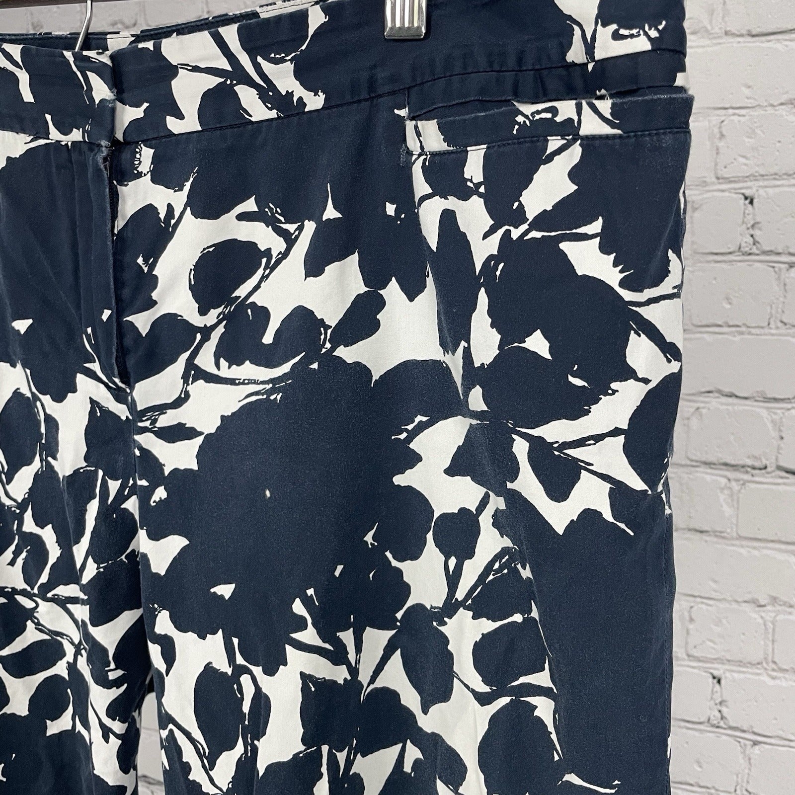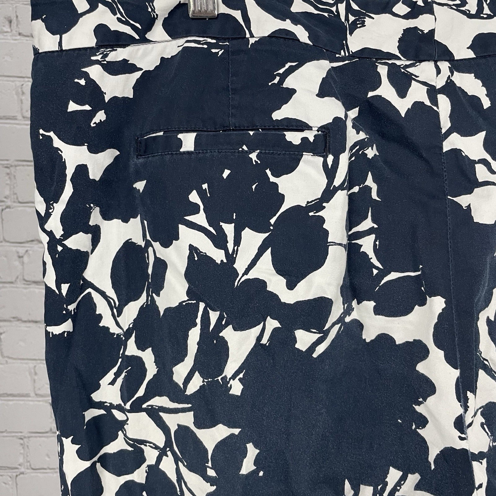 Lafayette 148 Blue White Floral Lightweight Crop Capri Pants Size 16 (38x23.5)