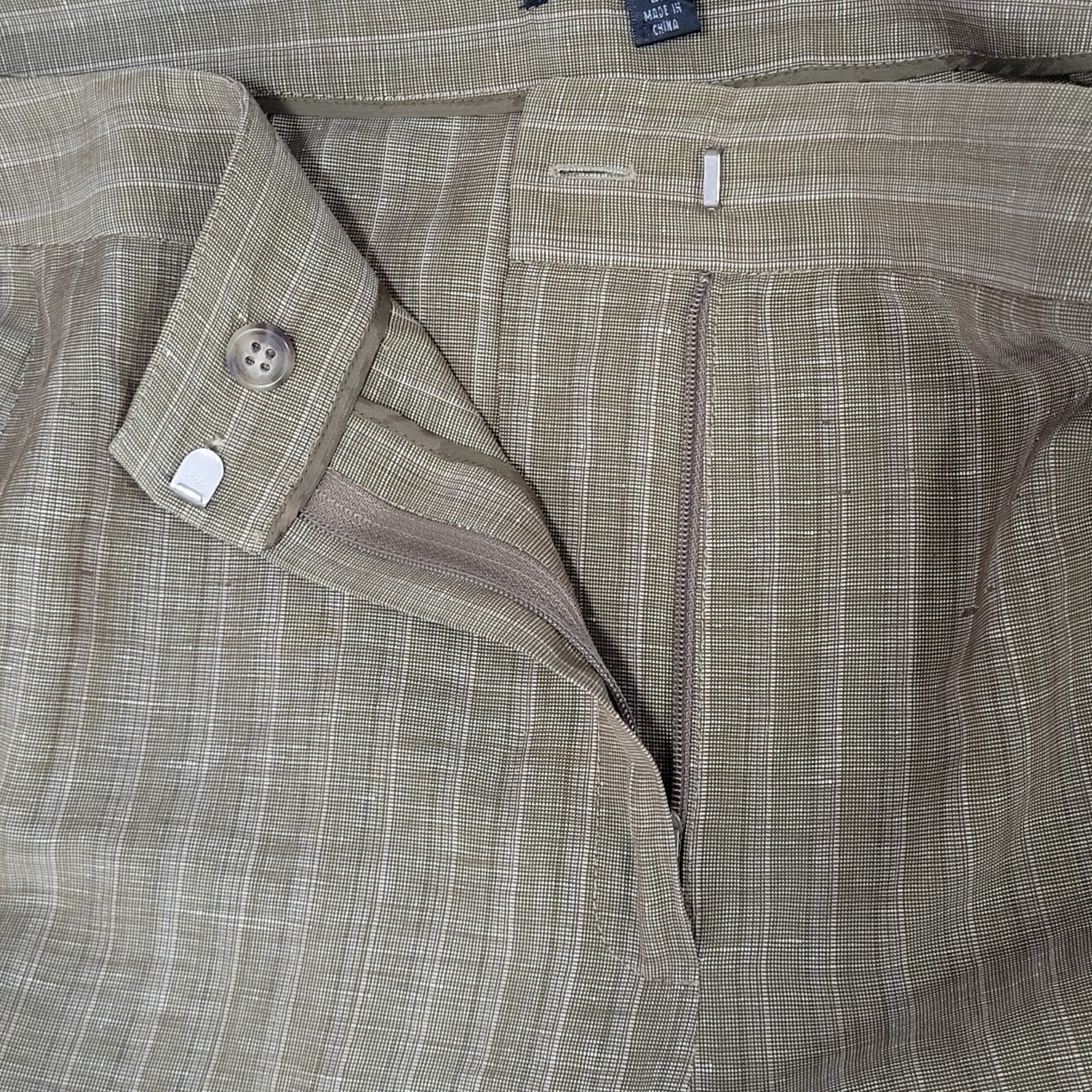 This is a Lafayette 148 Tan Wool Linen Blend Suit Outfit Set, including a jacket in size 18 and pants in size 22, with dimensions 40x33 inches. The suit is designed for women and features a pant suit style in a brown color. Made from a linen blend material, this outfit set exudes sophistication and style, perfect for a professional or formal occasion. The high-quality construction and attention to detail make it a versatile and timeless addition to any wardrobe.