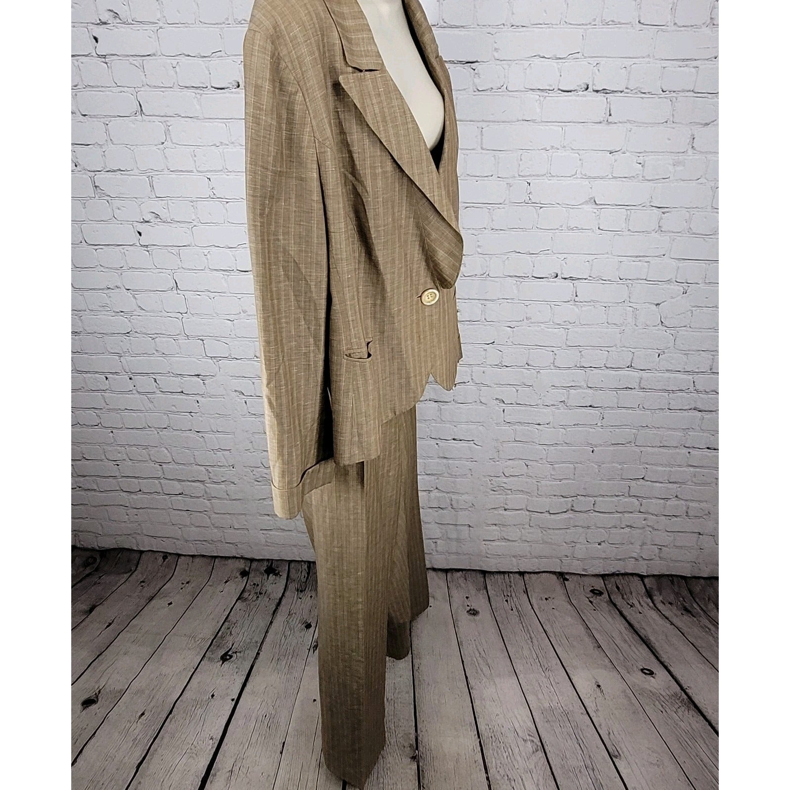 Lafayette 148 Tan Wool Linen Blend Suit Outfit Set Jacket Size 18 Pants 22 40x33