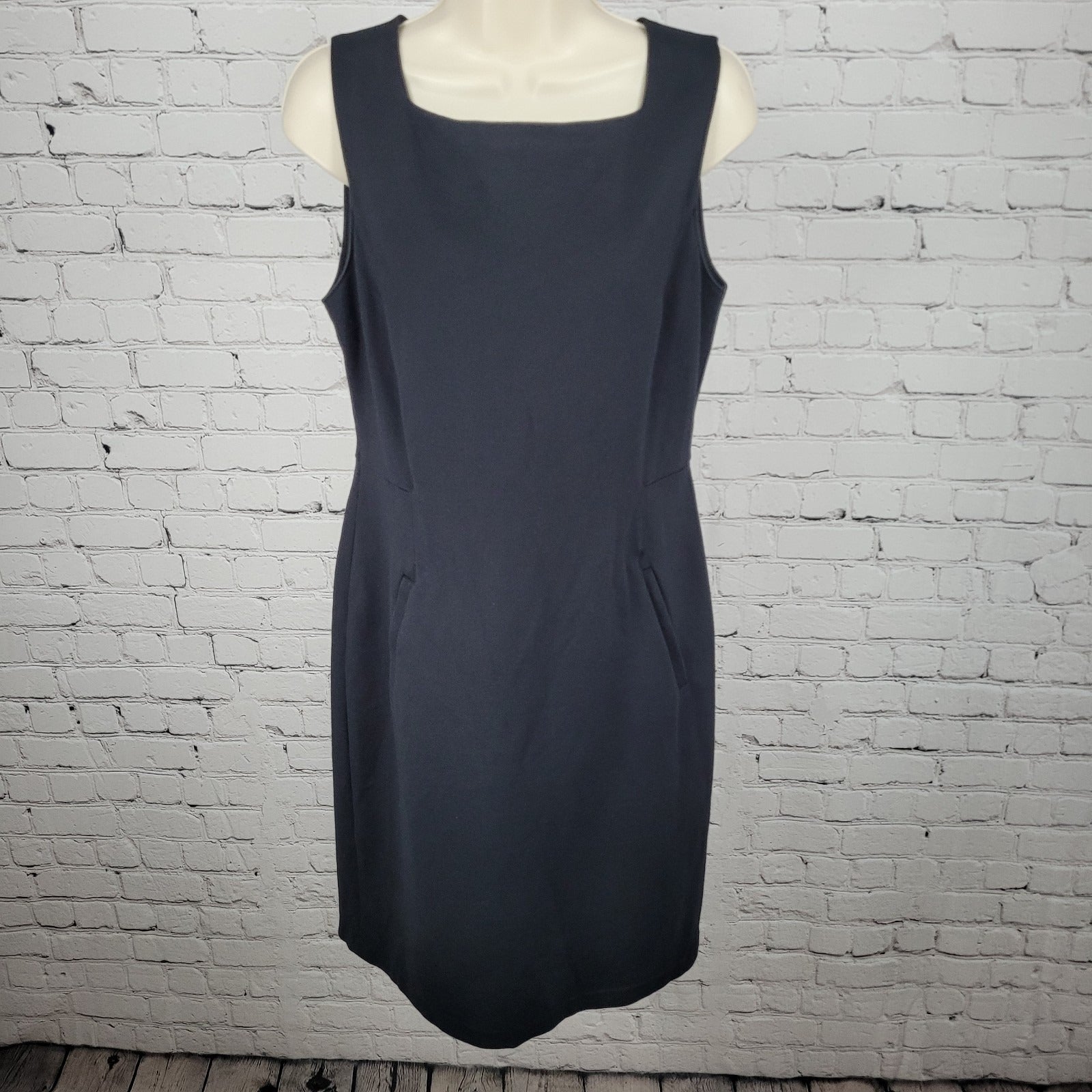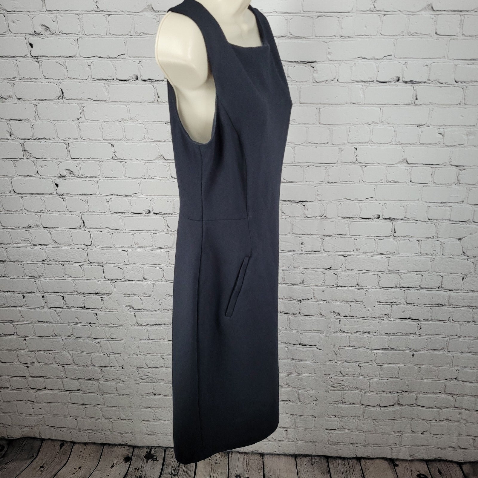Land's End Black Sleeveless Stretch Square Neck Back Slit Sheath Dress Size 6