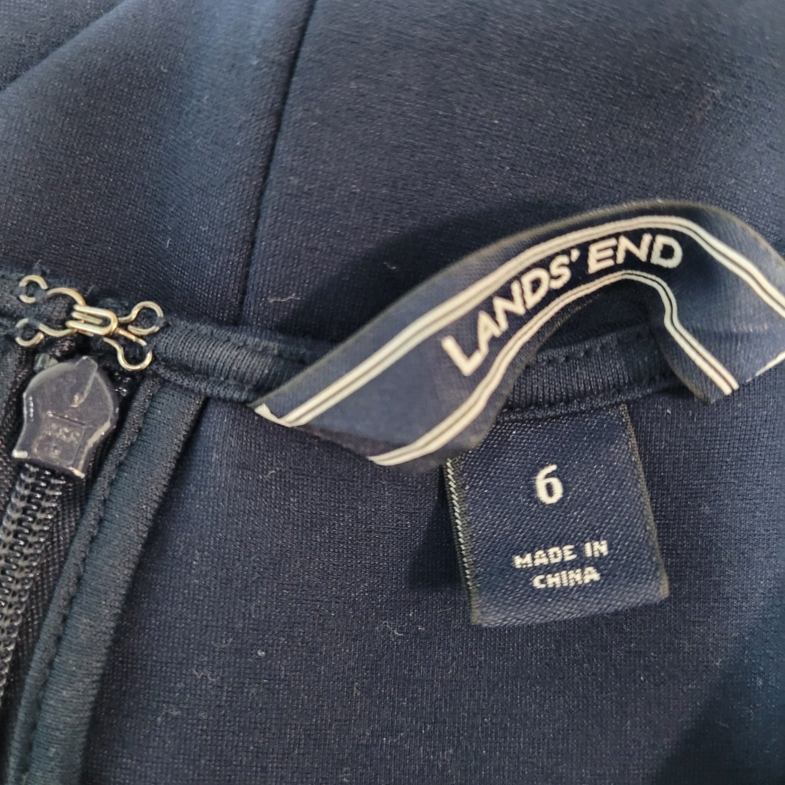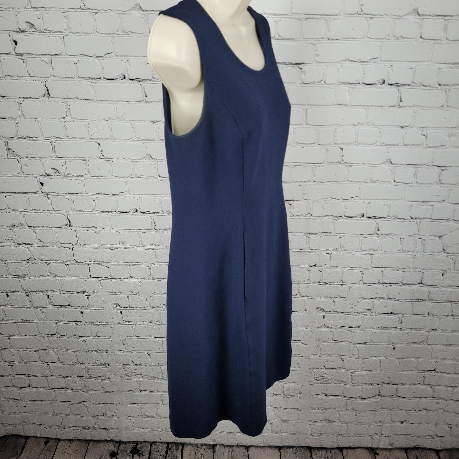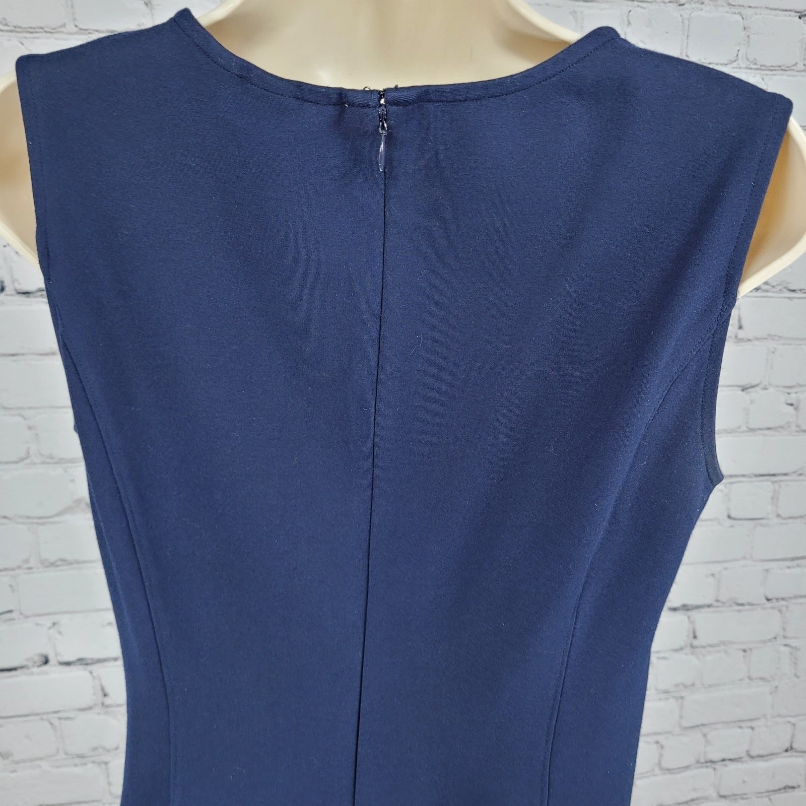 Land's End Navy Sleeveless Stretch Pockets Back Slit Zipped Shift Dress Size 6