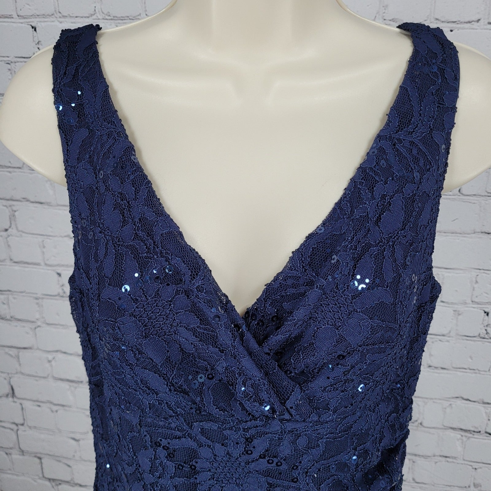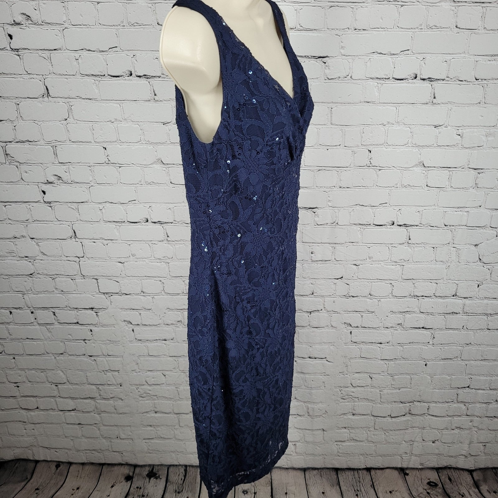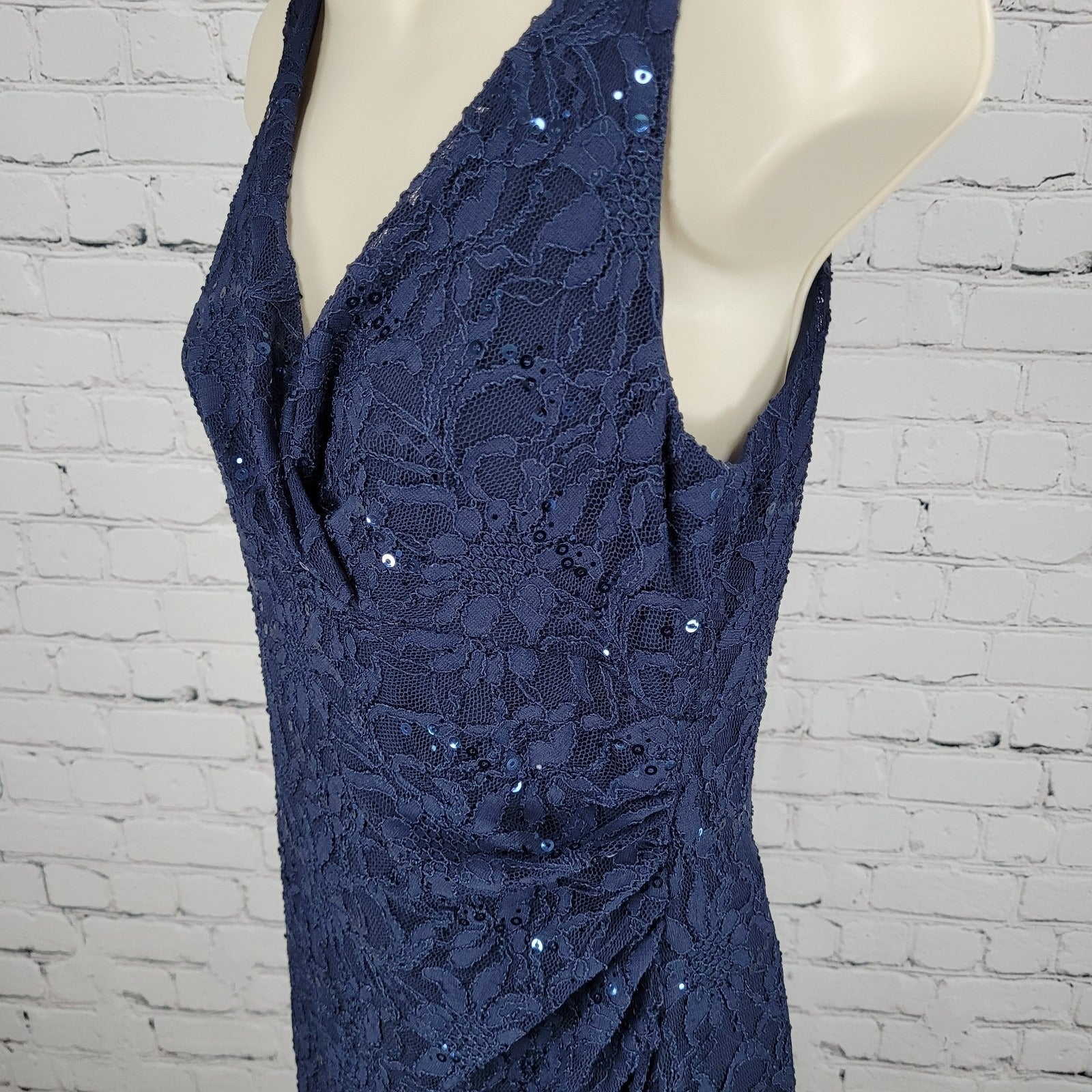 Lauren Ralph Lauren Blue Floral Lace Sequin Ruched Stretch Sheath Dress Size 8