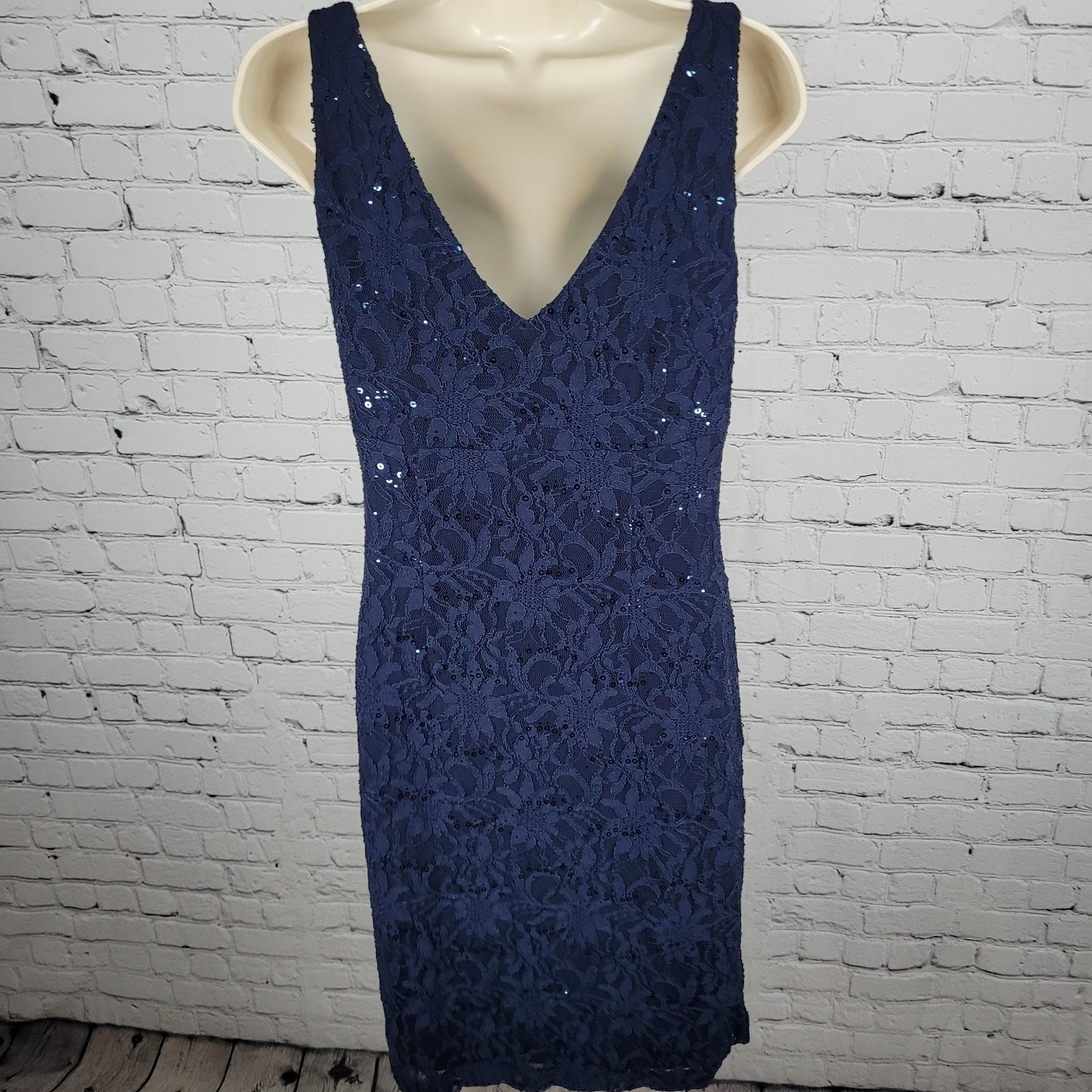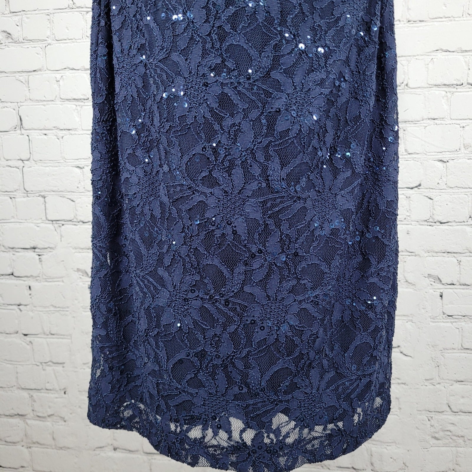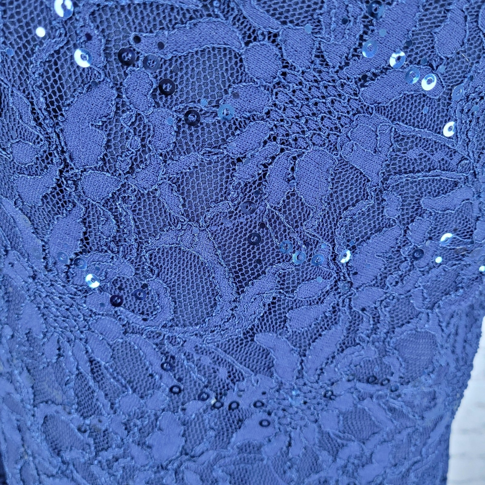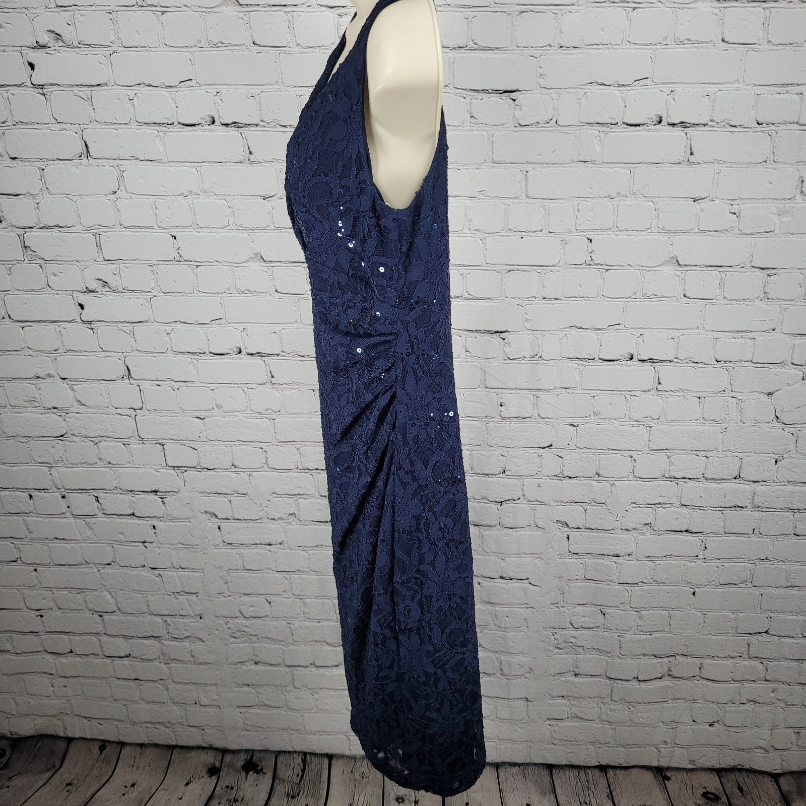 Lauren Ralph Lauren Blue Floral Lace Sequin Ruched Stretch Sheath Dress Size 8