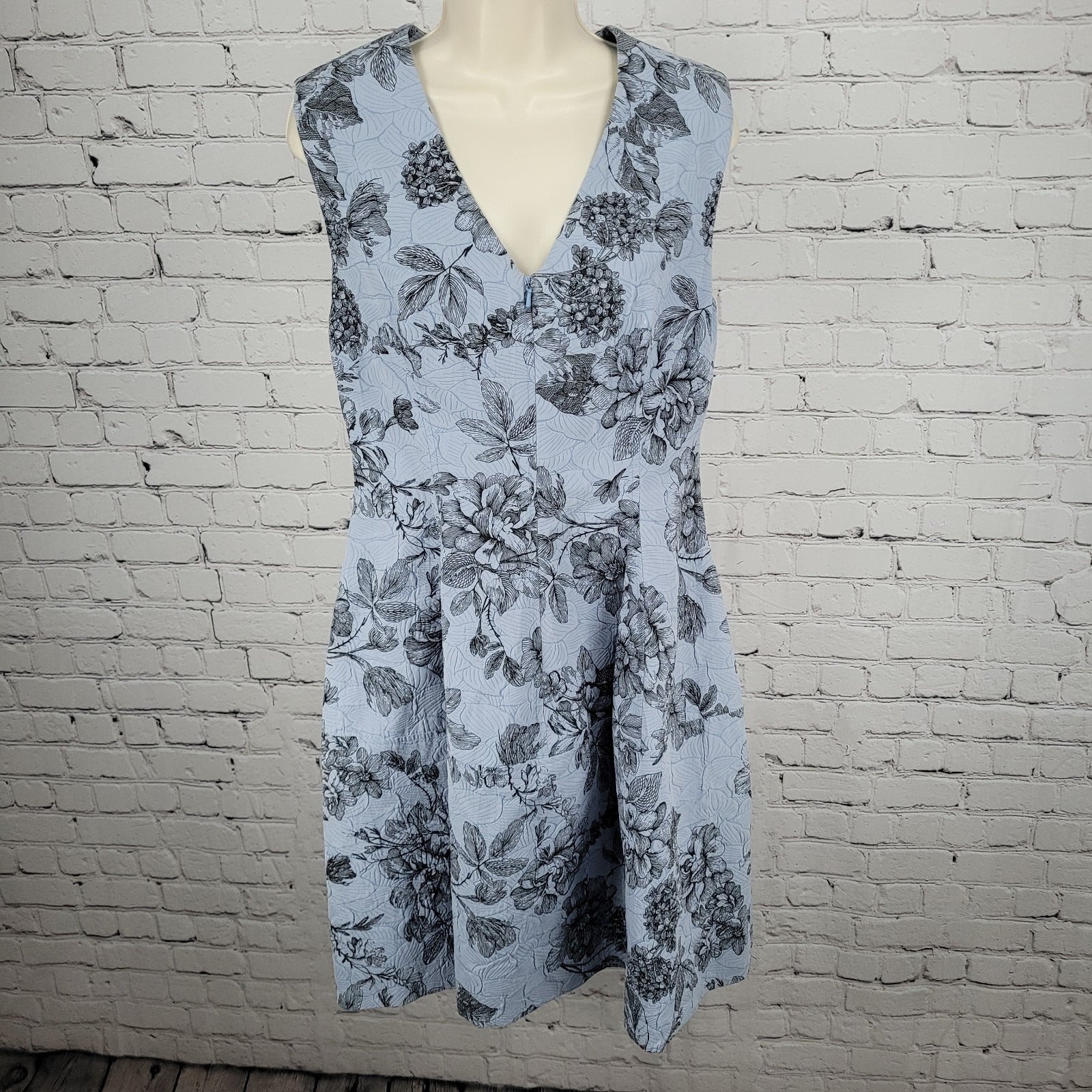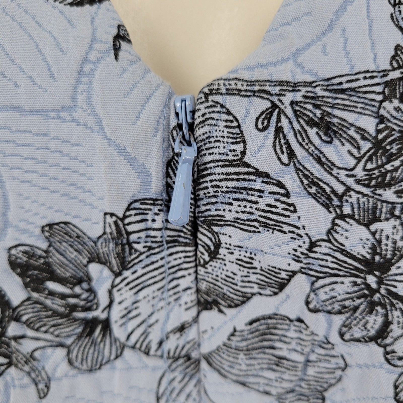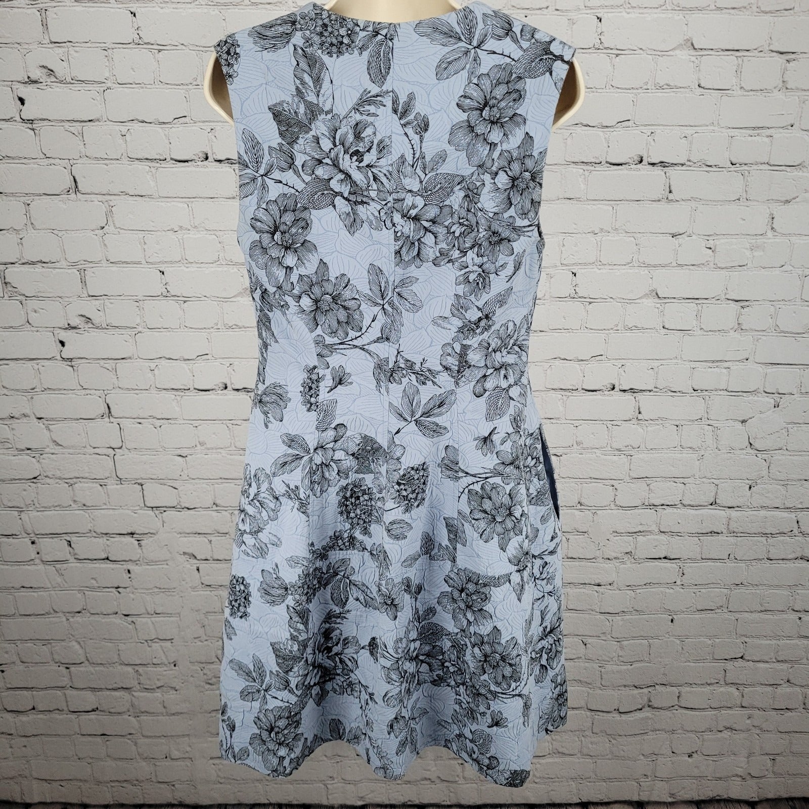 Lela Rose Blue Floral Sleeveless Front Zip Pockets Lined A Line Dress USA 6