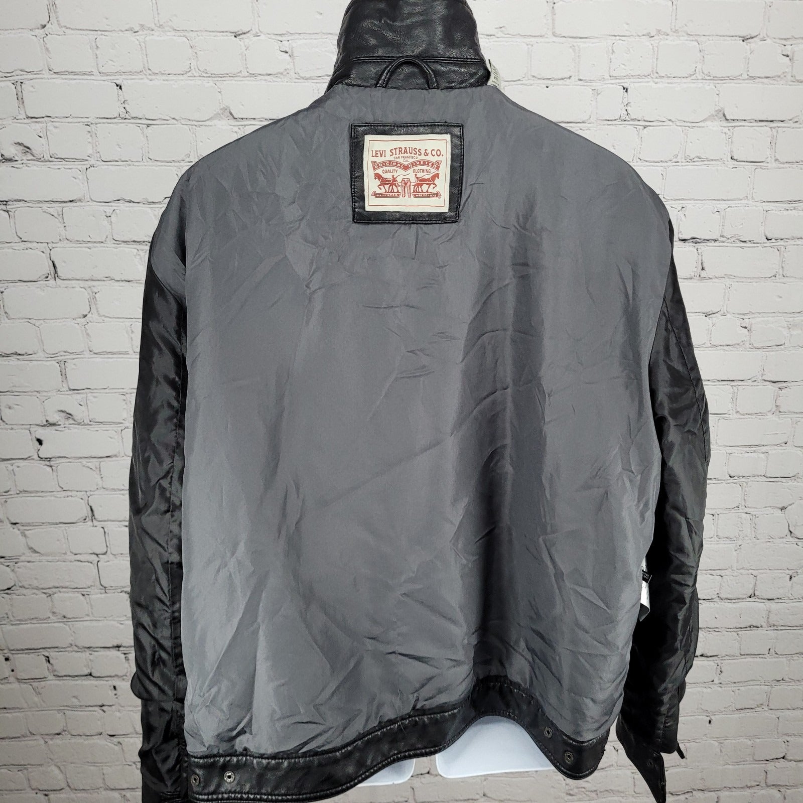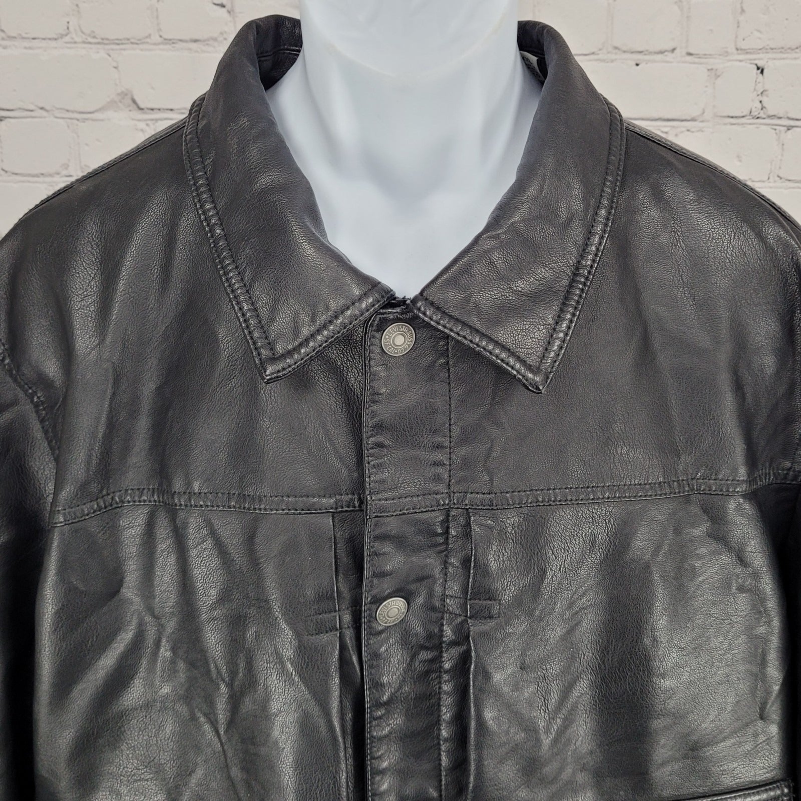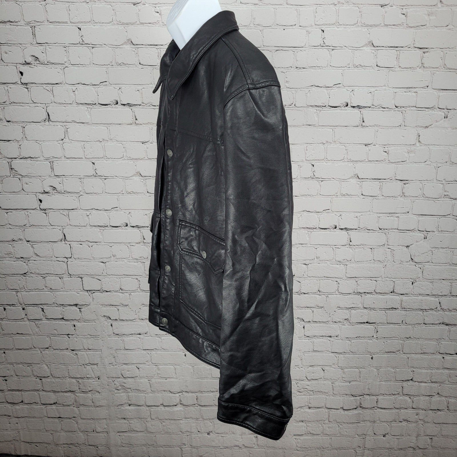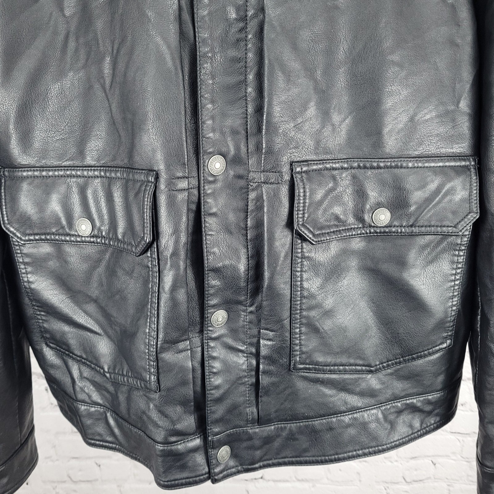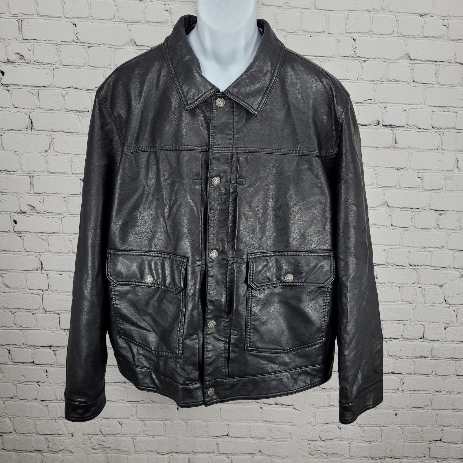 Levi Strauss Black Faux Leather Full Zip Pockets Biker Motorcycle Jacket XXL