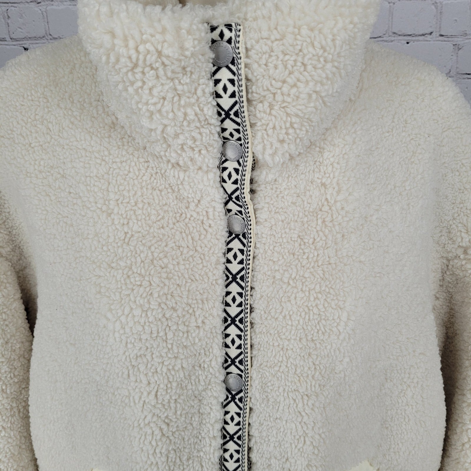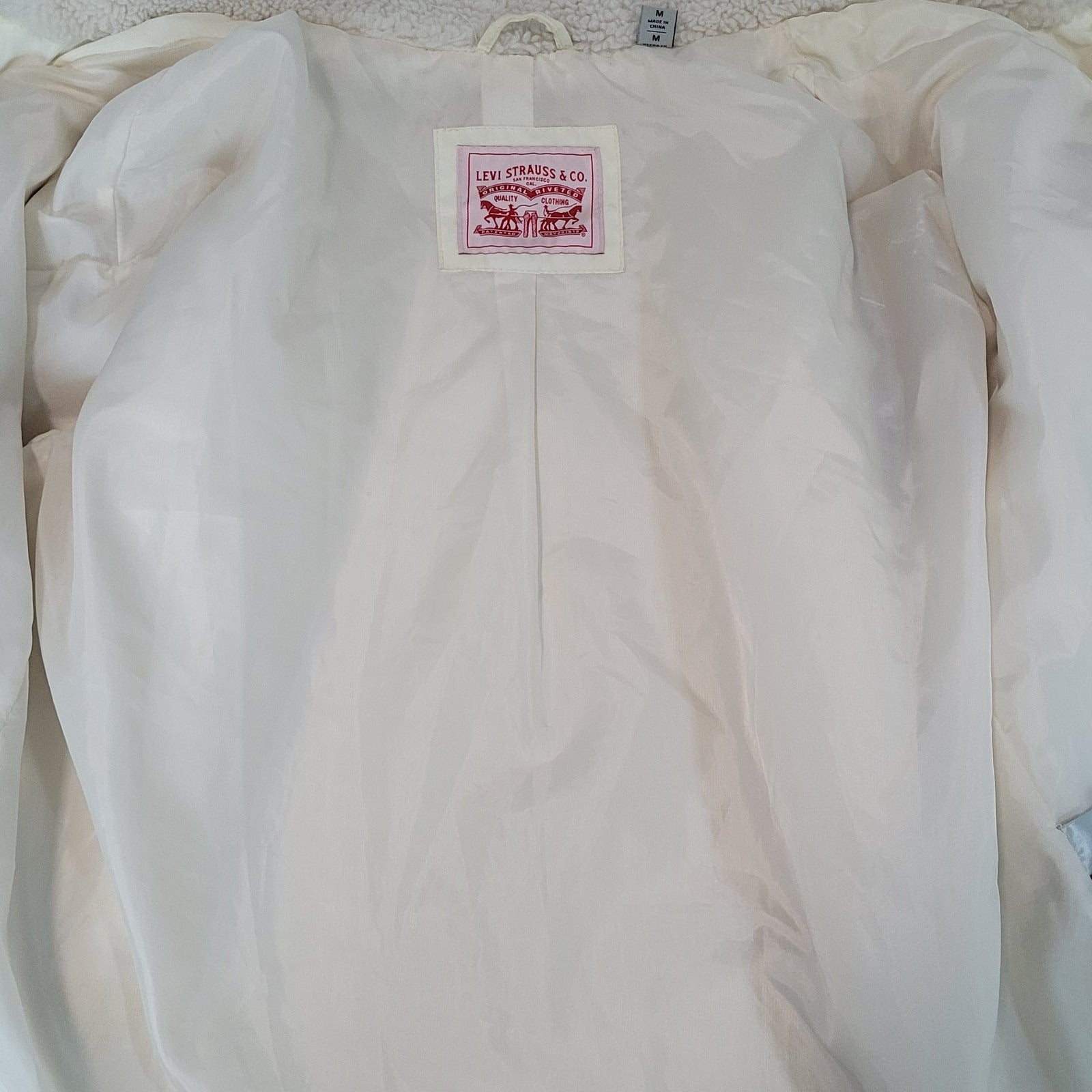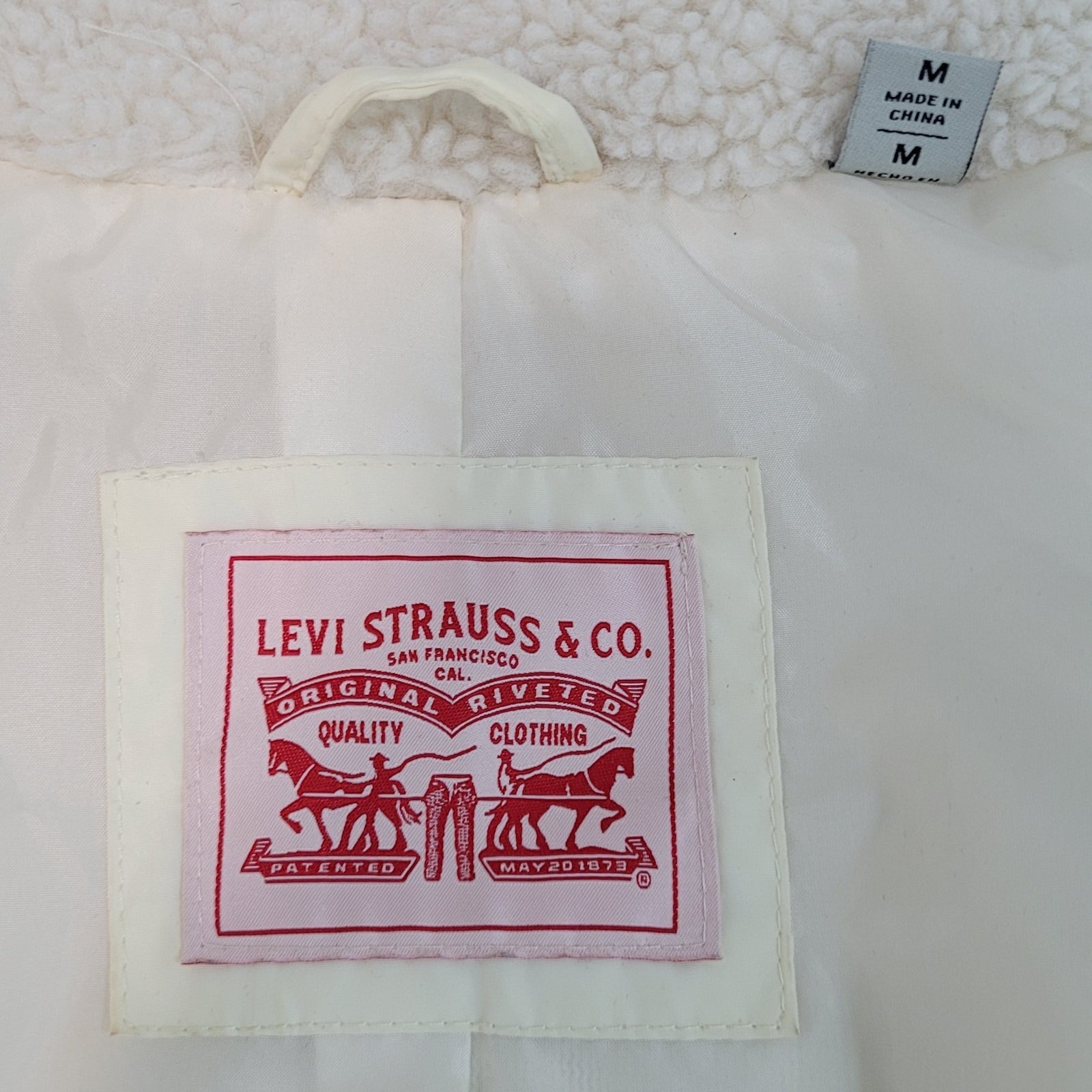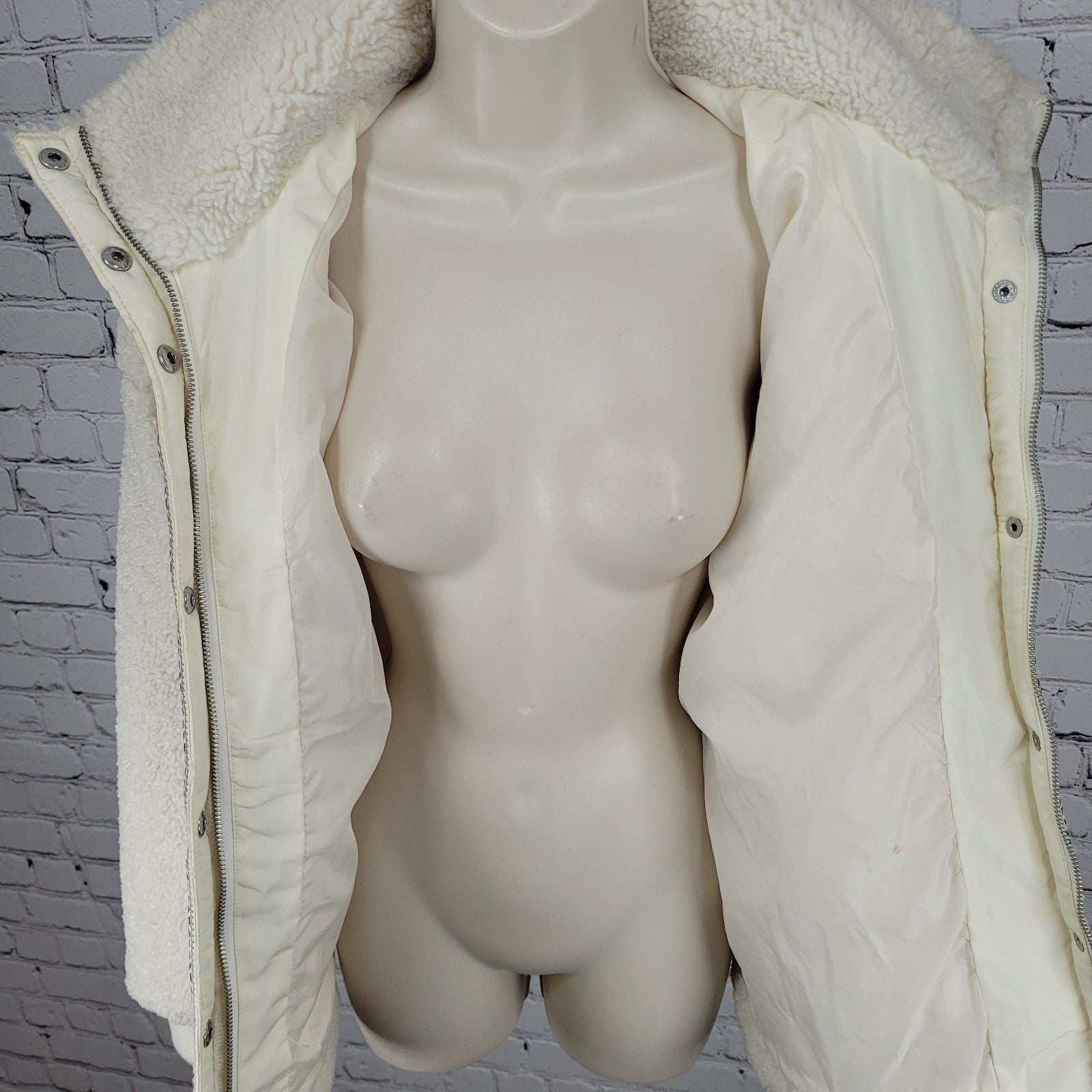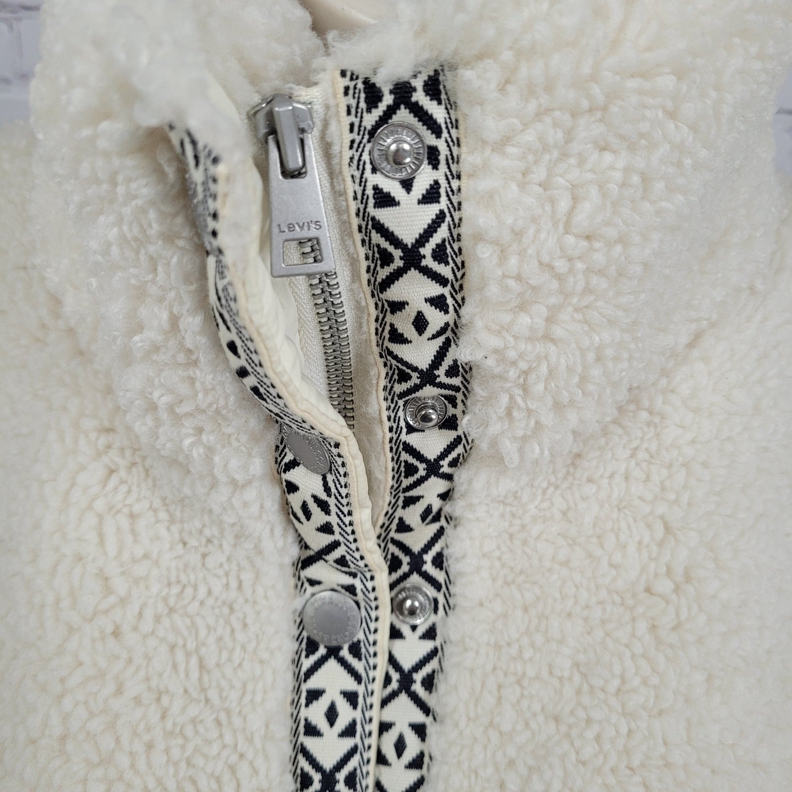 Levi's Cream White Sherpa Plush Full Zip & Snapped Lined Jacket Size Medium M