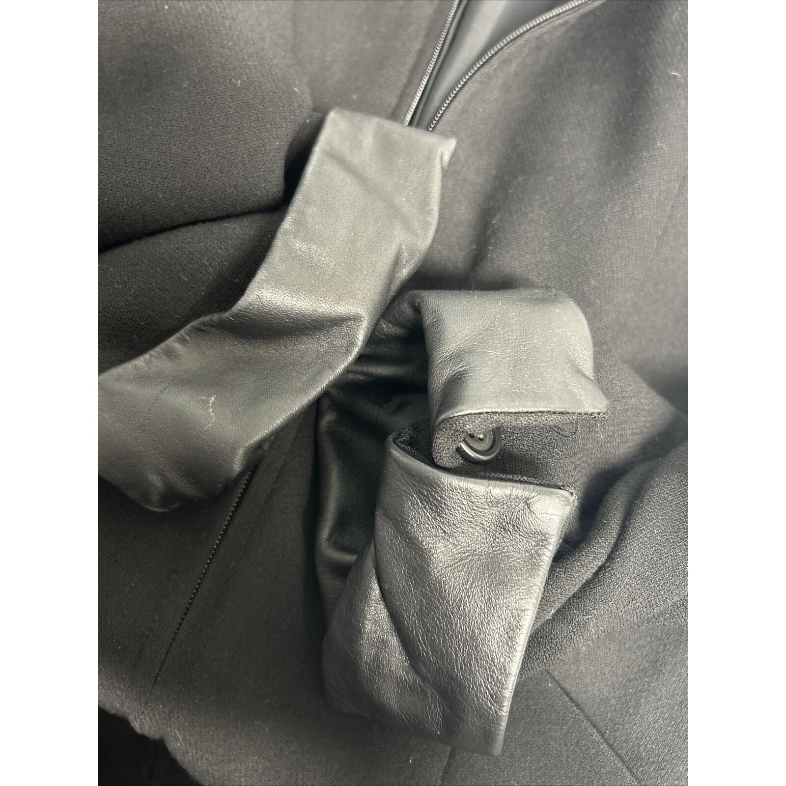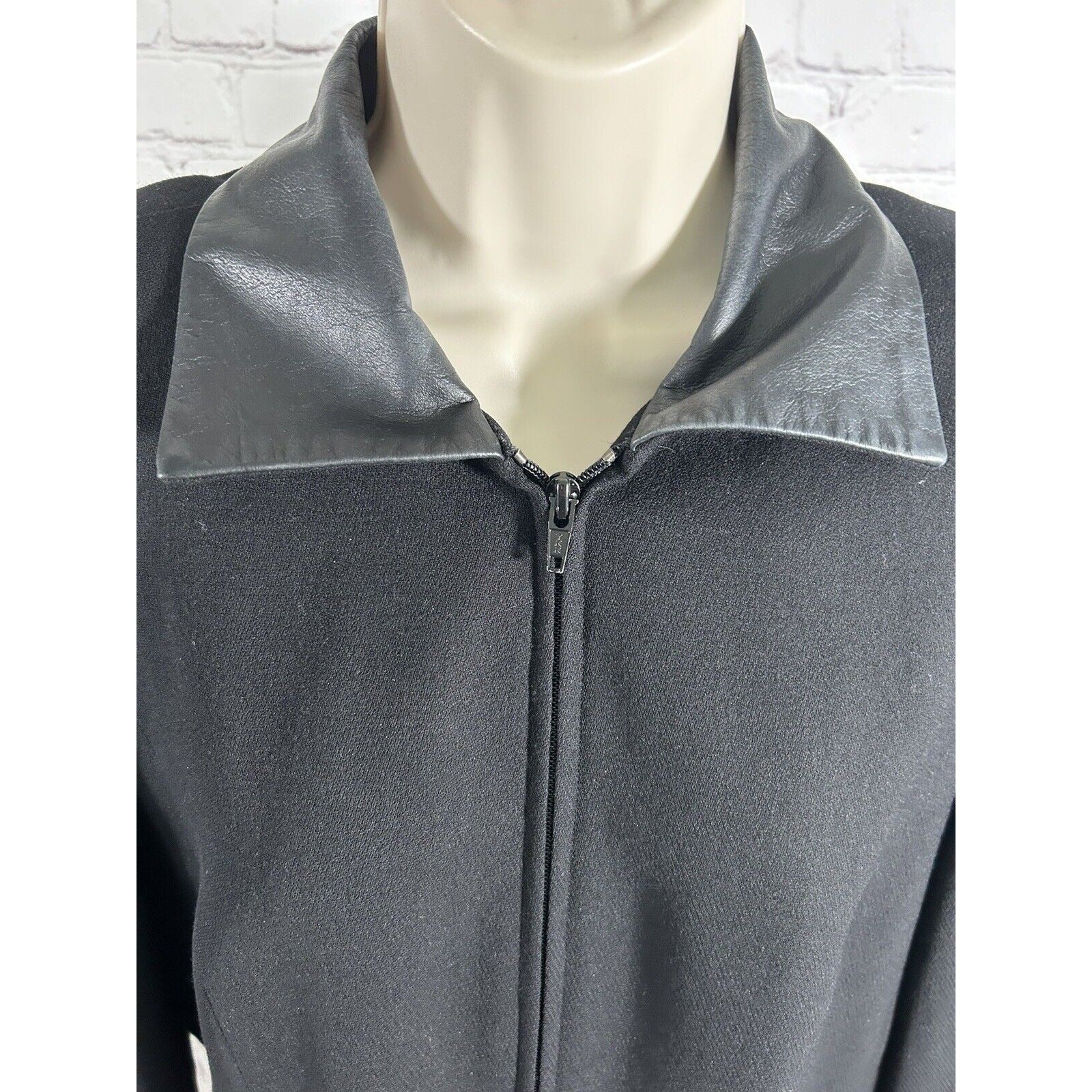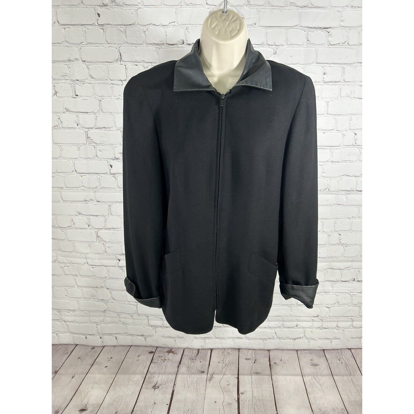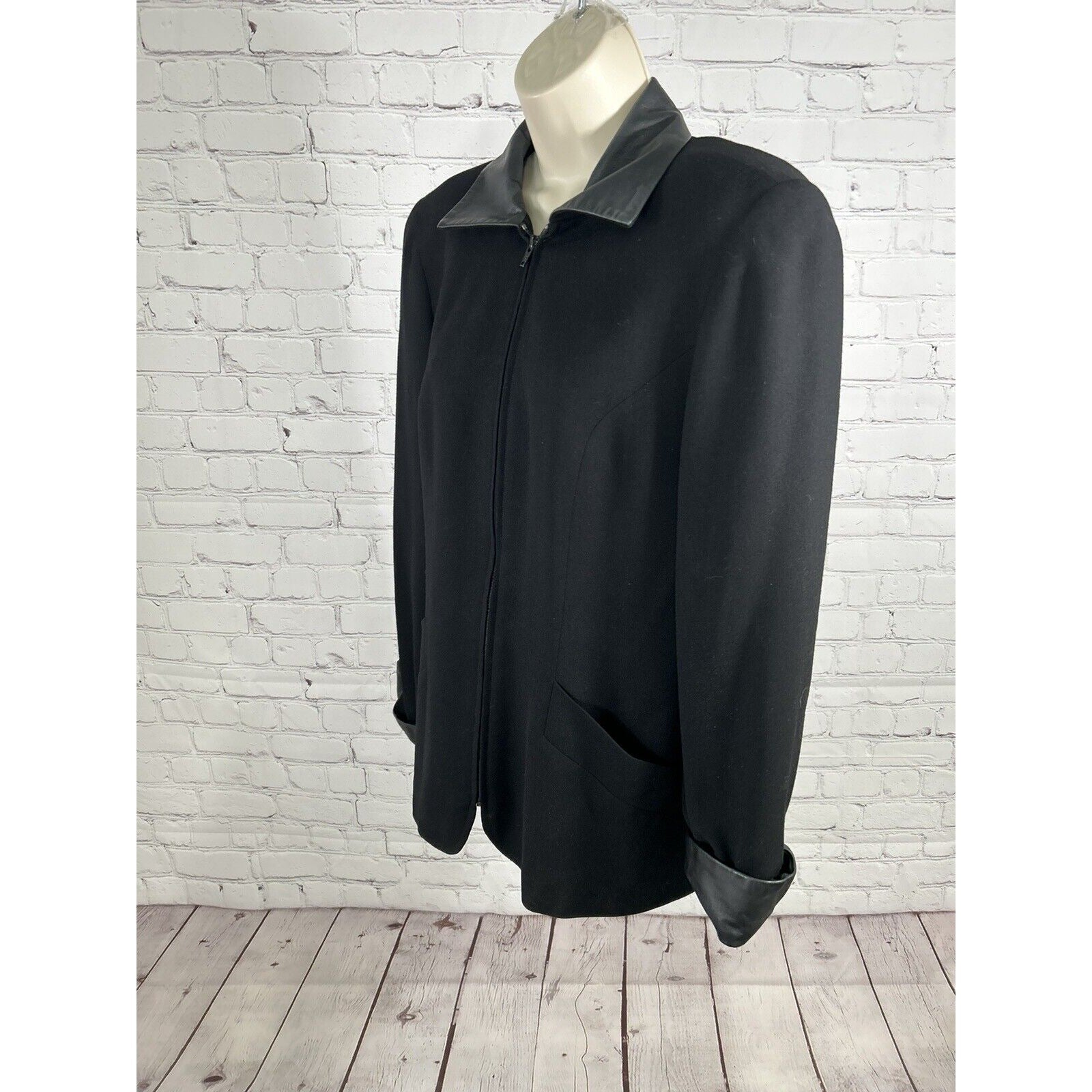 LIMITED Black Wool Shell Genuine Leather Trim Full Zip Collared Womens Jacket 10