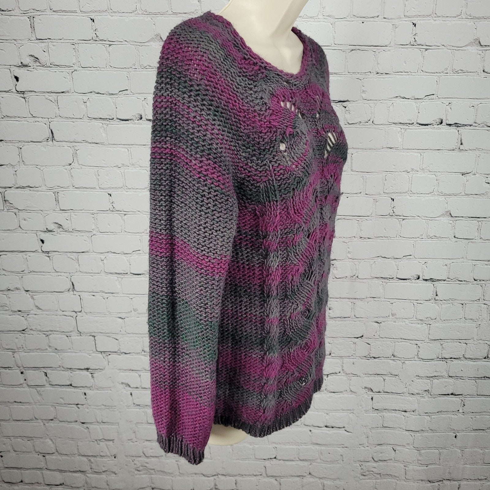 Lola's Purple & Green Wool Blend Chunky Knit Sweater Italy Made Size Small S