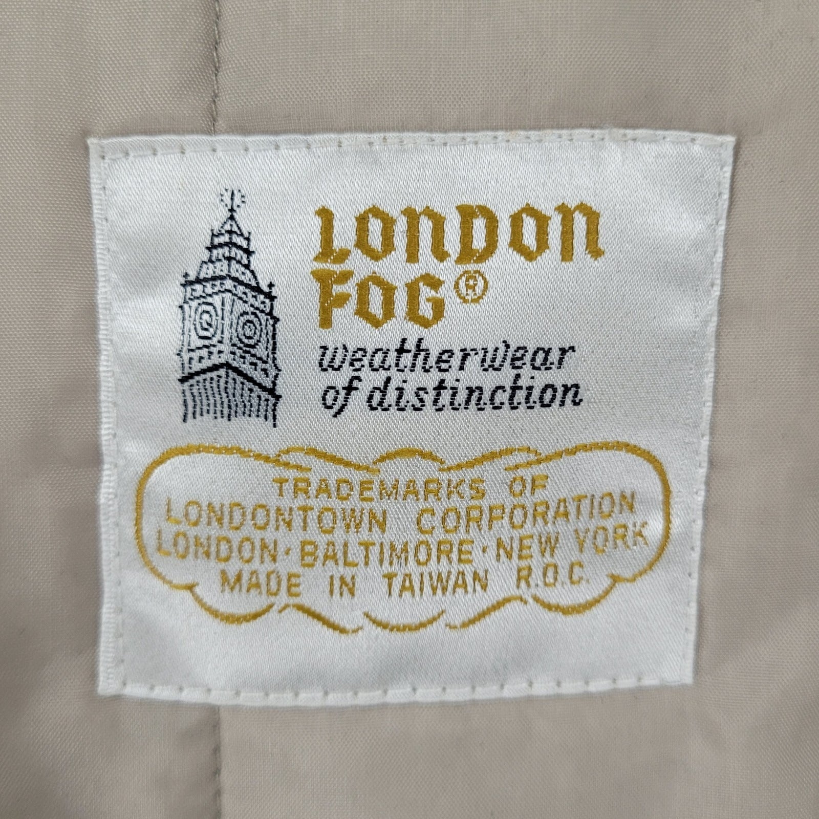 The London Fog Beige Removable Thinsulate Liner Jacket in size 14 is a classic mid-length jacket perfect for women. This solid beige jacket features long sleeves, a full zip closure, and pleated accents. It is suitable for various occasions such as travel, casual outings, workwear, and business meetings. The jacket is lined, insulated, and includes removable lining for added versatility. Made in Taiwan, this basic jacket with a collared neckline and pockets is a stylish and practical choice for outdoor activities in the winter, fall, and spring seasons.