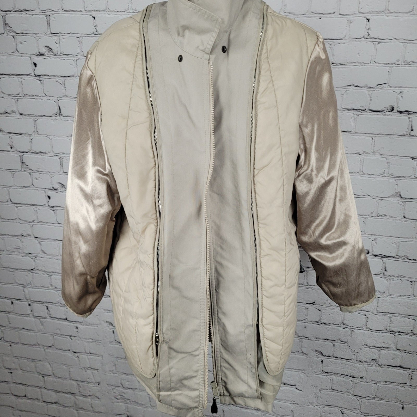 London Fog Beige Removable Thinsulate Liner Pleated Full Zip Jacket Size 14