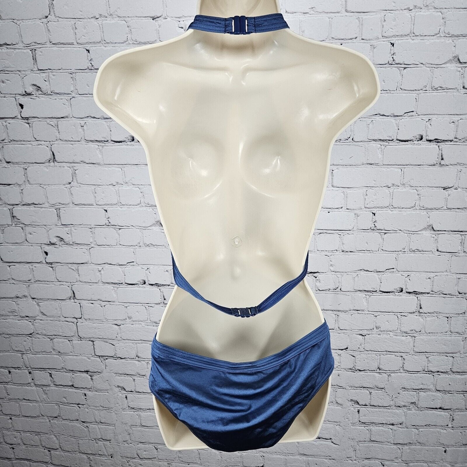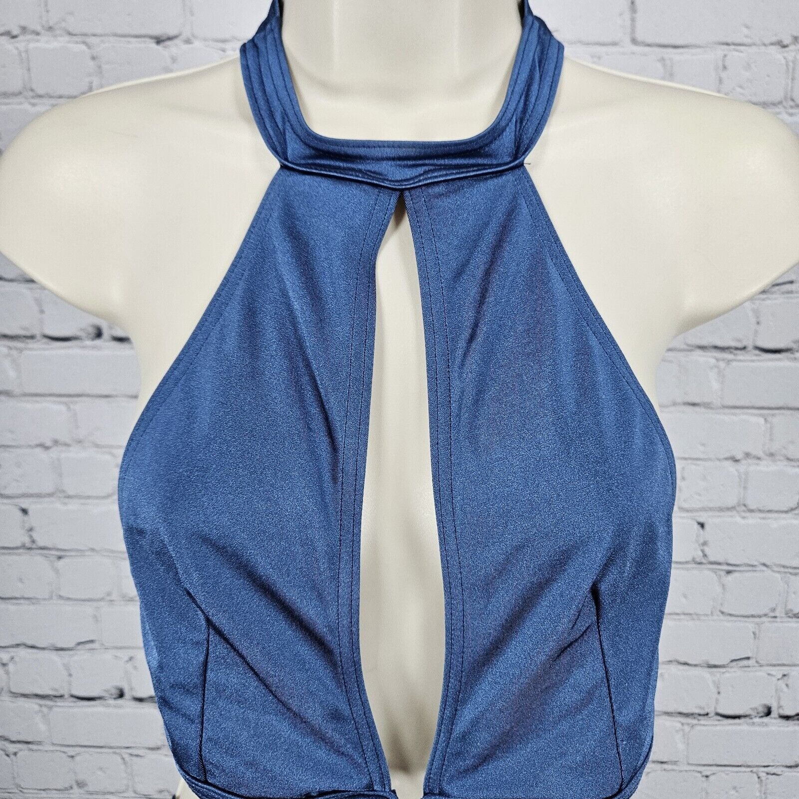 Lost Ink Metalic Blue ASOS 1 Piece Halter Top Cut Out Swim Suit Size US 10