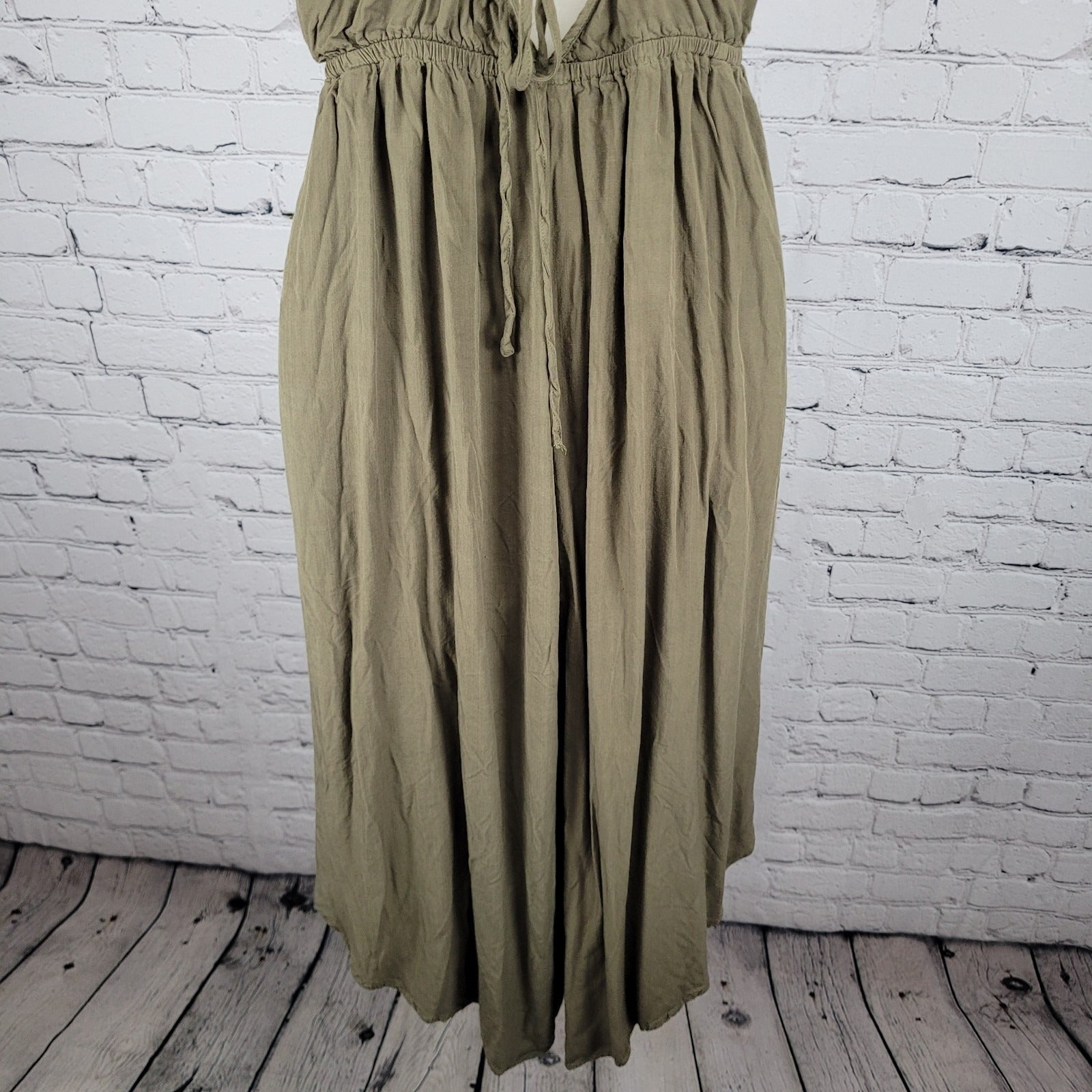 Lulus Green Adjustable Strappy Back Wide Leg Elastic Waist Jumper Size Small S