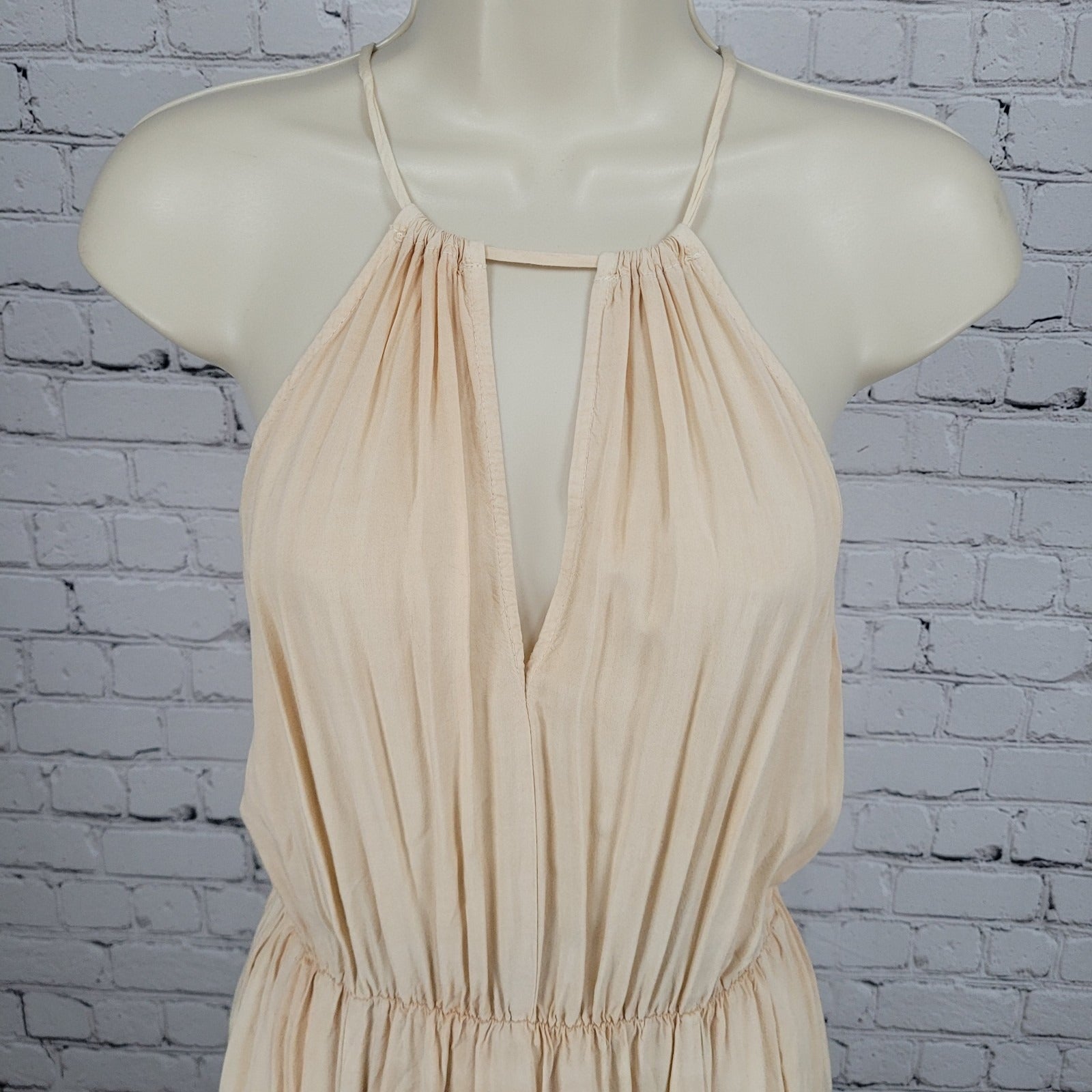 The Lulus Multicolor Ombre Sleeveless Maxi Dress in Size XS is a stylish and versatile piece perfect for various occasions such as travel, parties, or casual outings. Made of lightweight rayon material, this dress features flattering front slits, a halter neckline with a tie closure, and a bohemian beach theme ideal for summer, fall, and spring seasons. The adjustable and lined design adds comfort and flexibility to this long dress, making it a great addition to any woman's wardrobe.
