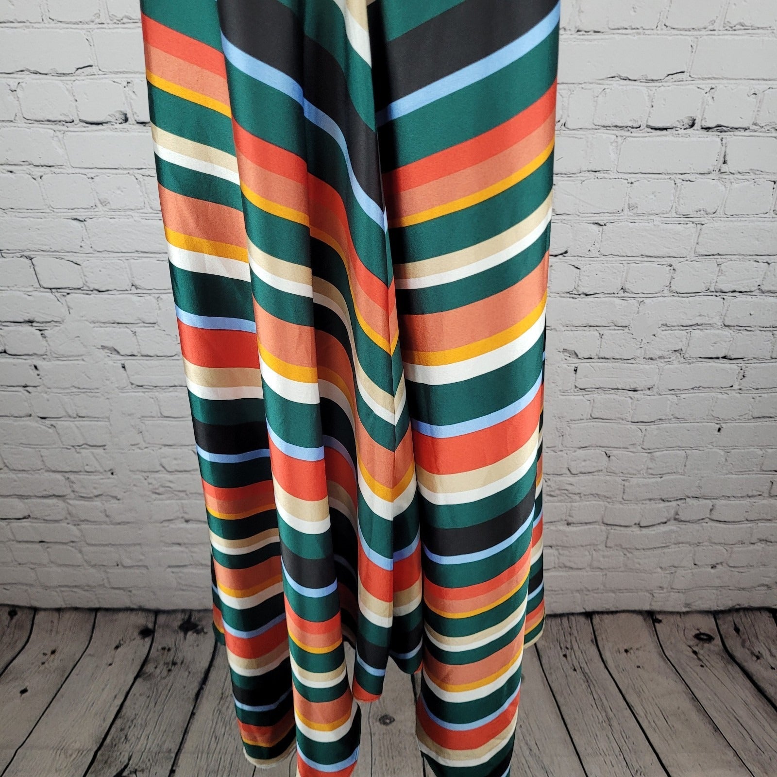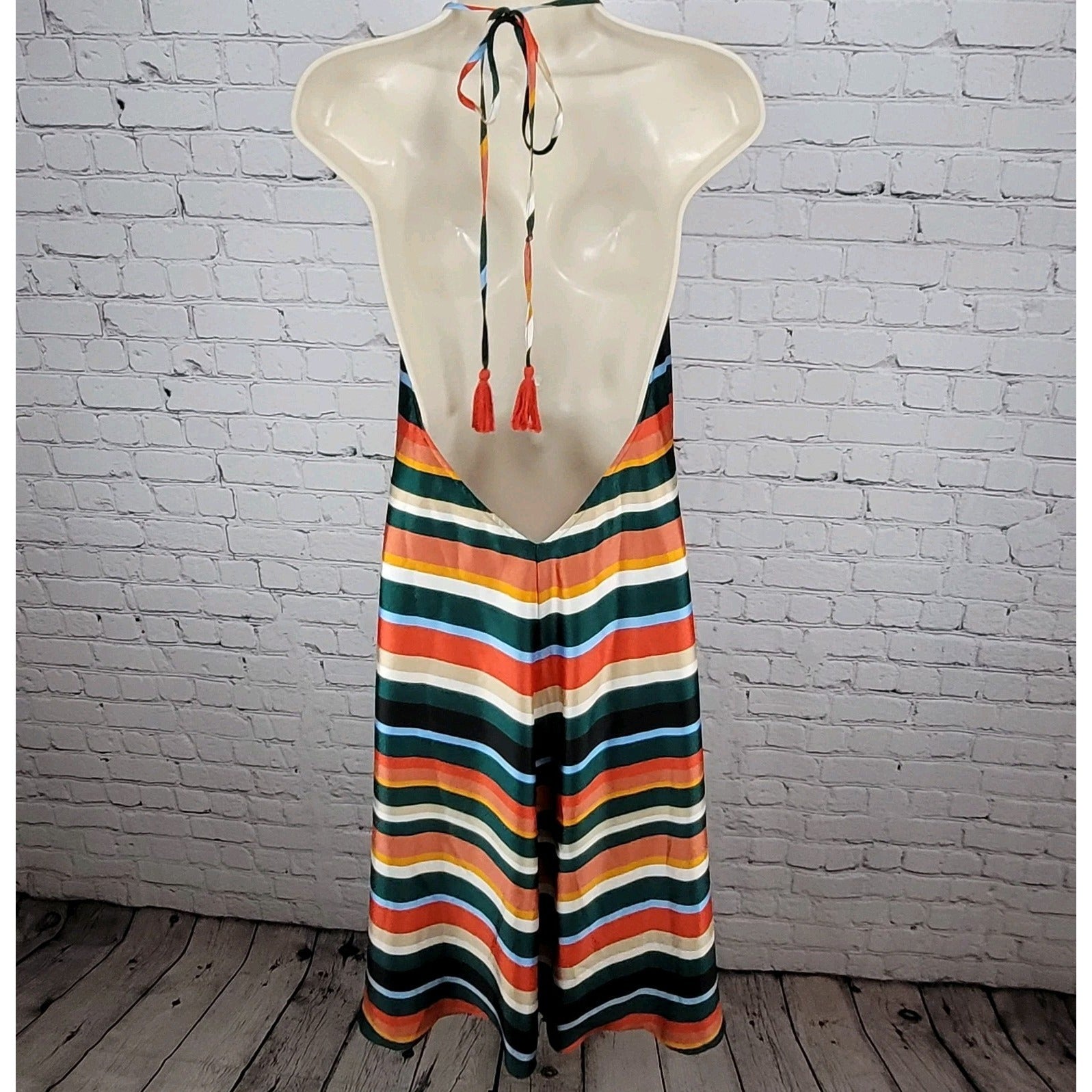 Lulus Multicolor Striped Silky Satin V-Neck Halter Tie Backless Dress Medium M