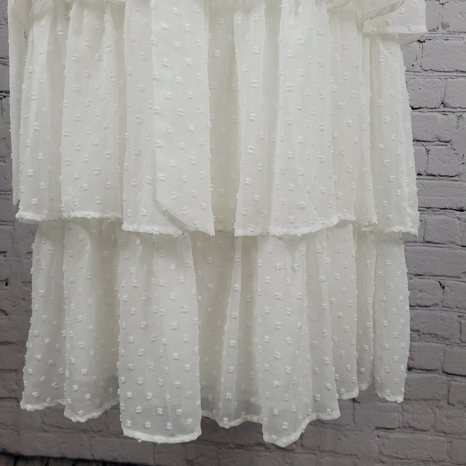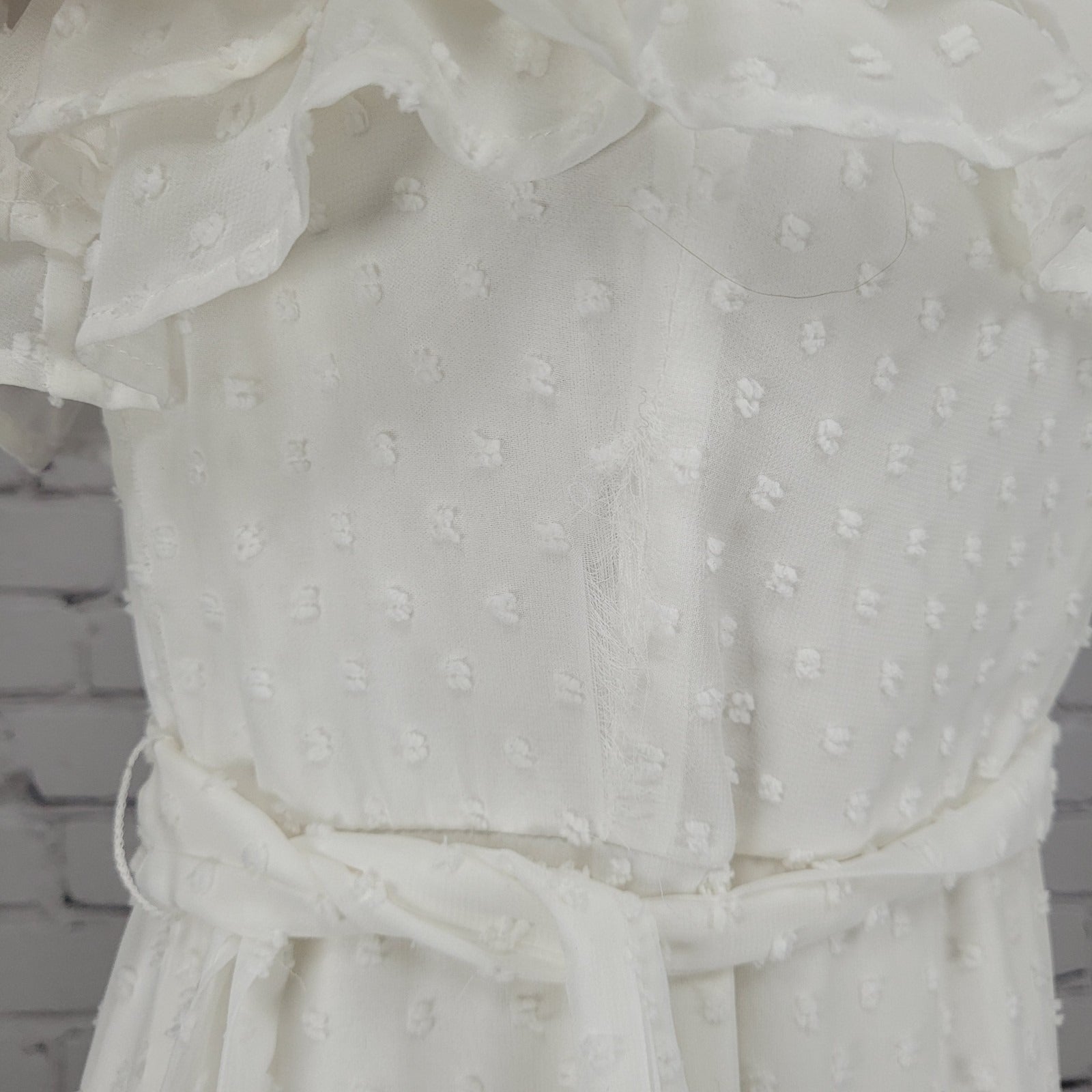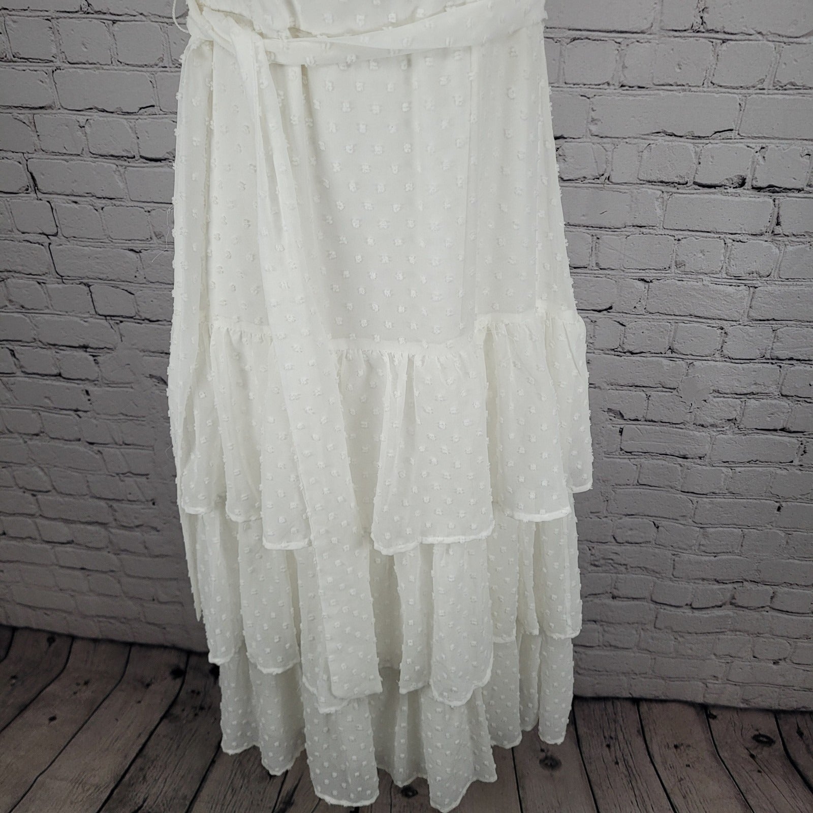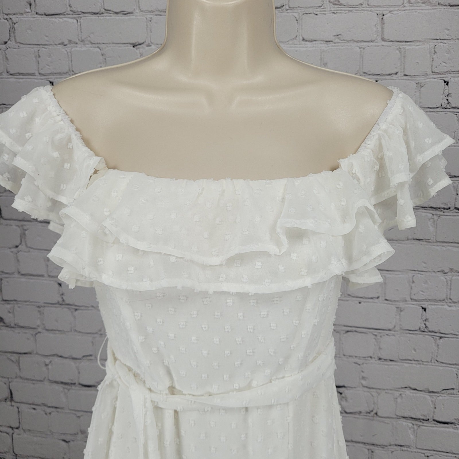 Lulus White Off Shoulder Sleeve Belted Ruffle Tiered Lined Midi Dress Size XS