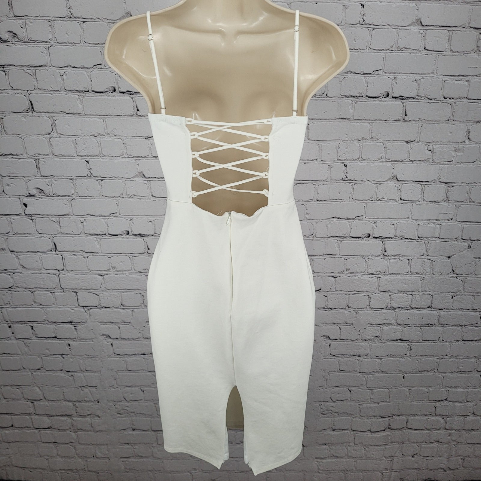 Lulus White Strappy Back Slit Stretch Lined Bodycon Dress USA Made Size XS