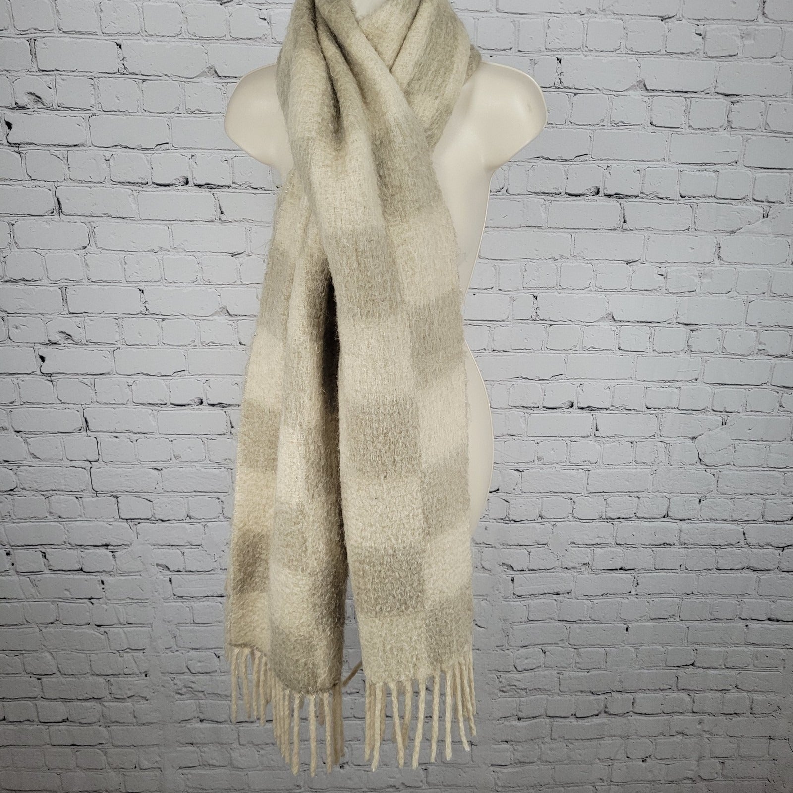 Madewell Beige Check Fringe Soft Rectangle Scarf Neckwarmer Shawl Wrap 77x18