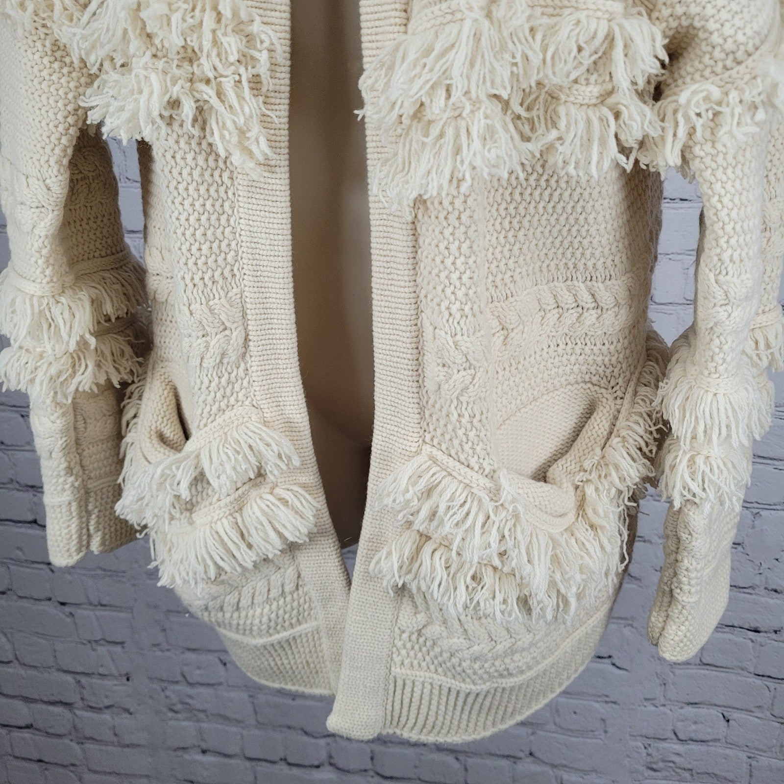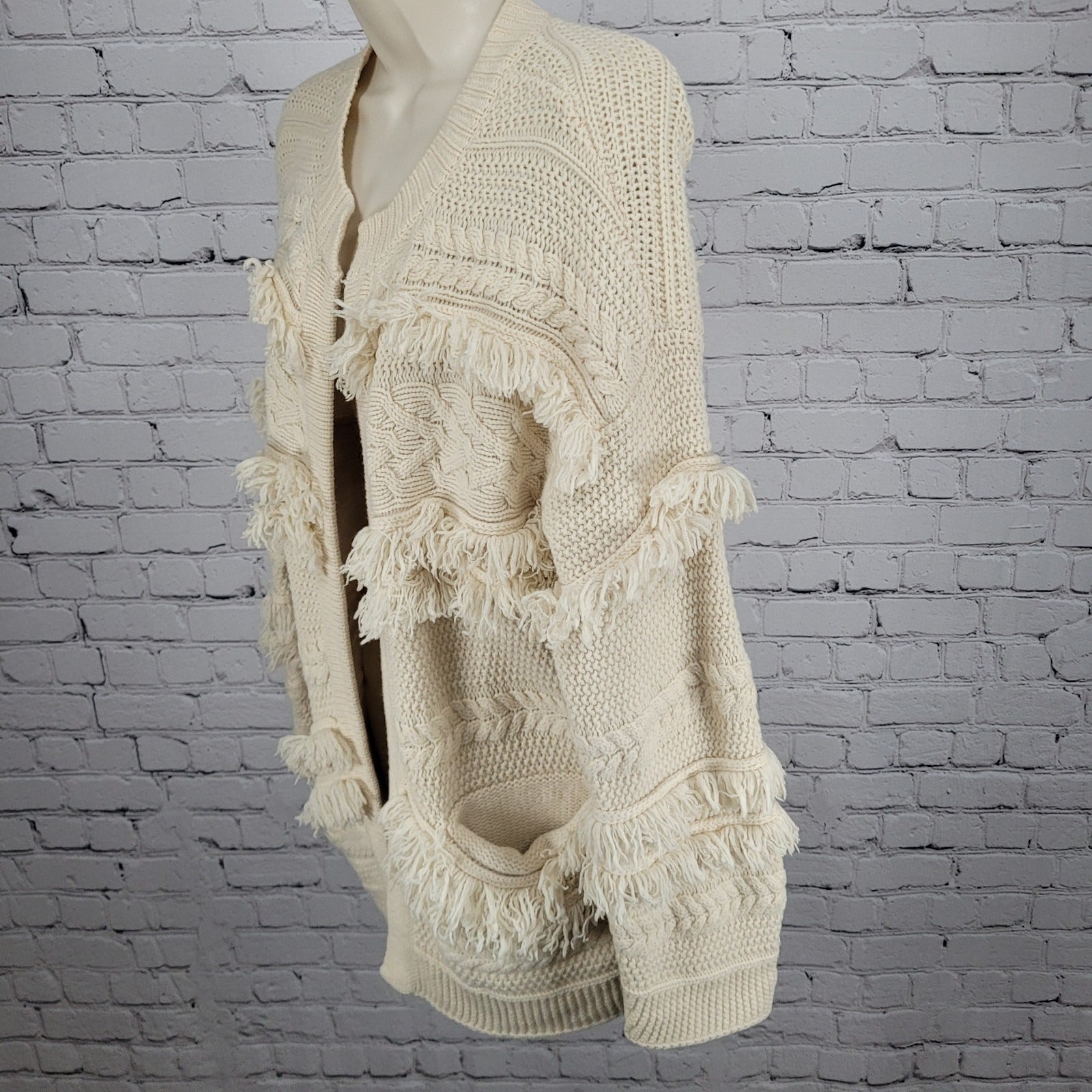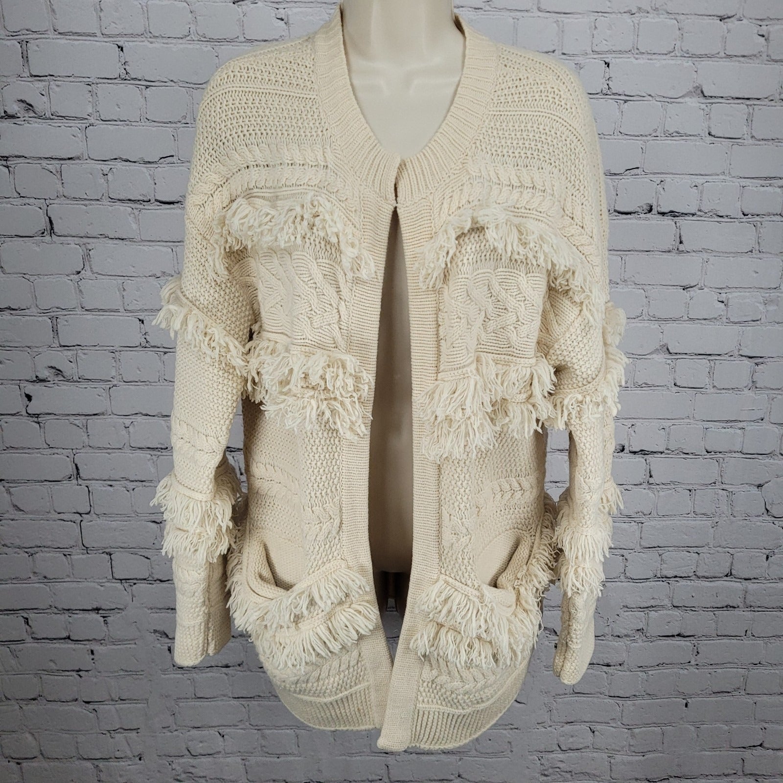 Madewell Beige Chunky Cable Knit Fringe Open Cardigan Sweater Size Medium M