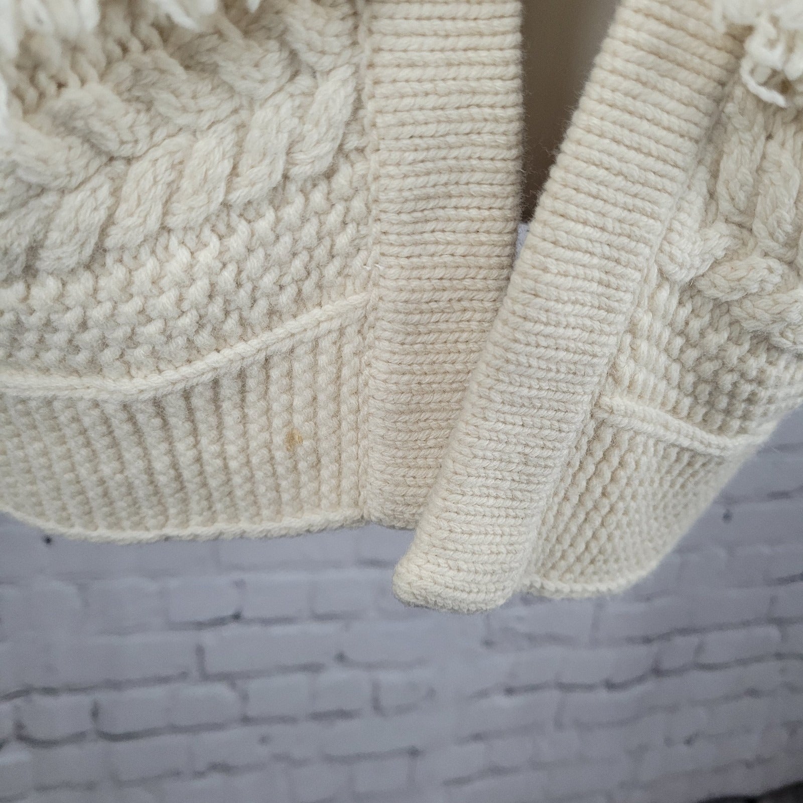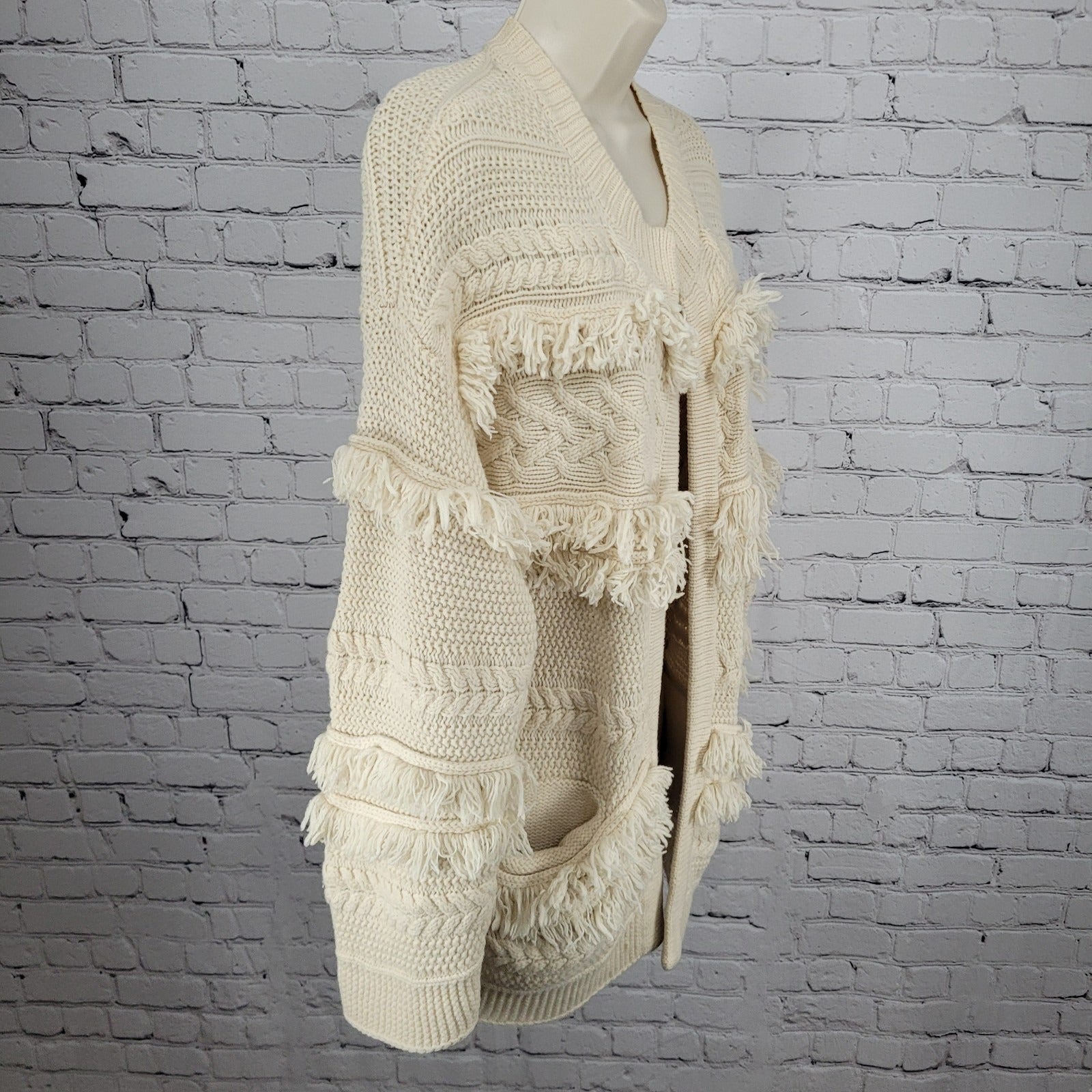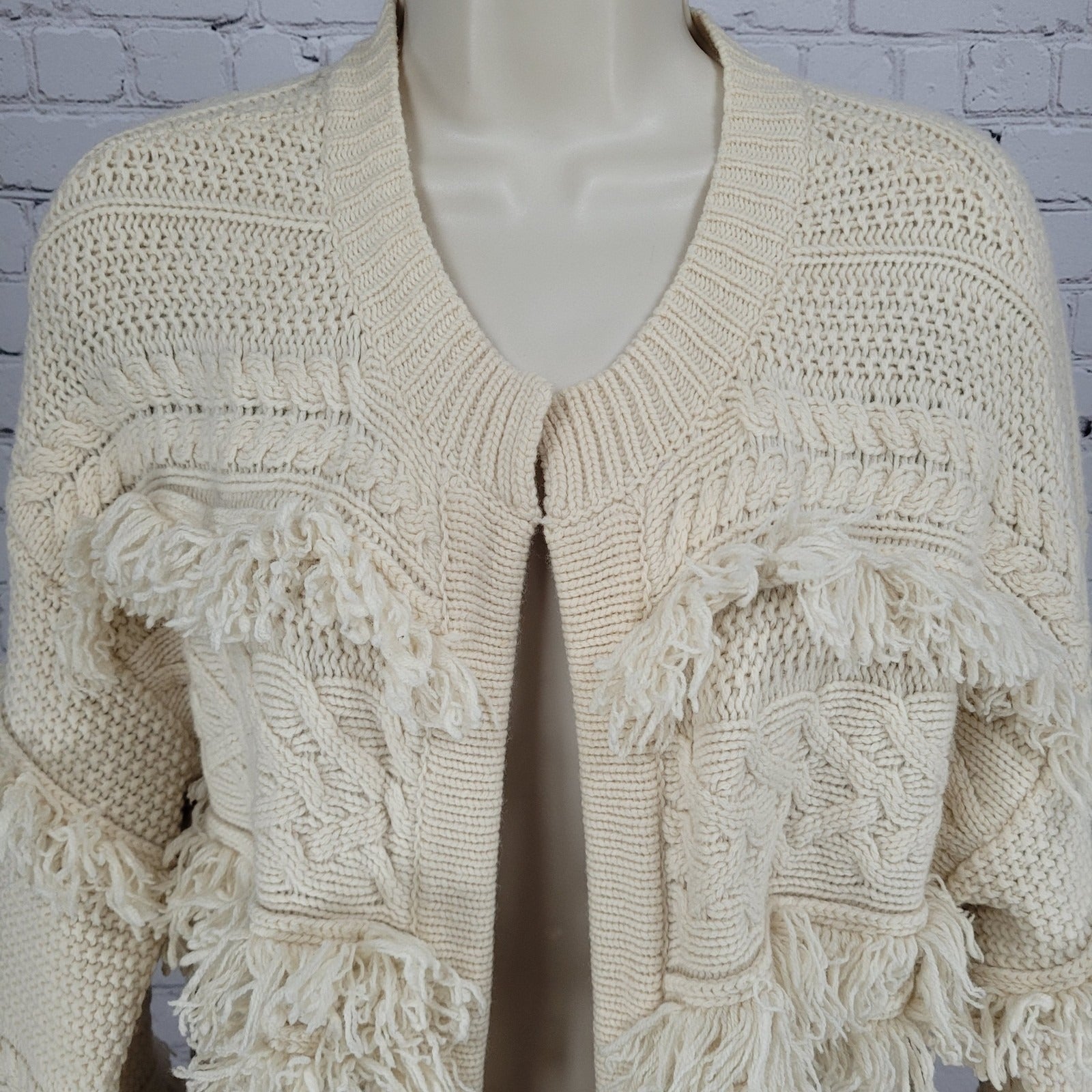 Madewell Beige Chunky Cable Knit Fringe Open Cardigan Sweater Size Medium M