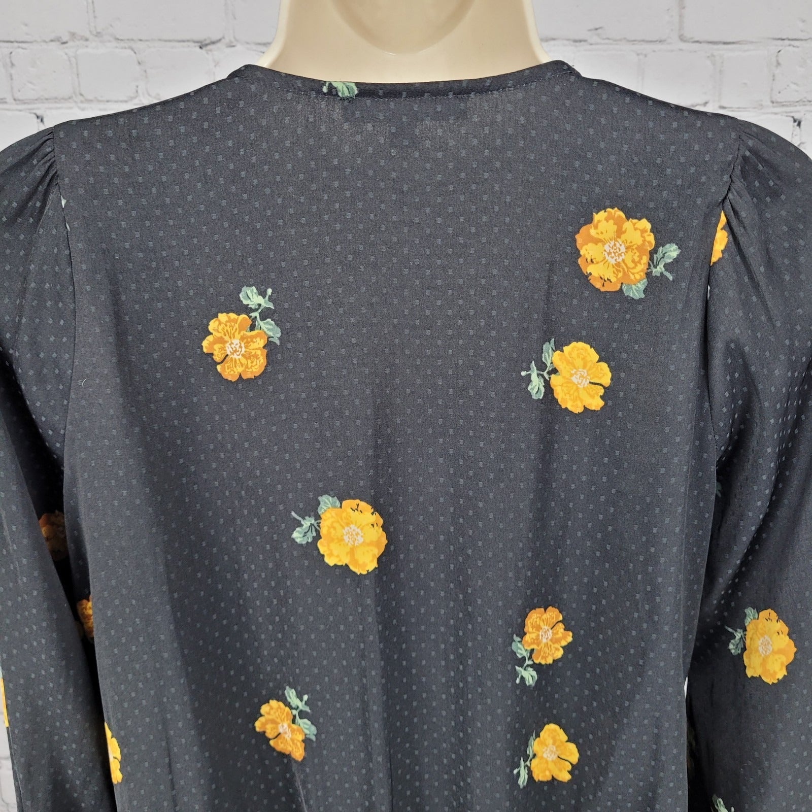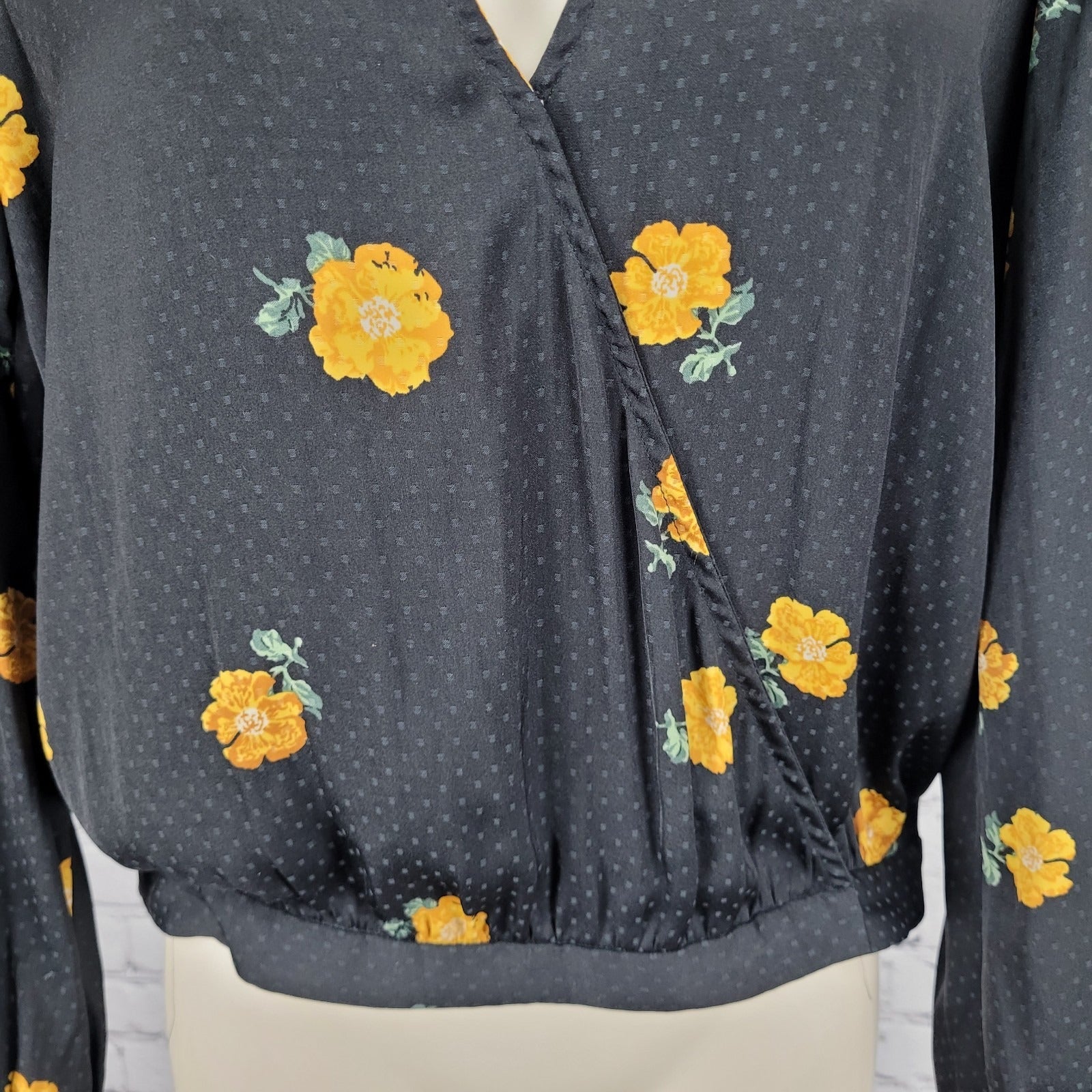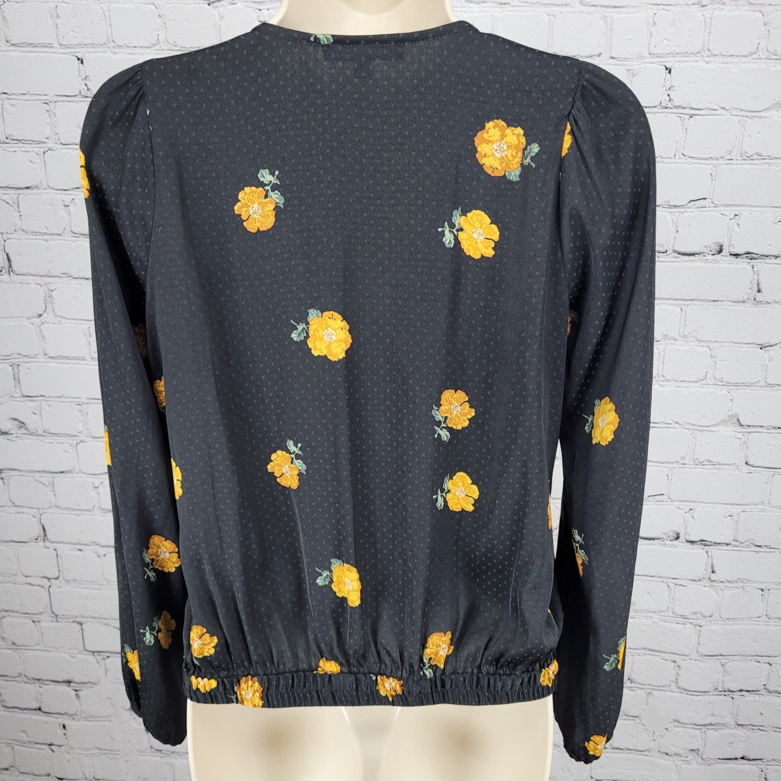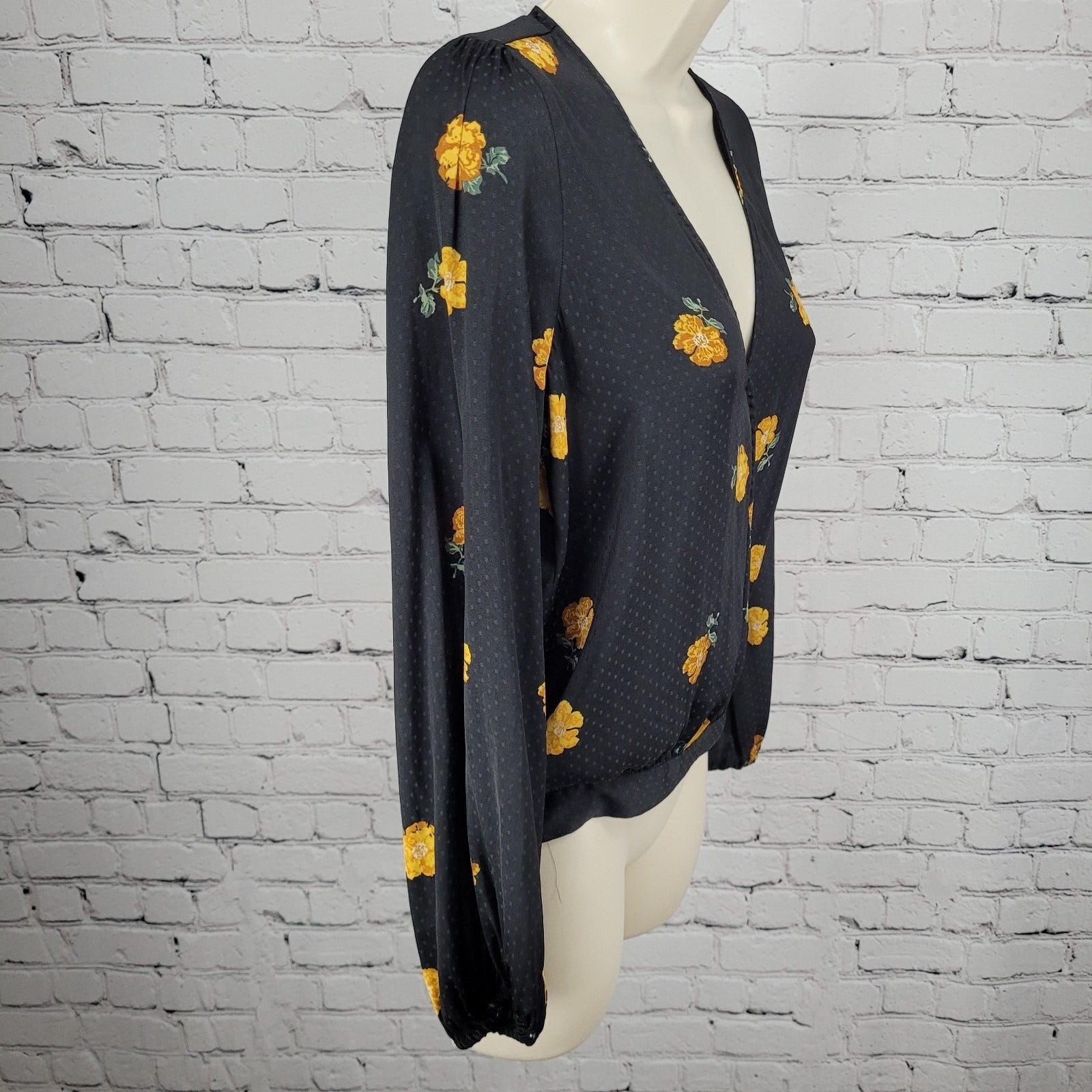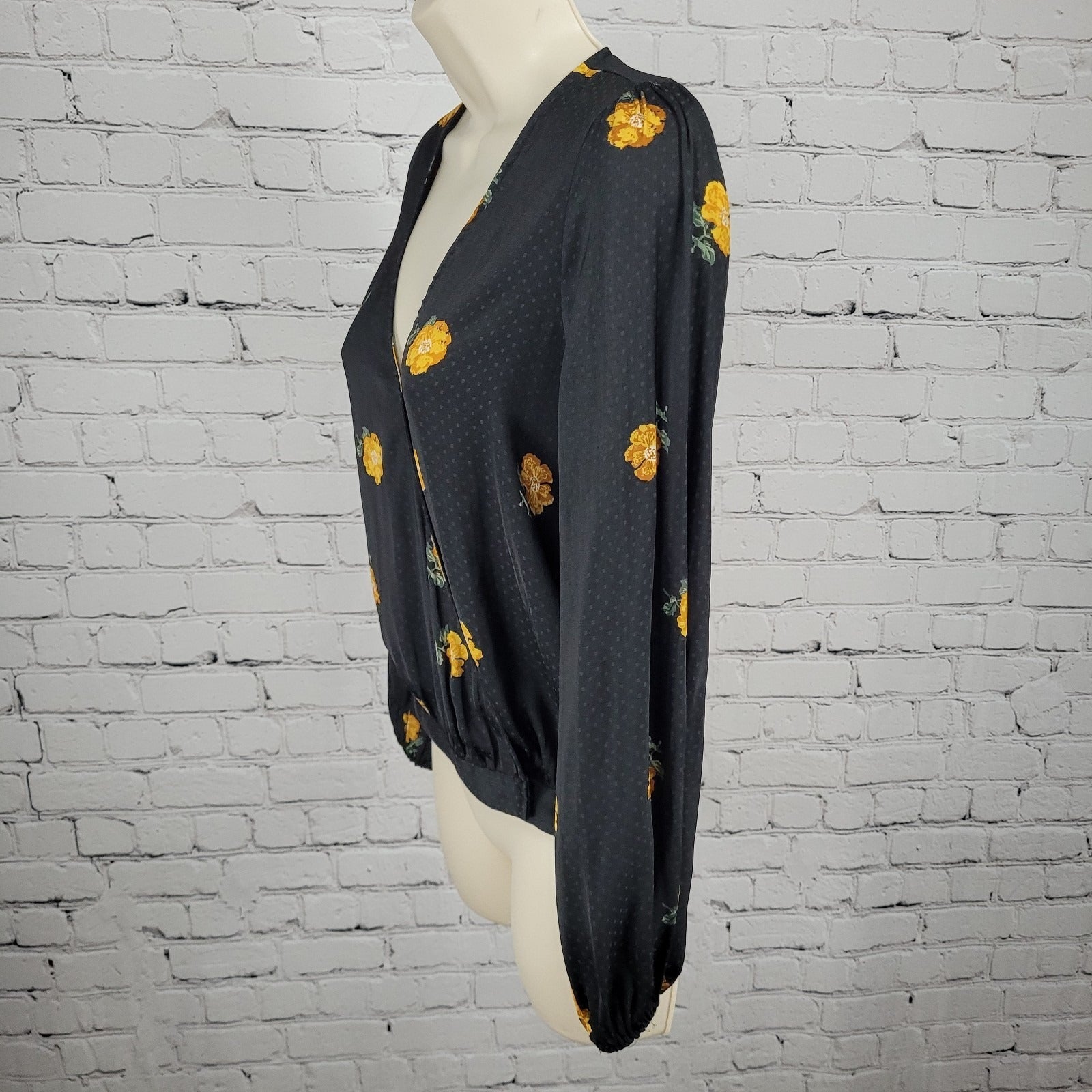 Madewell Black Floral Wrap Long Balloon Sleeve V Neck Lightweight Blouse Top XS