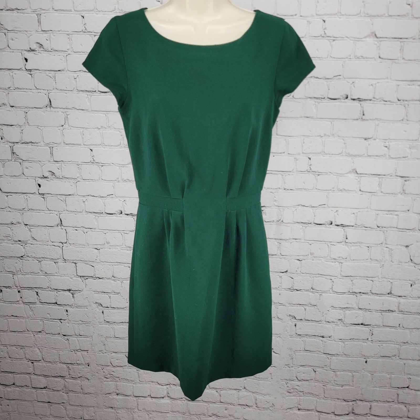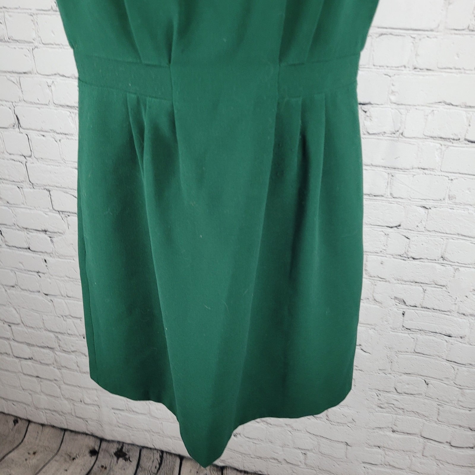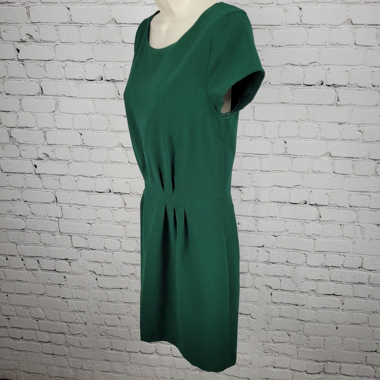 Madewell Green Short Cap Sleeve Pleated Lined Pockets Sheath Dress Size 2
