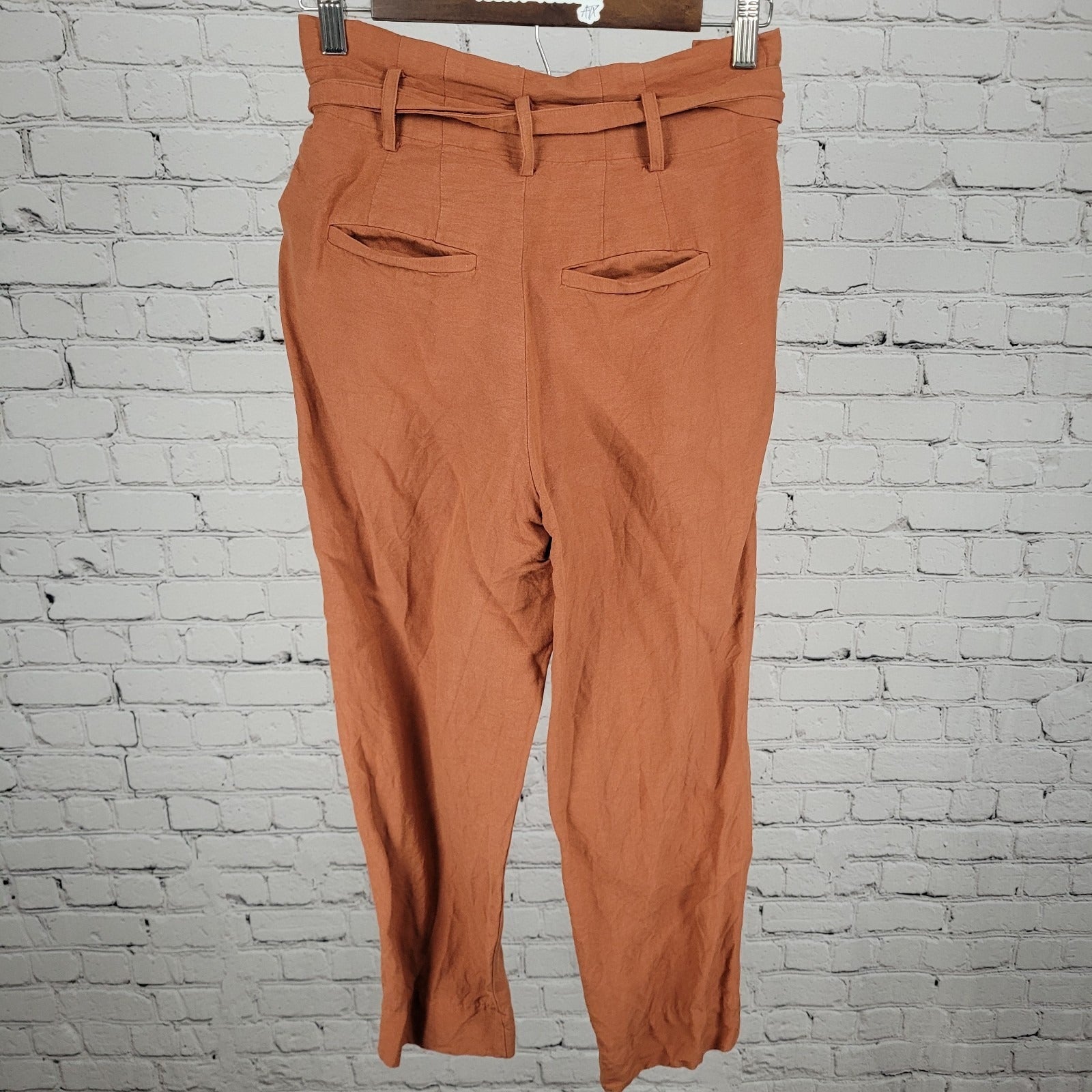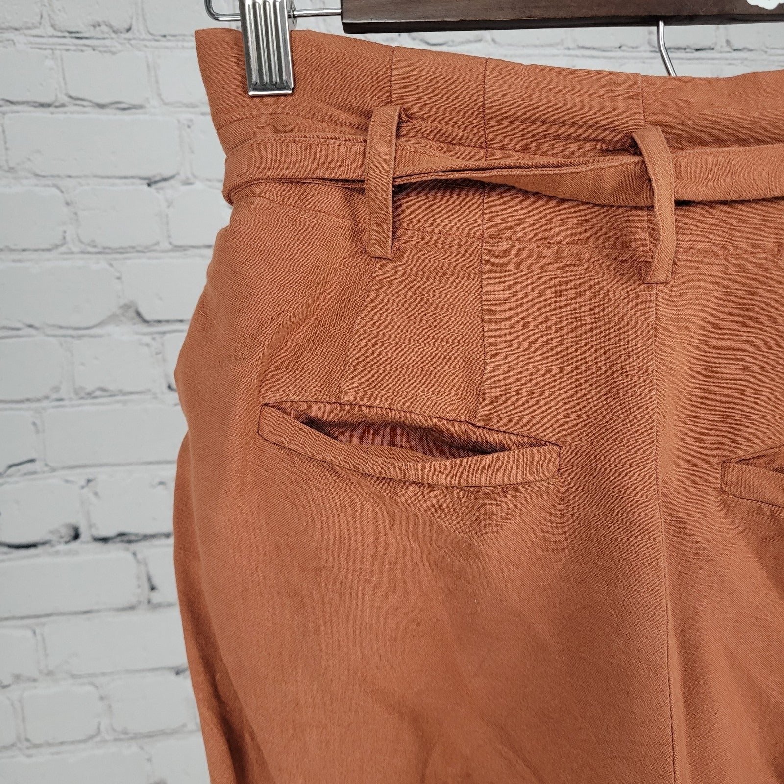 Madewell Orange Linen Blend High Rise Belted Paperbag Crop Pants Size 00 (23x25)