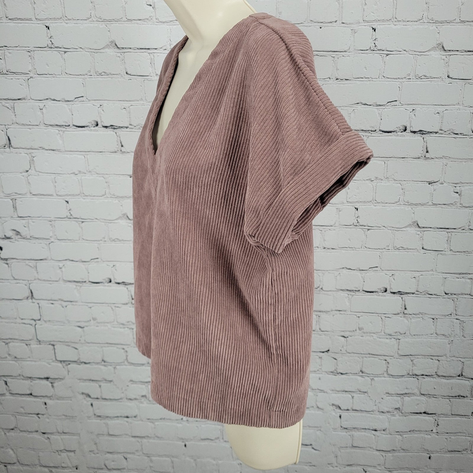 Madewell Purple Corduroy Buttoned Back Short Sleeve V Neck Top Size Small S