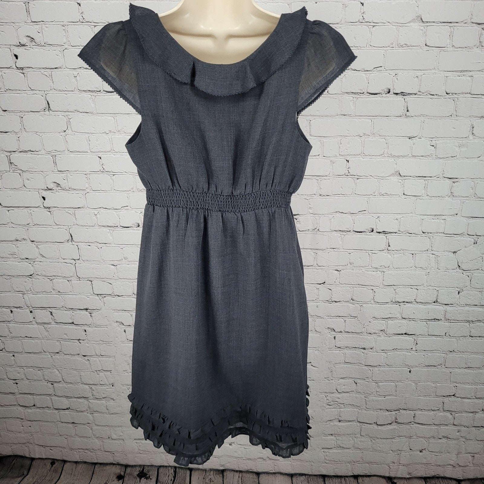Maeve Anthropologie Grey Wool Blend Lightweight Lined Layered A Line Dress 8