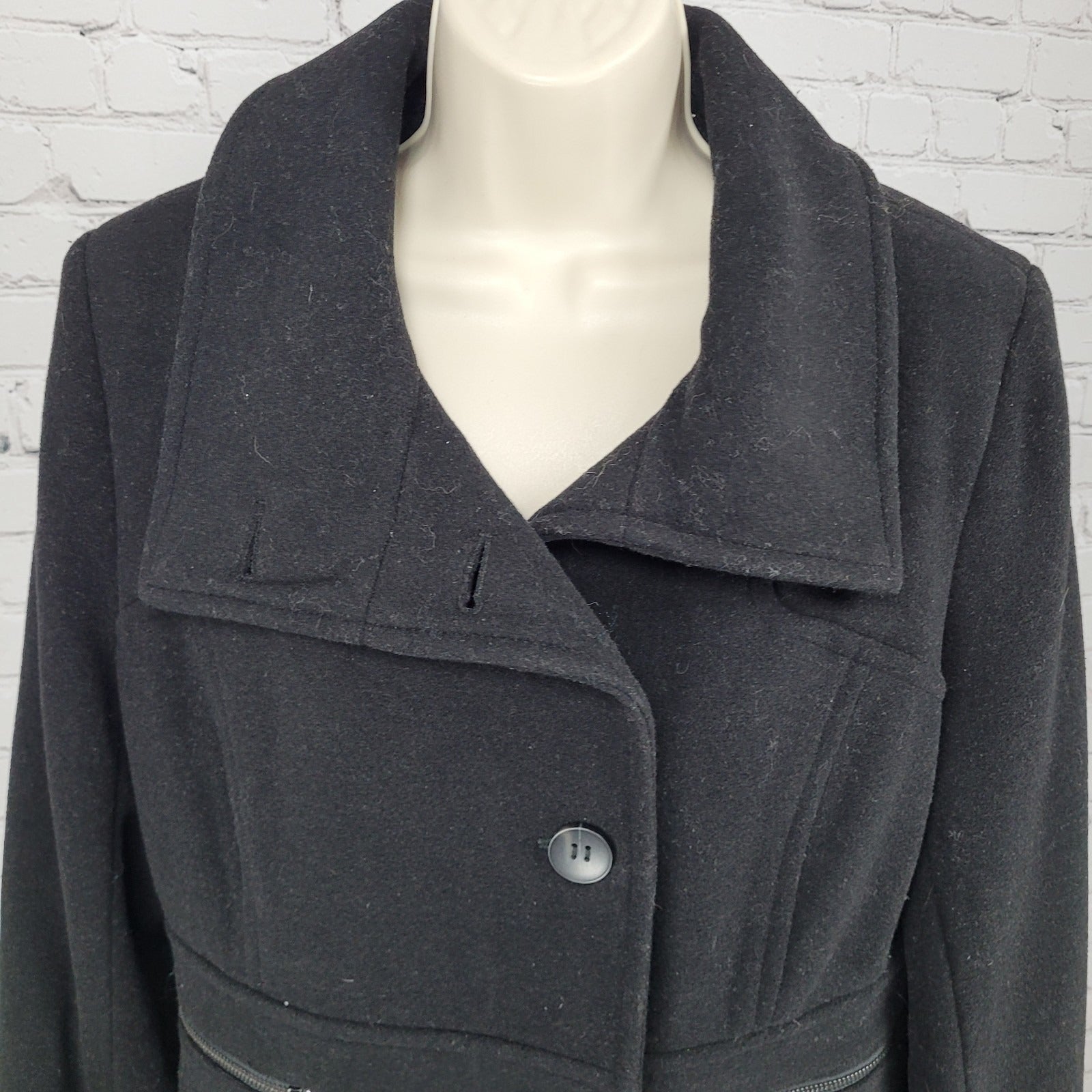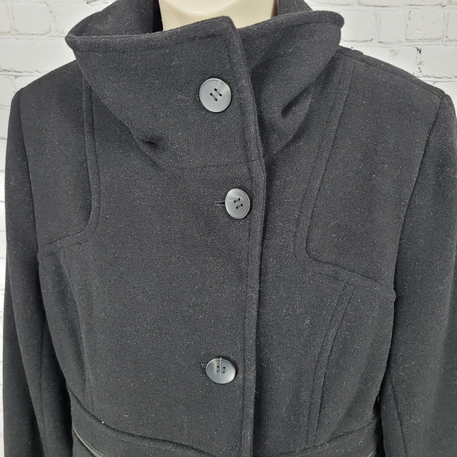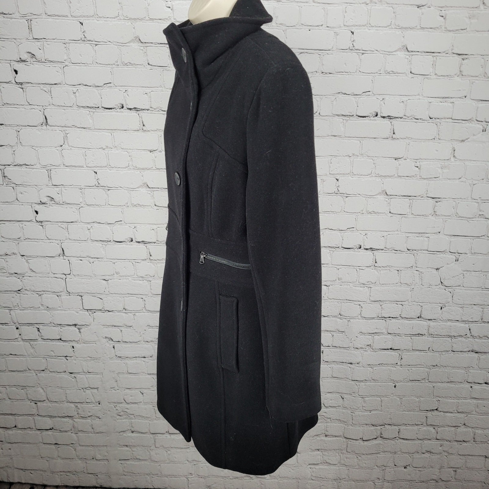 Marc New York Andrew Marc Black Wool Blend Buttoned Pockets Over Coat Size 10