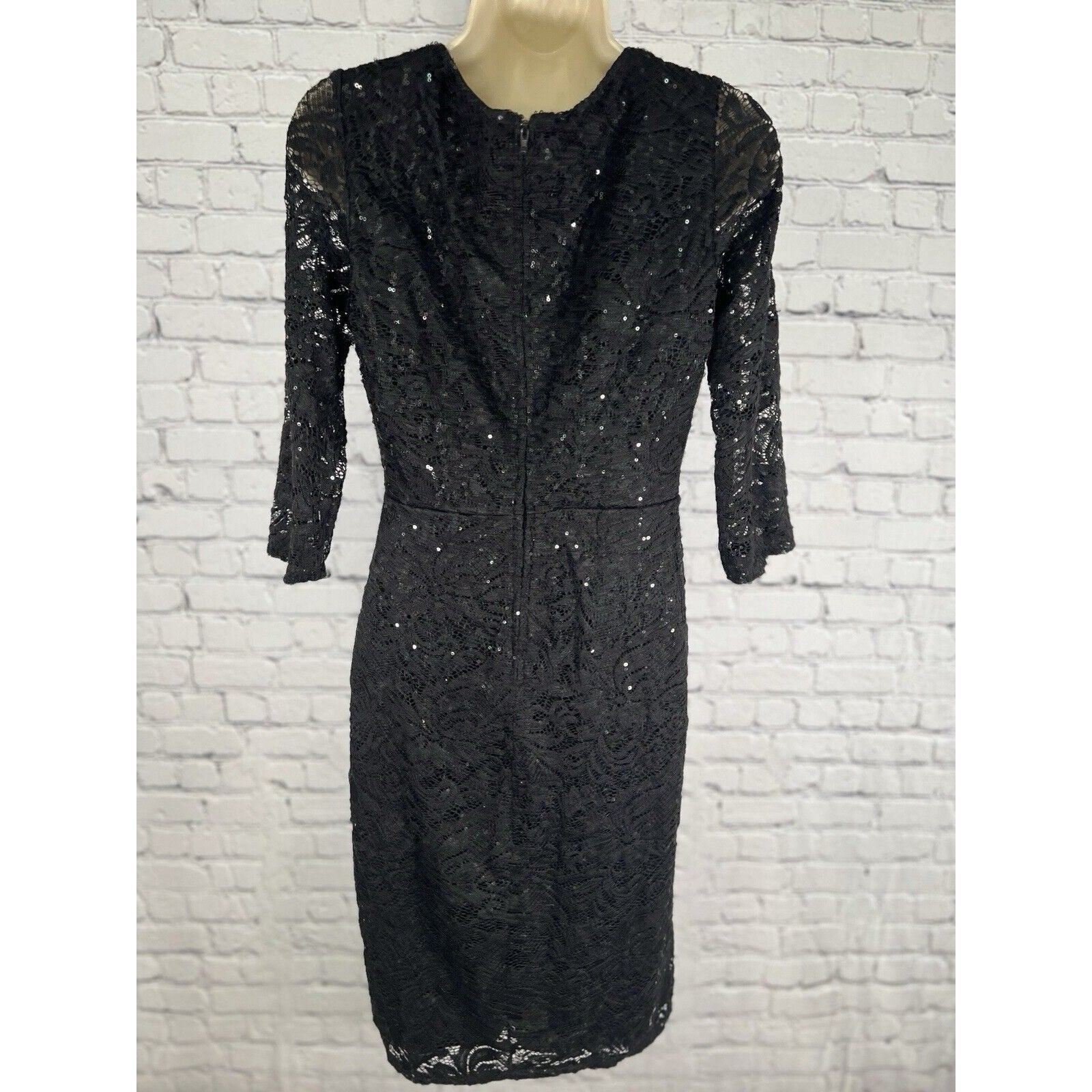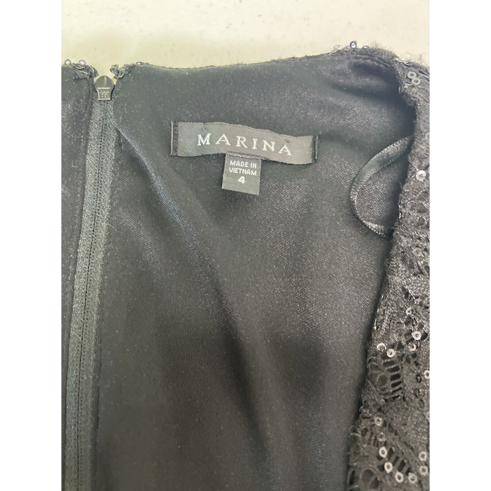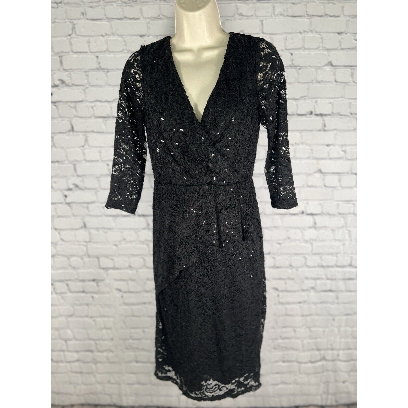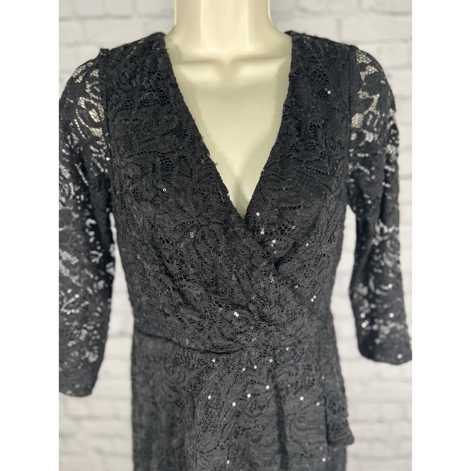 MARINA Black Sequined Lace Faux Wrap Short Dress Evening Gown Women’s Size 4