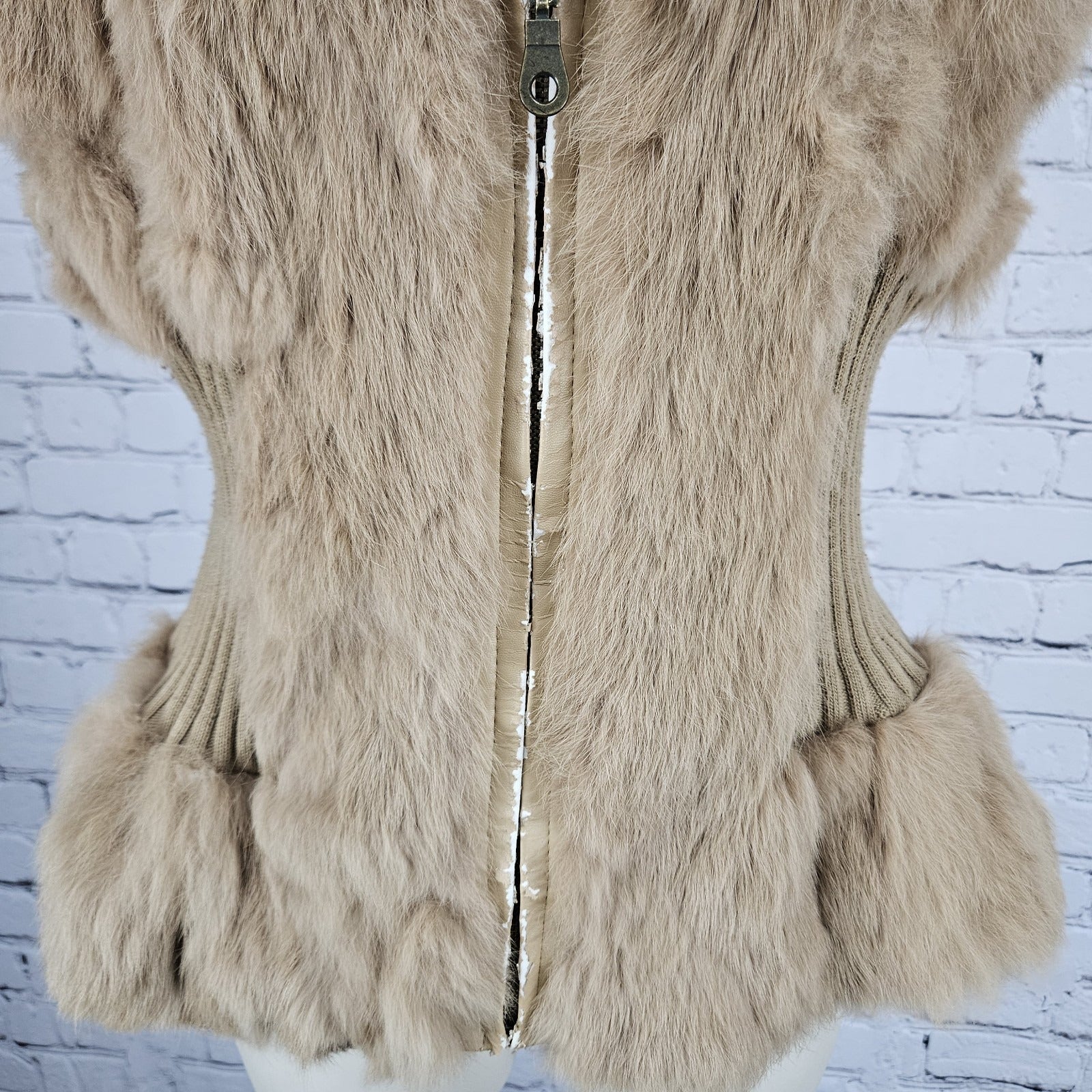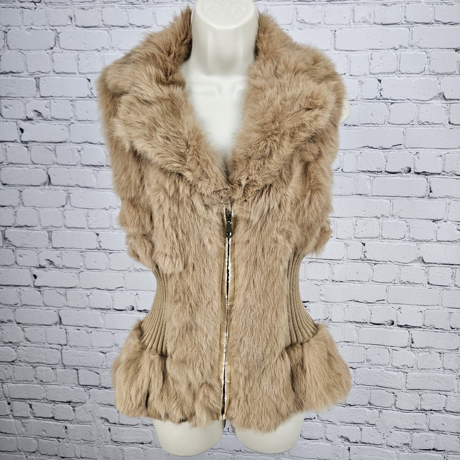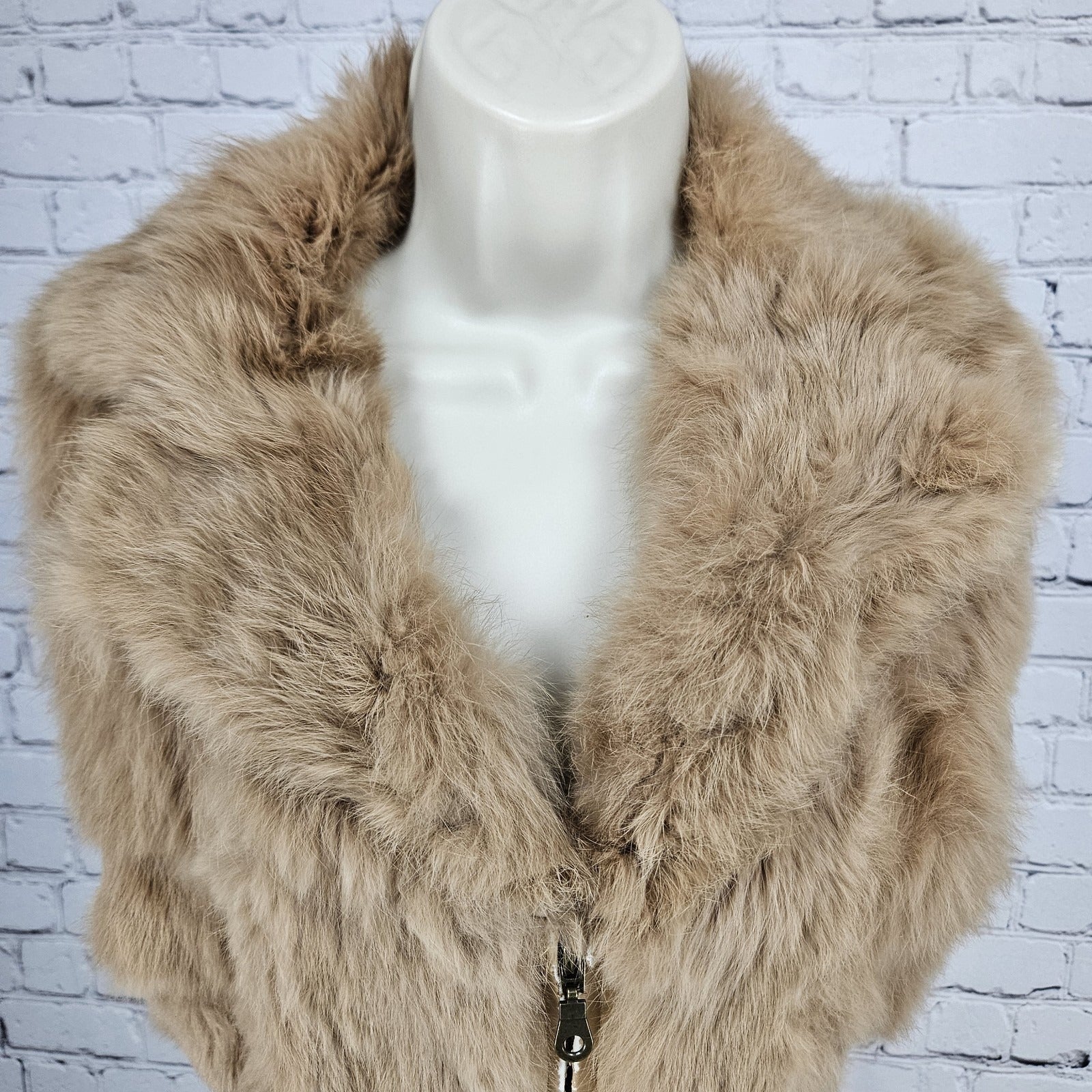 Metric Knits Brown Genuine Rabbit Fur Collared Full Zip Lined Vest Small S