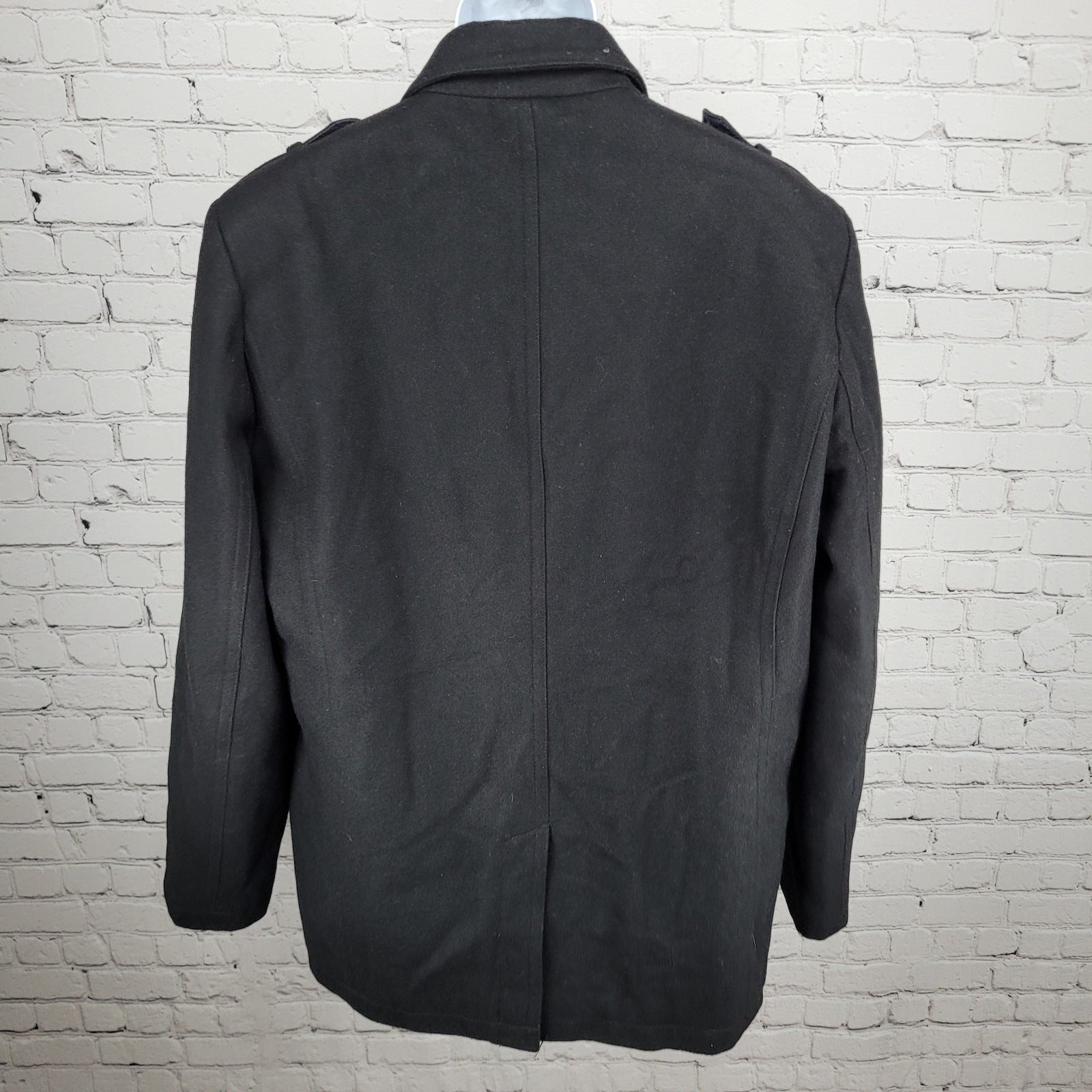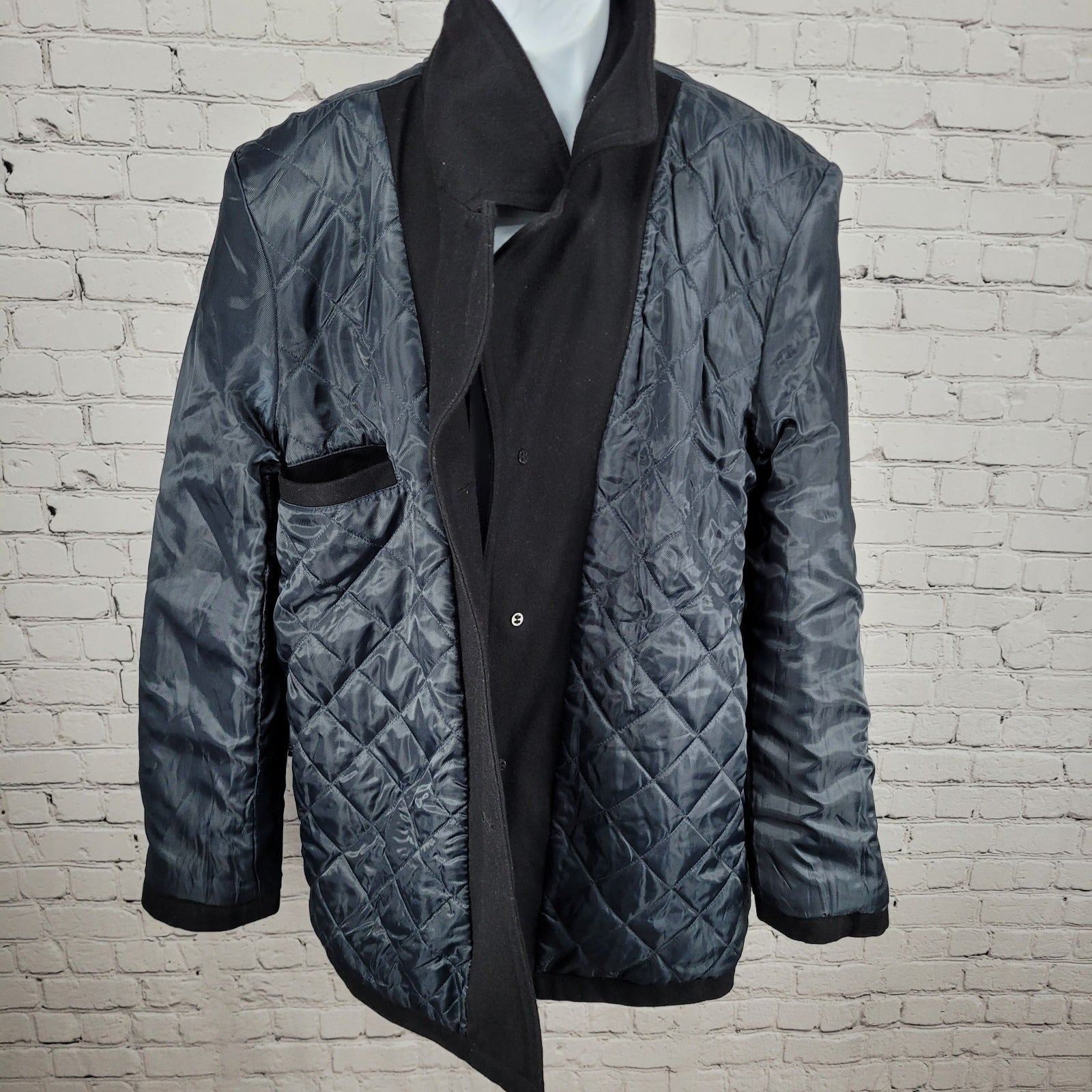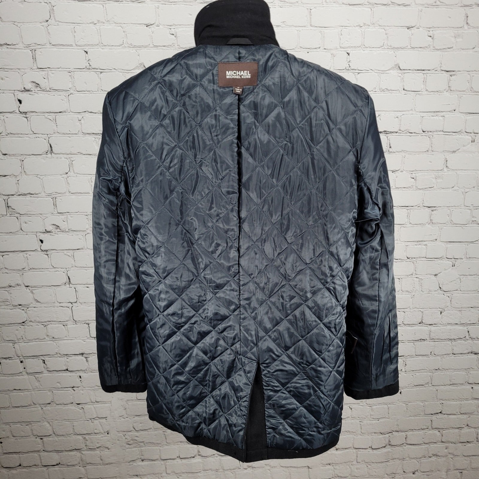 Michael Kors Black Wool Blend Insulated Quilted Lining Buttoned Coat Size LT