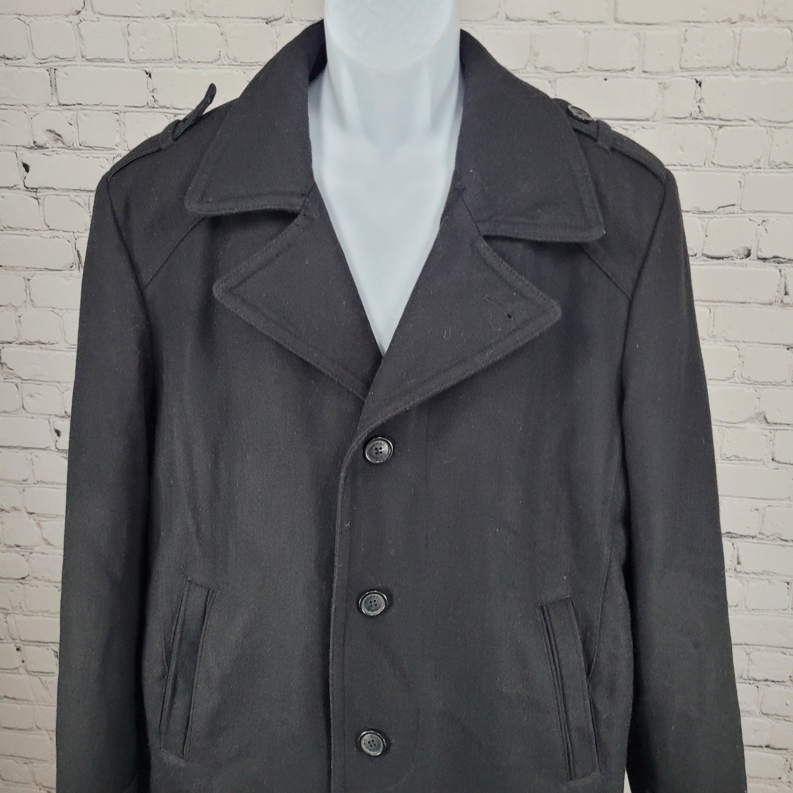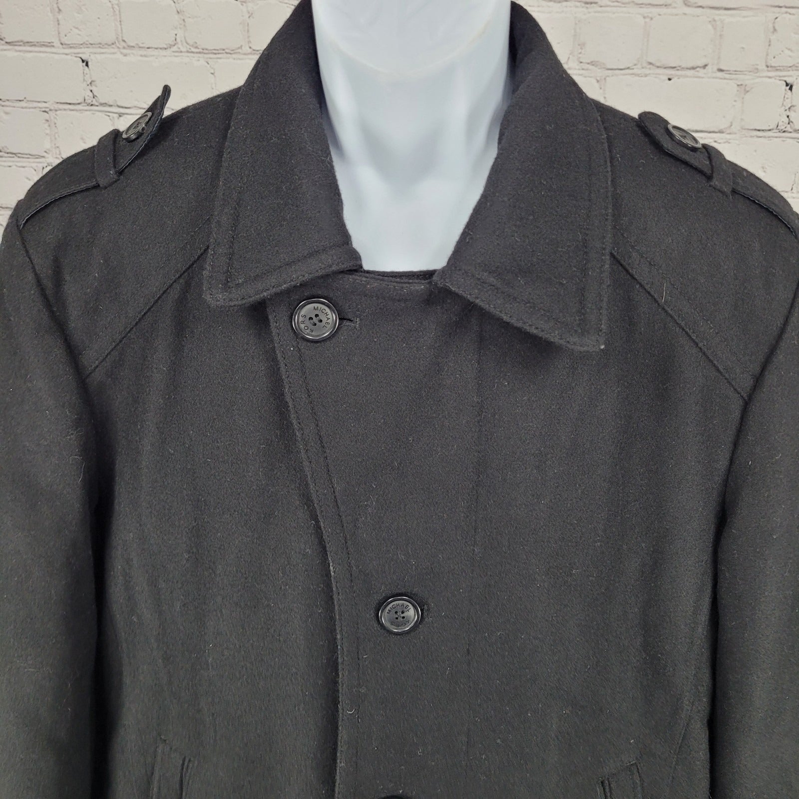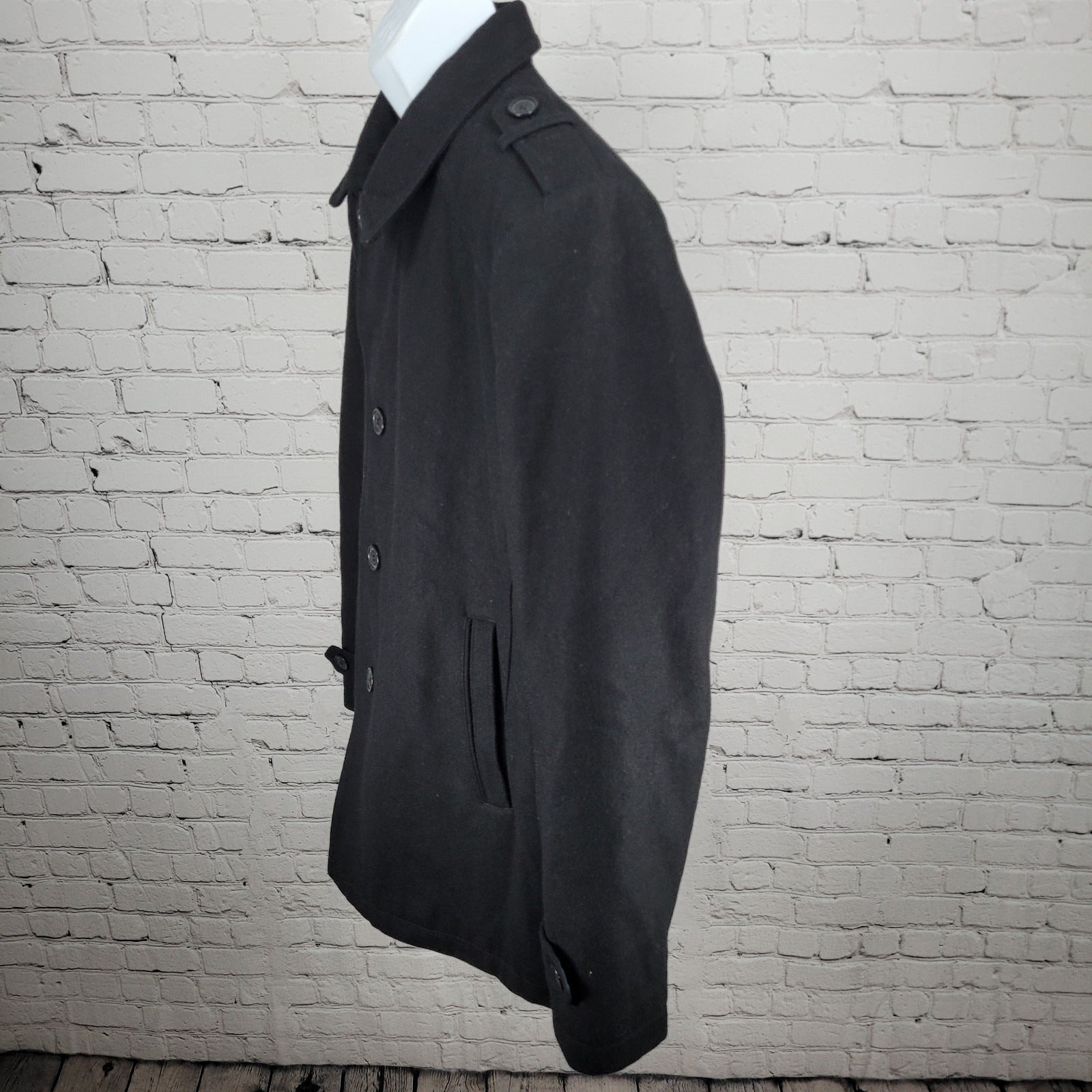Michael Kors Black Wool Blend Insulated Quilted Lining Buttoned Coat Size LT