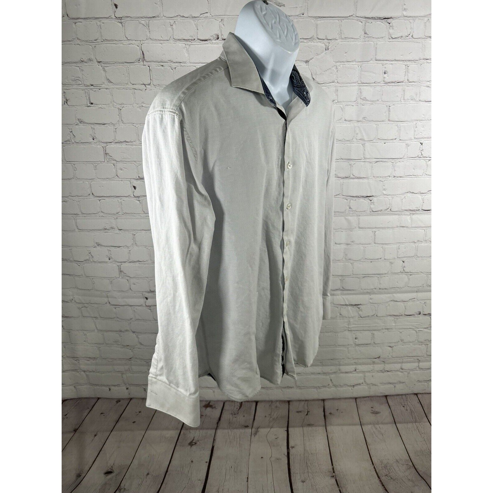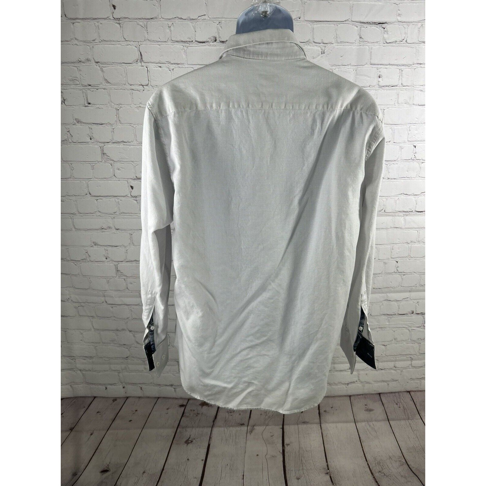 Michelsons London White Textured Cutaway Collar Long Sleeve Button Down Shirt L