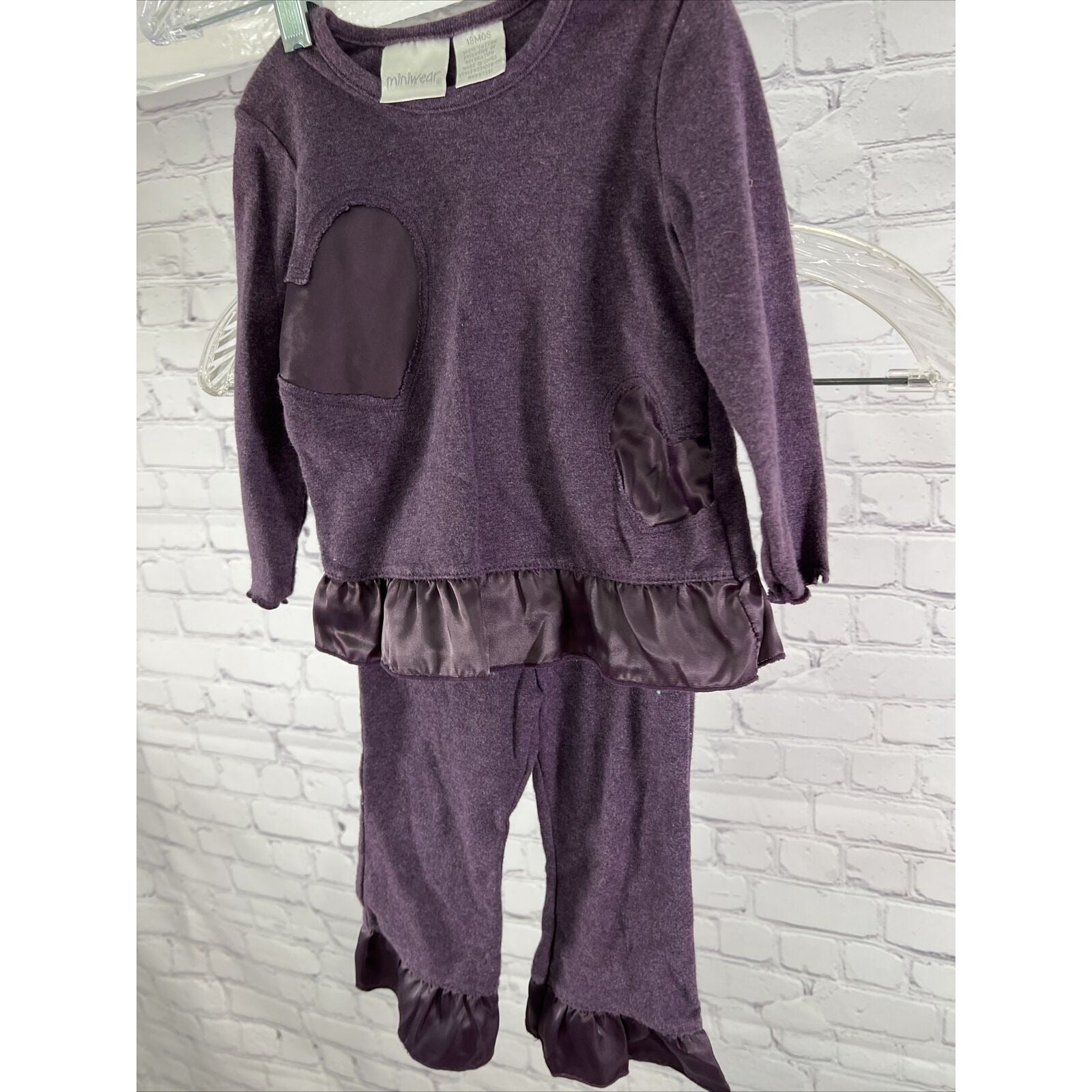 Miniwear Girls Purple 18M Two Piece Ruffle Hem Pants Set Baby Outfit Hearts