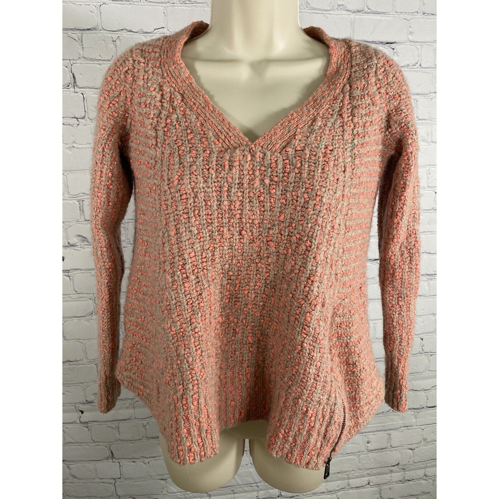 Moth by Anthropologie V Neck Pink Gray Cotton Wool Alpaca Chunky Knit Sweater S.