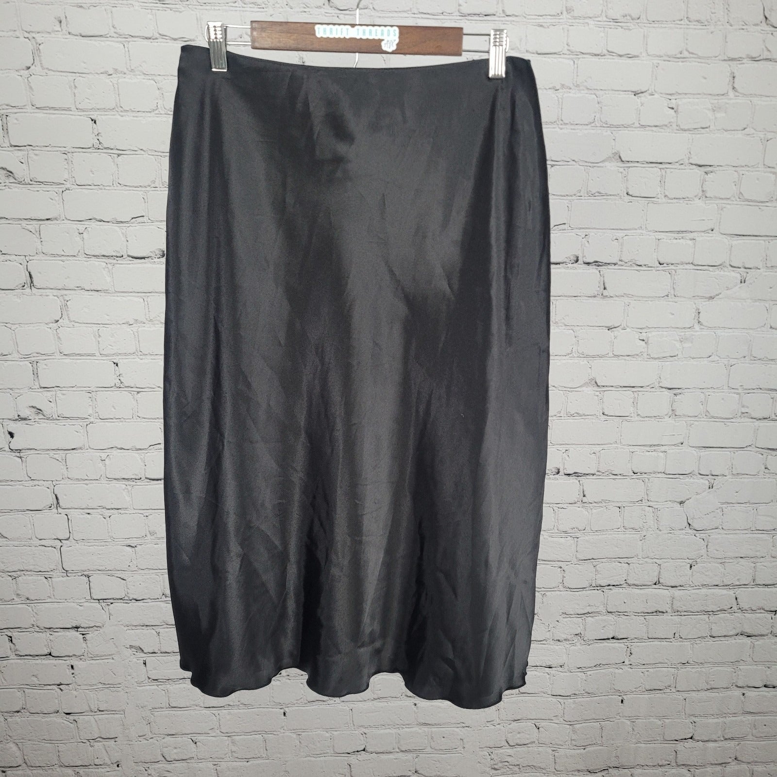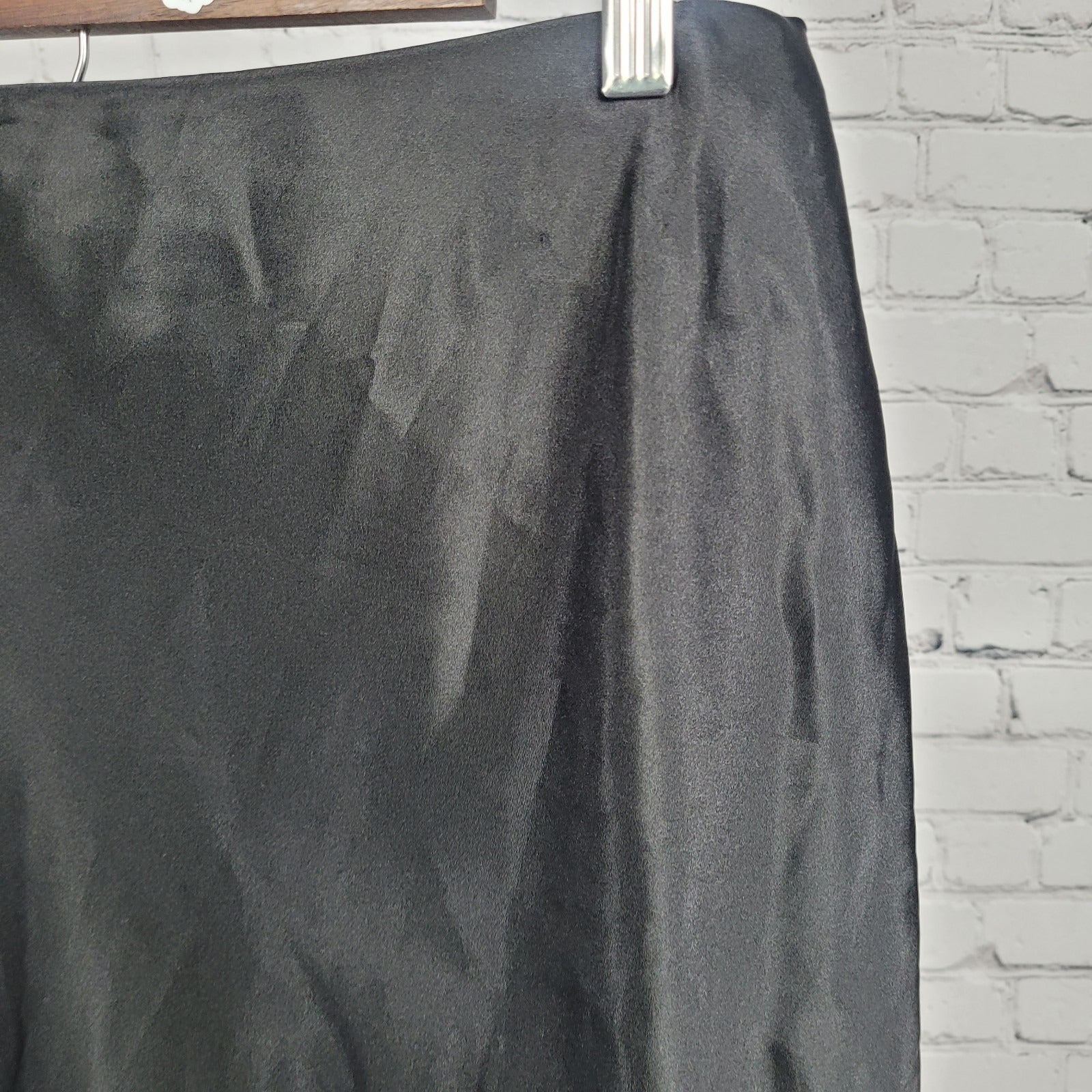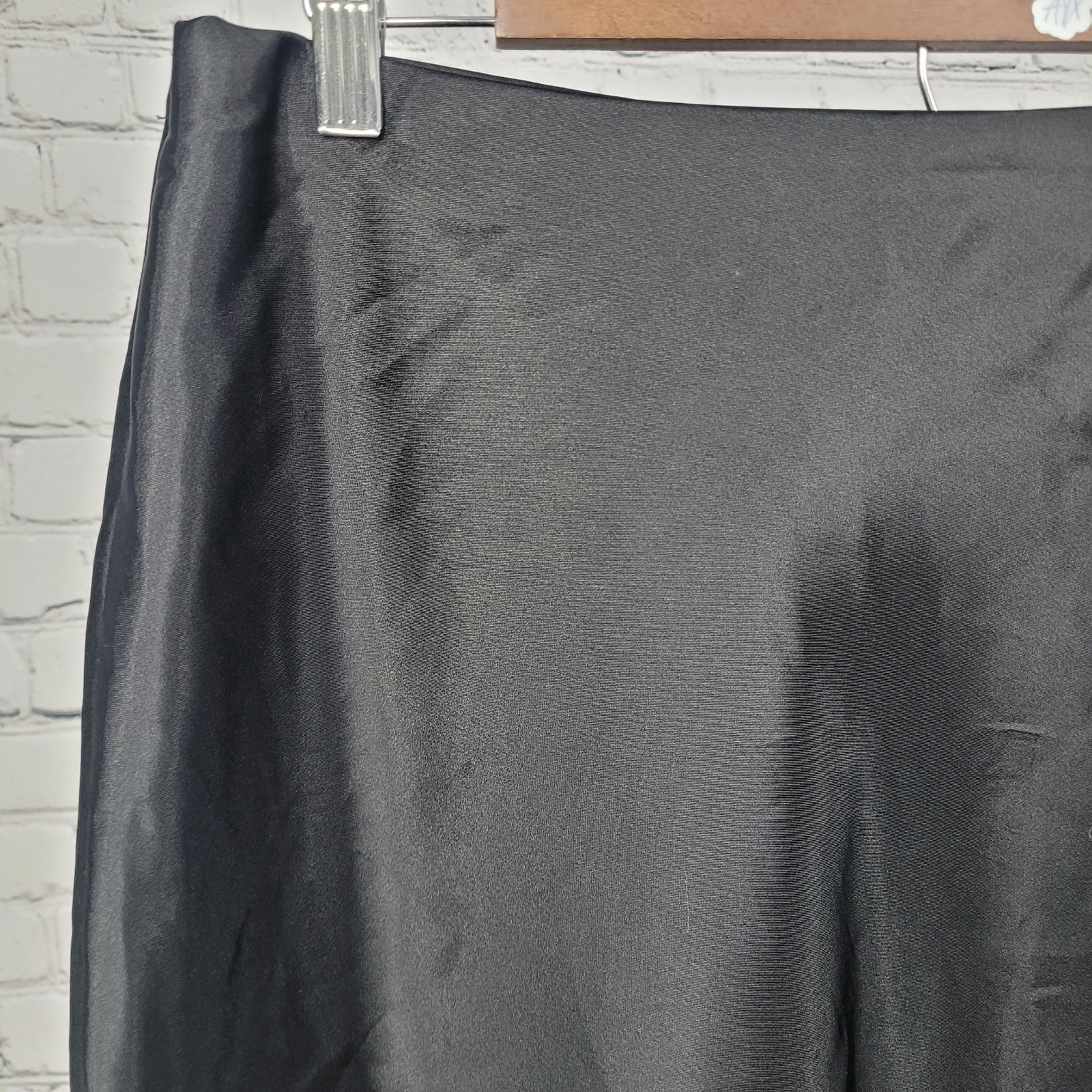 Nicole Miller Black Satin Lightweight Elastic Waist Unlined Skirt USA Large L