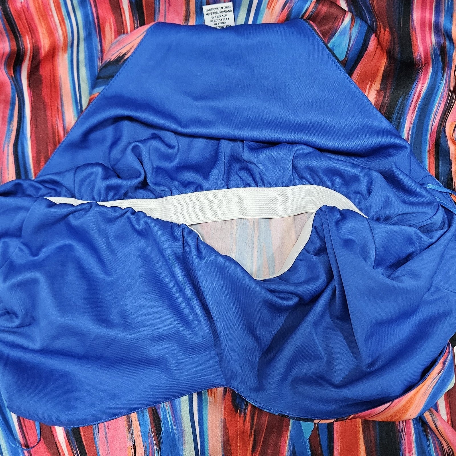 The Nicole Miller Multicolor Striped Strappy Racerback Stretch Maxi Dress in size Large is a stylish and comfortable option for women looking for a long dress with a striped pattern. The racerback design adds a trendy touch, while the stretch fabric ensures a flattering fit. Perfect for a variety of occasions, this maxi dress combines fashion and comfort effortlessly.