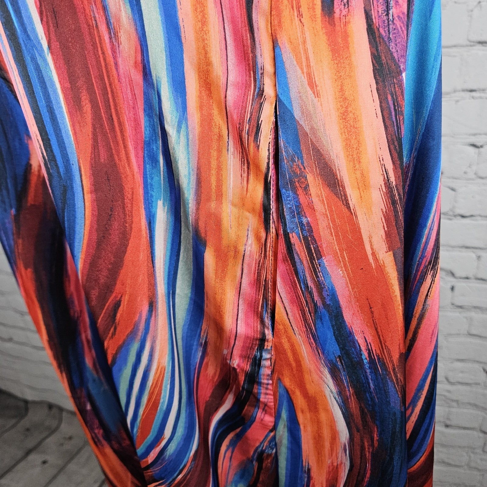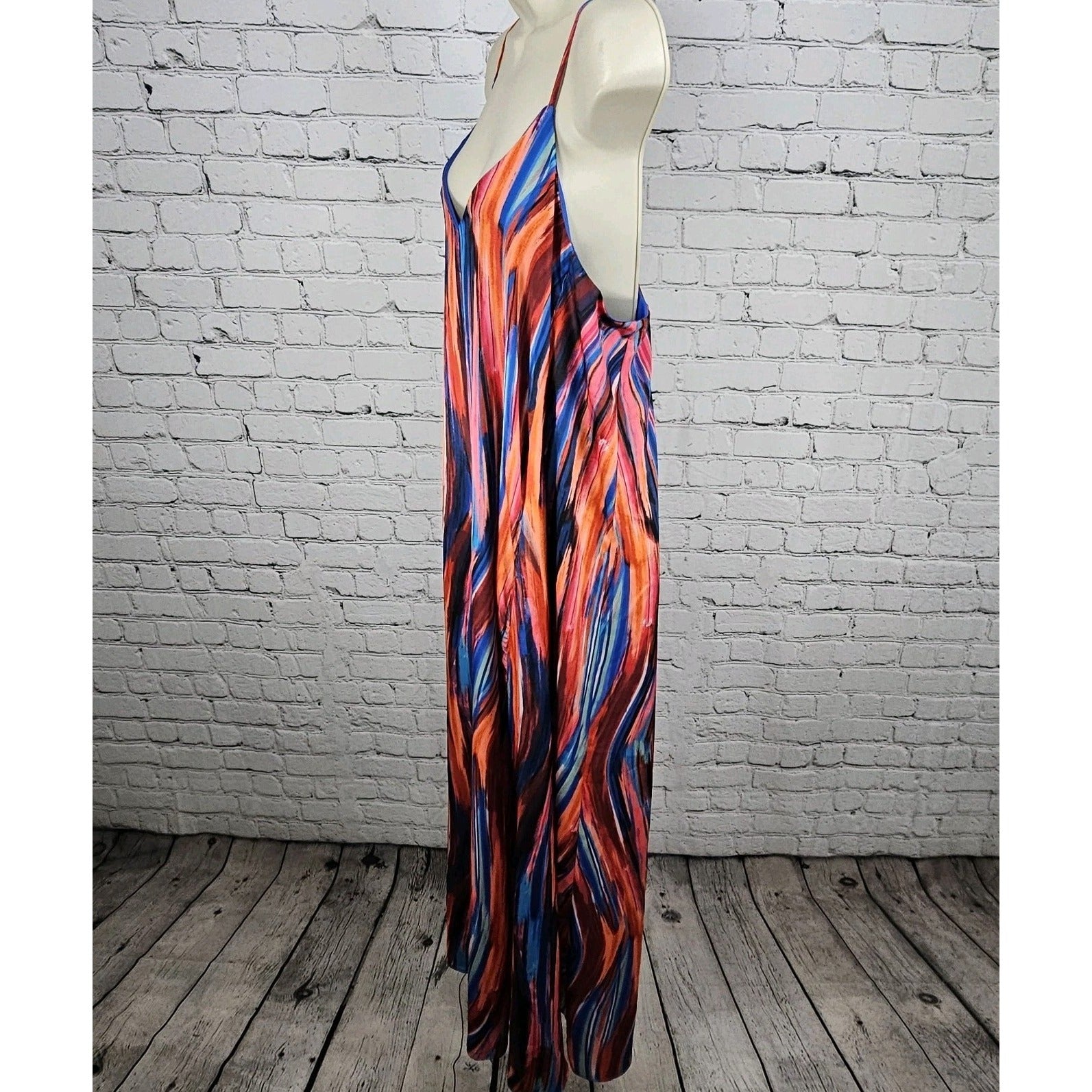 Nicole Miller Multicolor Striped Strappy Racerback Stretch Maxi Dress Large L