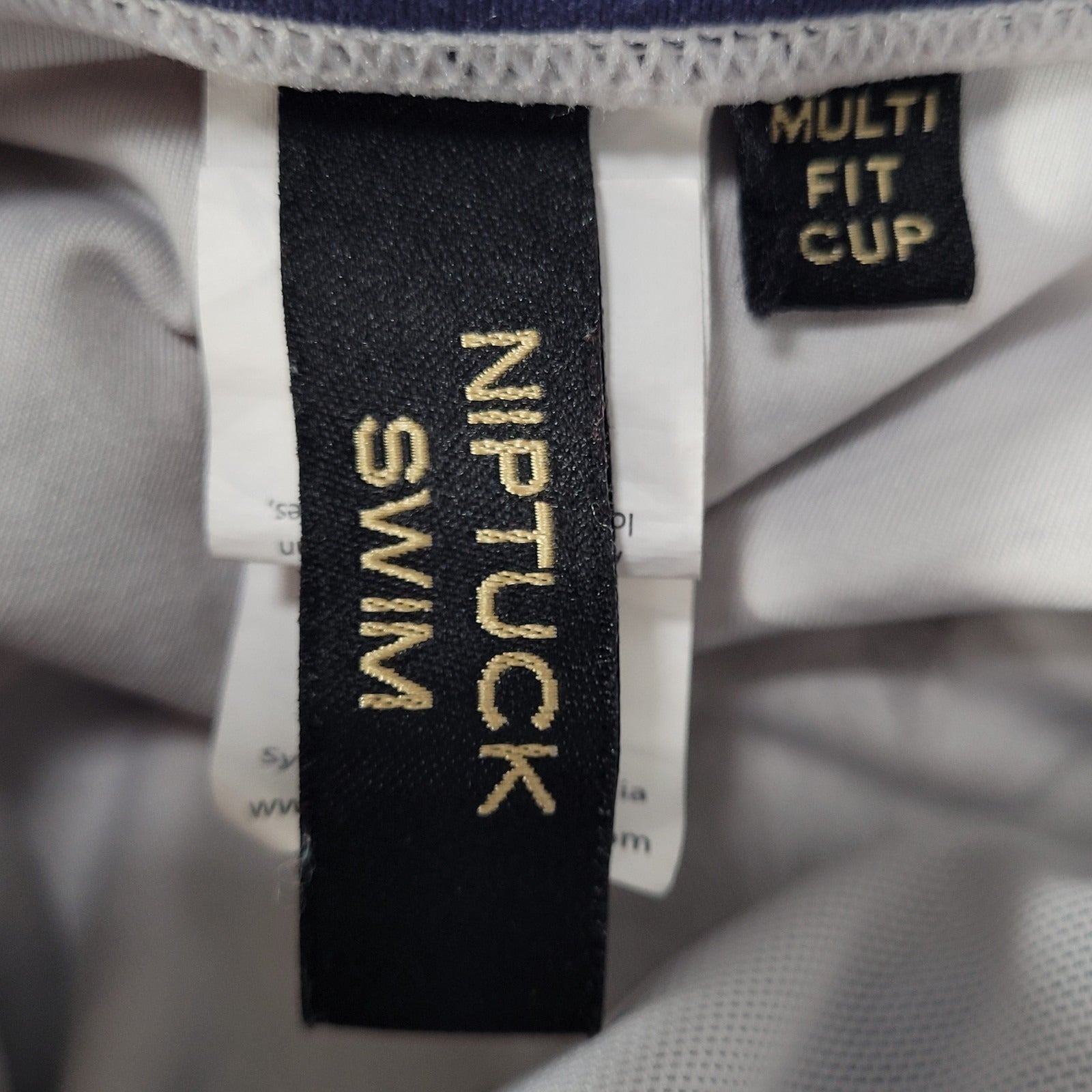 The Nip Tuck Blue & White Striped Multi Fit Cup Padded One Piece Swimsuit in size 10 is a stylish and flattering swimwear option for women. The classic blue striped pattern adds a touch of color to the elegant white design. With padded features, this swimsuit offers comfort and support for a variety of body types, making it a versatile choice for those looking for a fashionable and functional swimwear option.