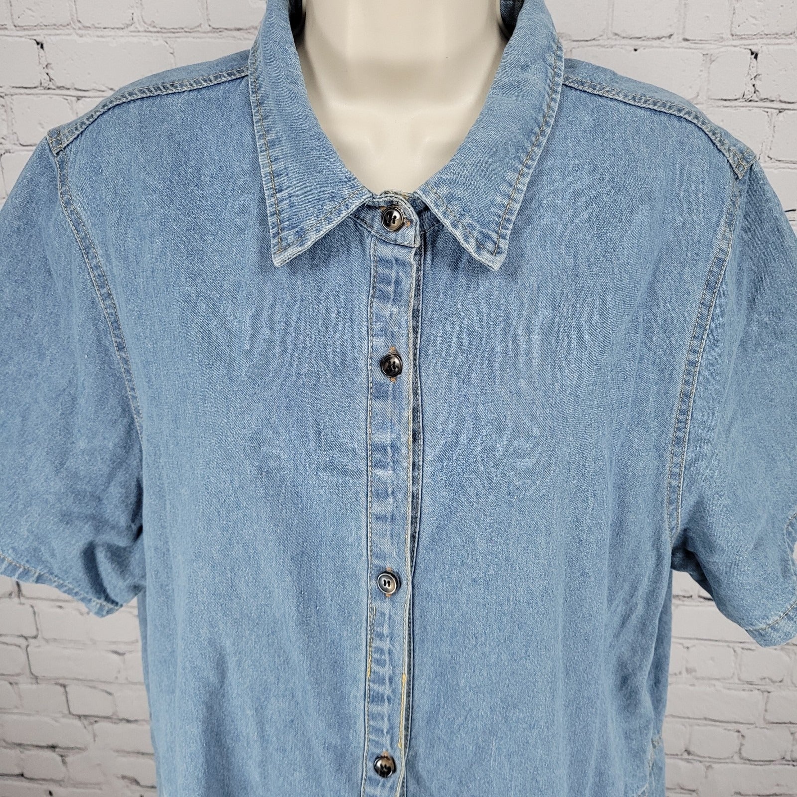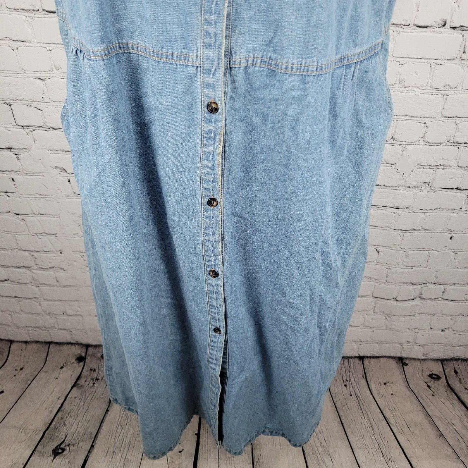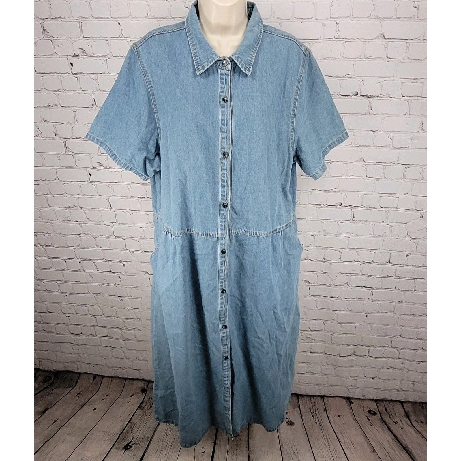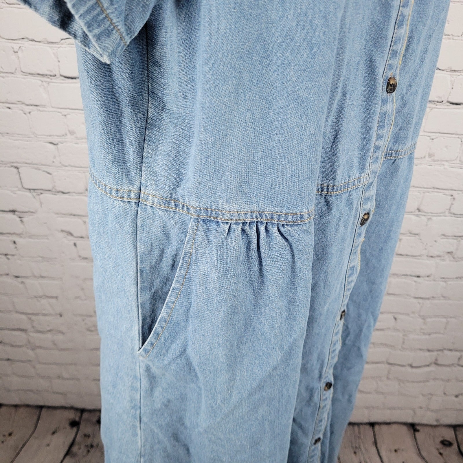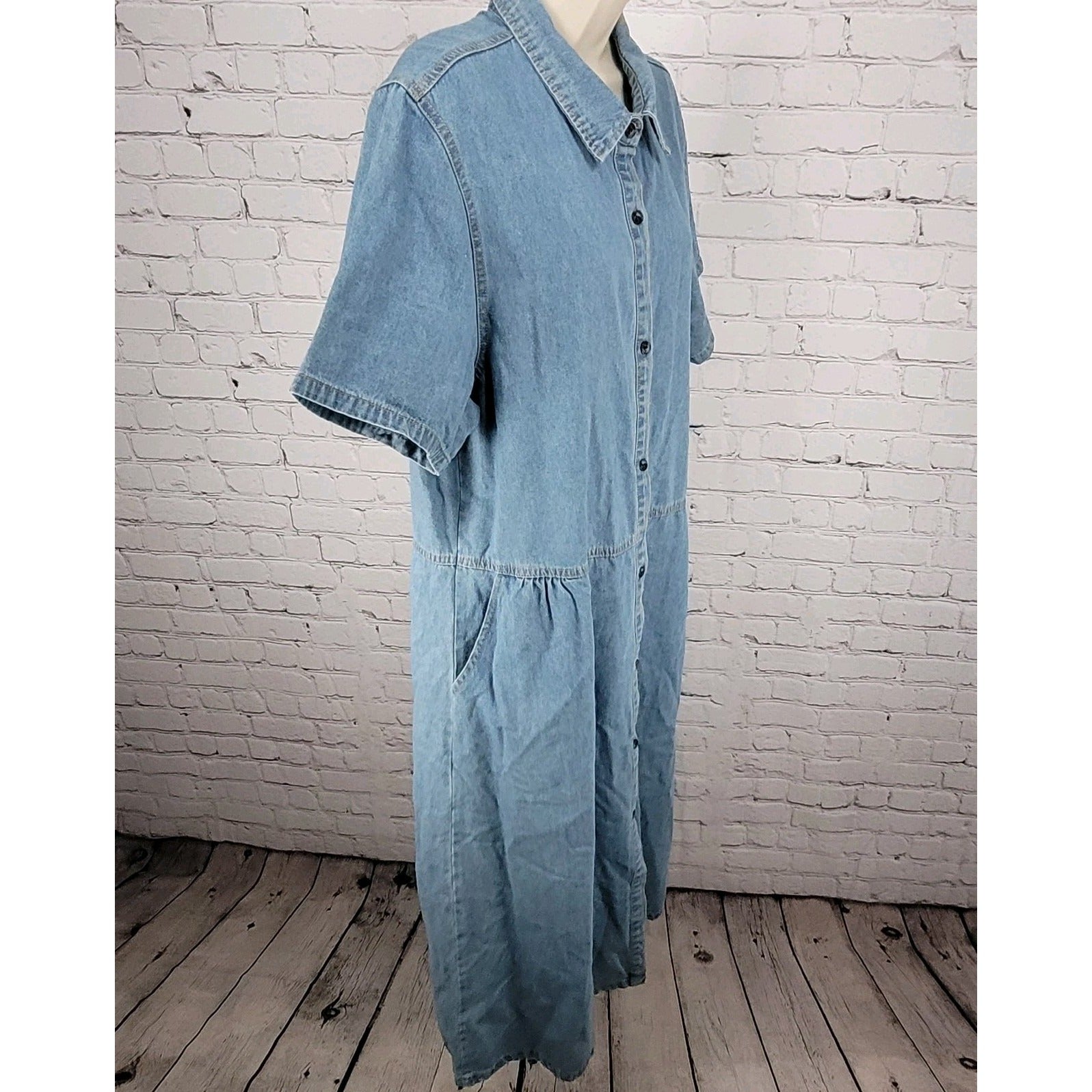 Noracora Blue Denim Buttoned Ruched Pockets Short Sleeve Unlined Dress Size XXL