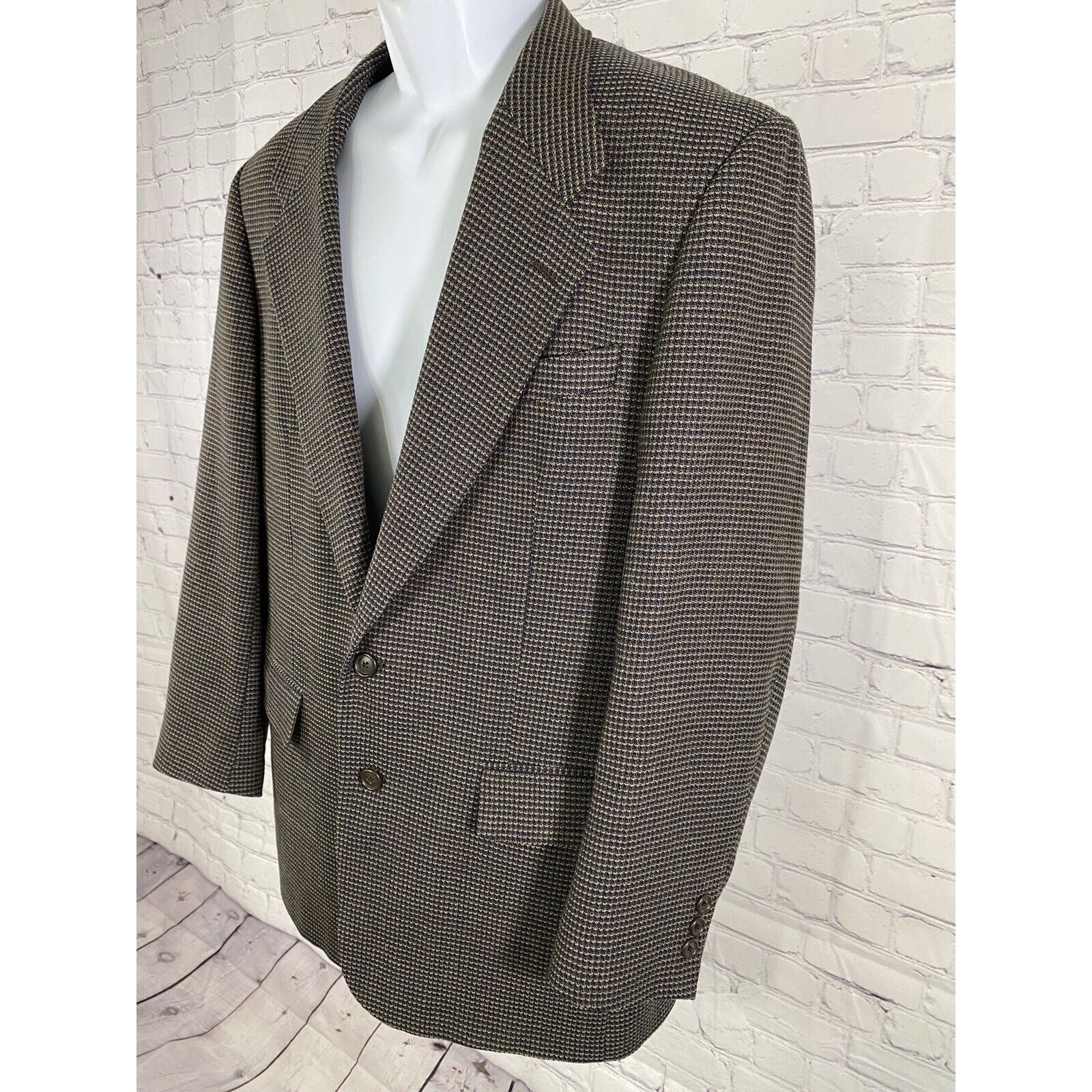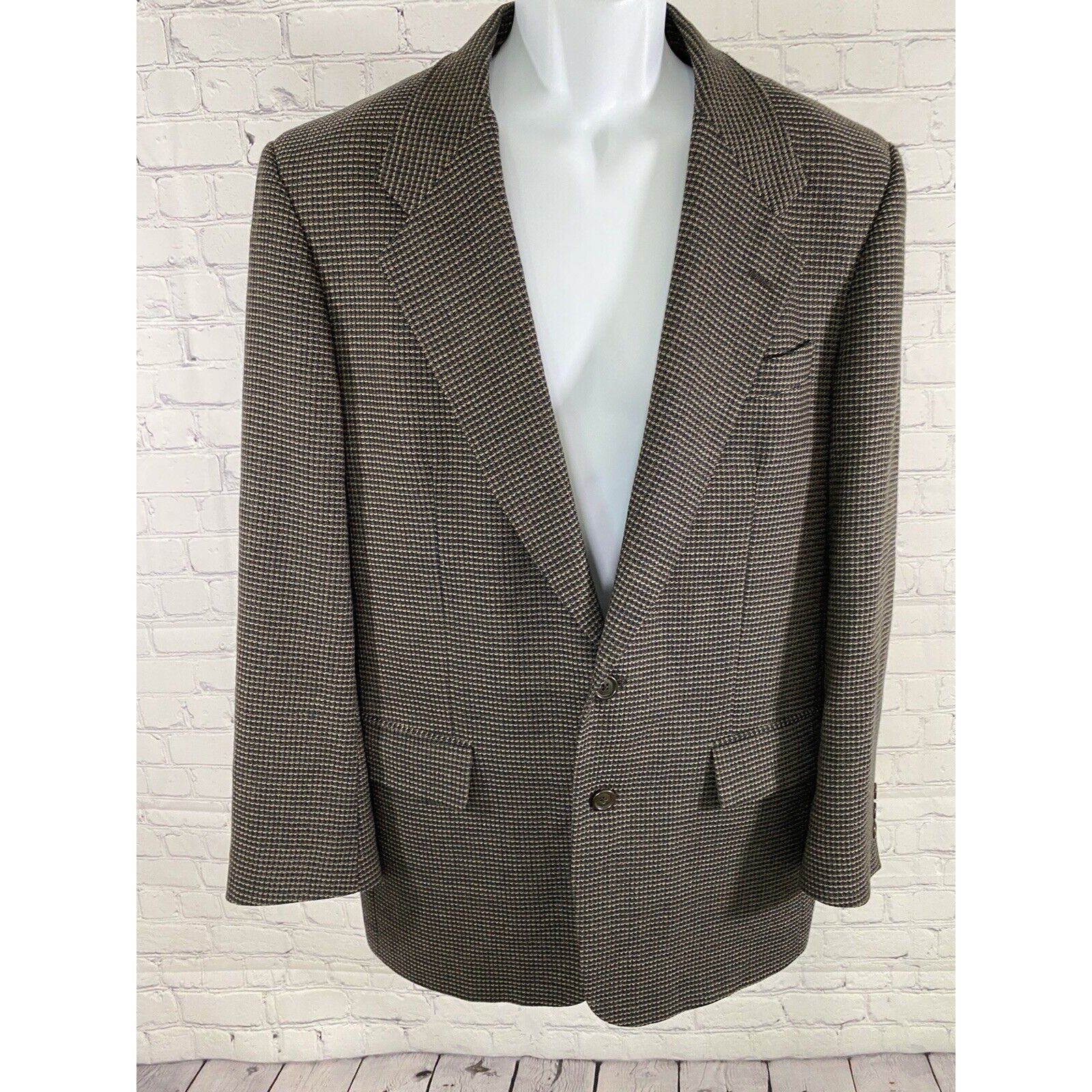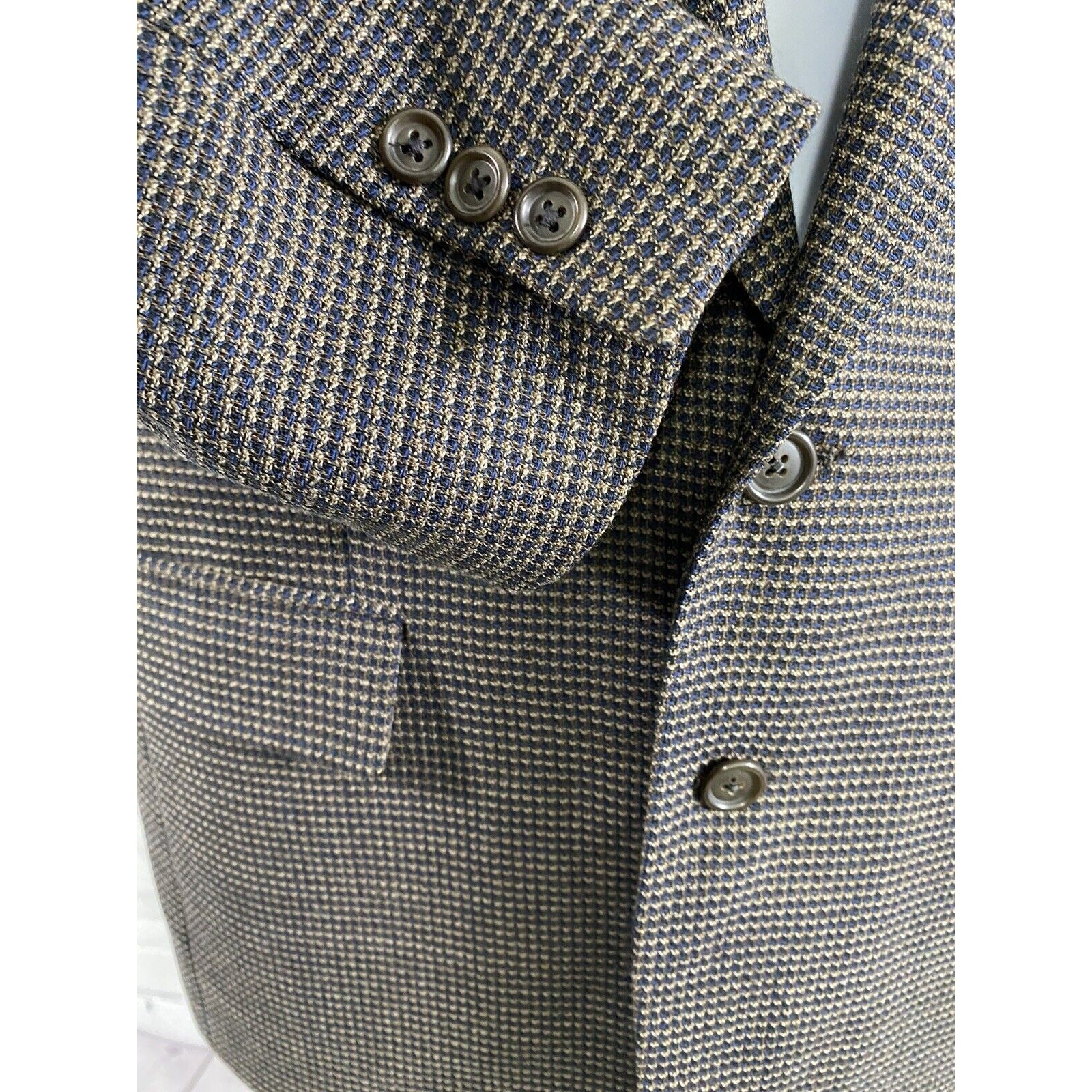 Nordstrom Tallia Uomo 100% Wool Blue Beige 2 Button Blazer Jacket 40 *read.