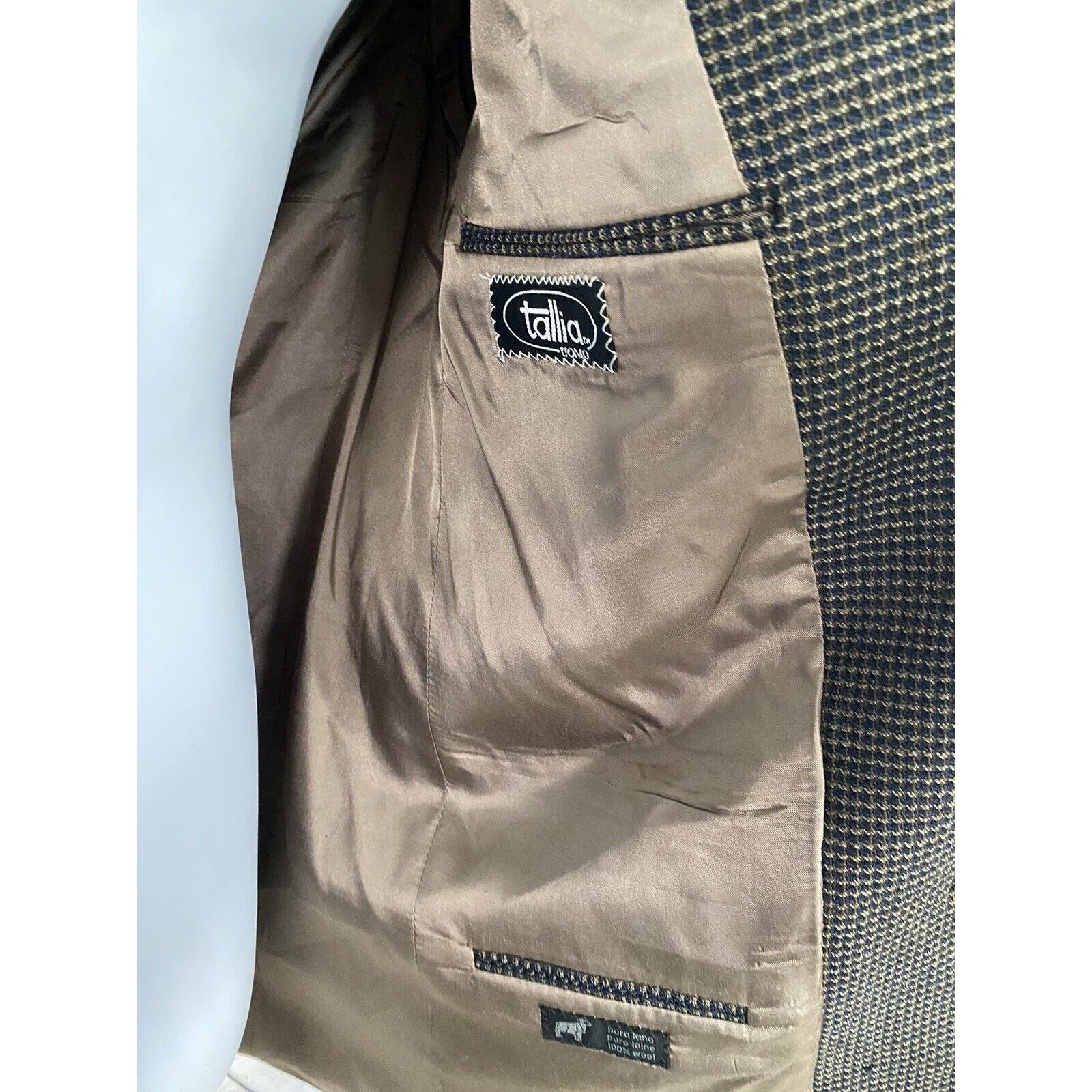 Nordstrom Tallia Uomo 100% Wool Blue Beige 2 Button Blazer Jacket 40 *read